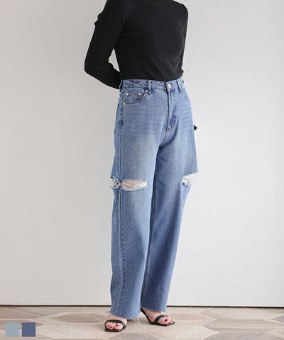 PRの方が甘めのトップスと合わせてるのが可愛くて、ずっと気になっていたので、ハッピーセットで選べて嬉しかったです。 162㎝で丈感などちょうど良かったです。 ダメージがある事で出るシルエットが可愛いです。春になったら着たいなーと楽しみです。