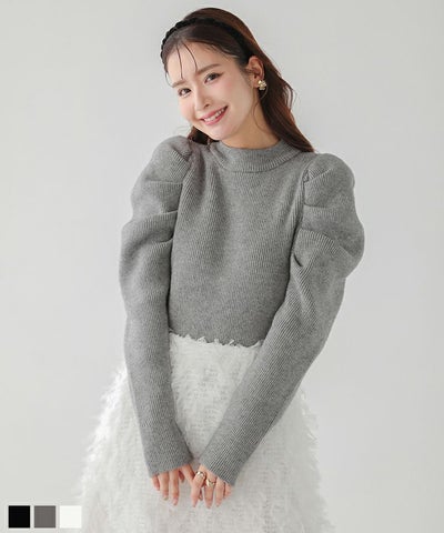 肩のぽわんが可愛いニットです。Aラインスカートとよく合います。