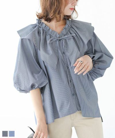 ビッグカラーボリュームスリーブストライプシャツ【メール便】のレビュー