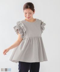 グレージュのような優しい色合いとお袖のフリルがとっても可愛い~♡ フィットモアさんのどのパンツとも合うのも嬉しいです!!お洗濯もシワになりにくく気にせずできるので、たくさん着たいと思います。 -