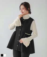 一目惚れしたジレです♡割と肉厚な素材感なので春というよりは秋冬向きかなと思います。パールがしっかり映えてくれるので1枚で華やかになります♡ -
