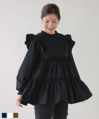 ティアードデザインとお袖で抜け感が可愛いです♡どんなボトムスでも合うのでコーディネートしやすいです! -