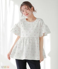 ブルーを購入しました。 繊細なフラワーレース刺繍が際立ってすごく可愛いです! ふわっとしたお袖が真夏でも通気性よく着用できそうです。 -