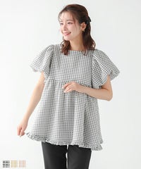 お袖のボリュームが他にないシルエットで最高に可愛いです!チェックもプリントになってるのではなく、生地が織り込まれて柄になっているので高見えしますね! ふんわりシルエットが涼しいので真夏でも気持ち良く着用出来るかなと思います -