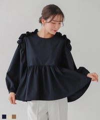 ホワイトを購入しました。 半袖のネイビーを愛用していたのですが、とても胸元フリルが華やかなのに合わせやすいので、長袖も活躍しそうです。 -