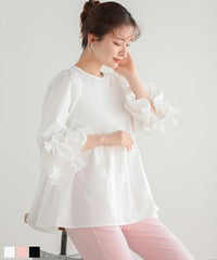 シンプルだけど、レースの袖がポイントとなって使いやすいトップスだと思います。オフィスに問題なく着られそうです。 -