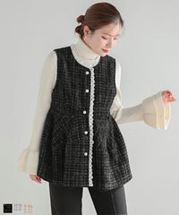 デザインに一目惚れして購入。 思ったよりも厚手で、毛布みたいな糸の重めなツイードでした。かなり暖かくて、コートなどを着る前の季節のアウター。 -