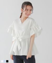 ピンクの色味がとても可愛くサイドのフリルも甘すぎず大人可愛いく着れるのでお気に入りです。ホワイトのワイドパンツとこの春はたくさん着たいです! -