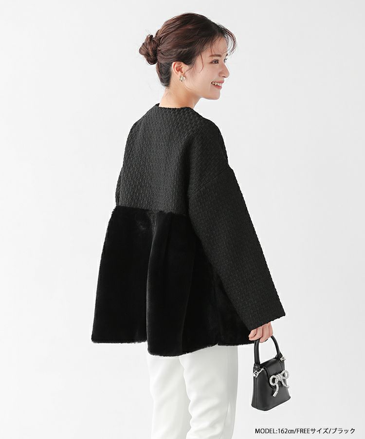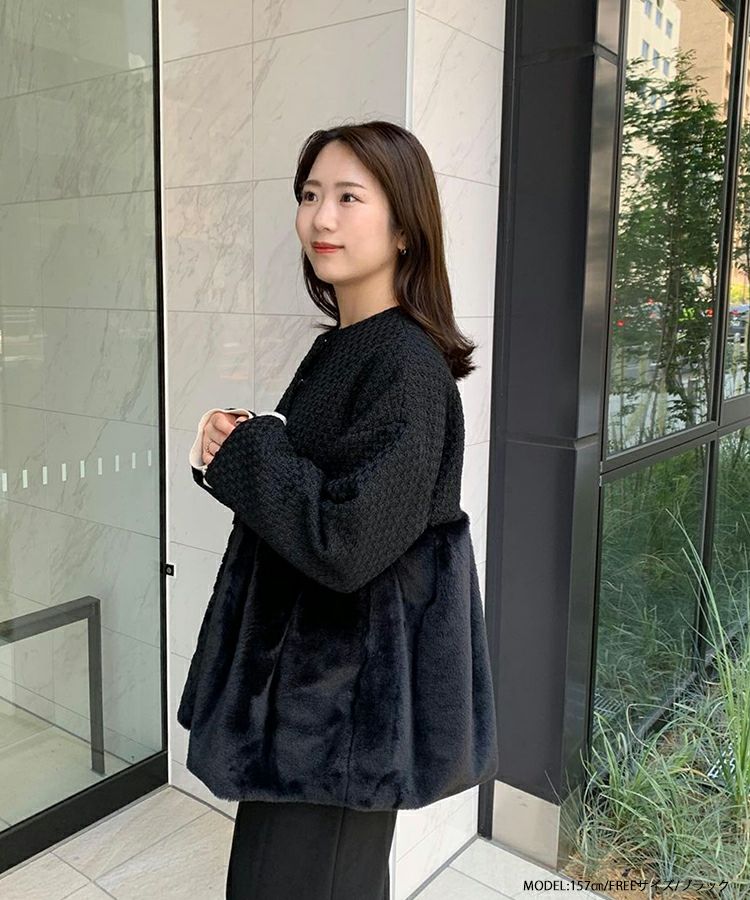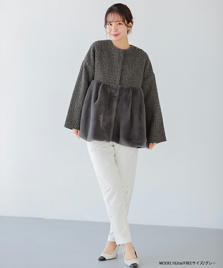 2023aw ペプラム アウター コート エコファー ファー ツイード