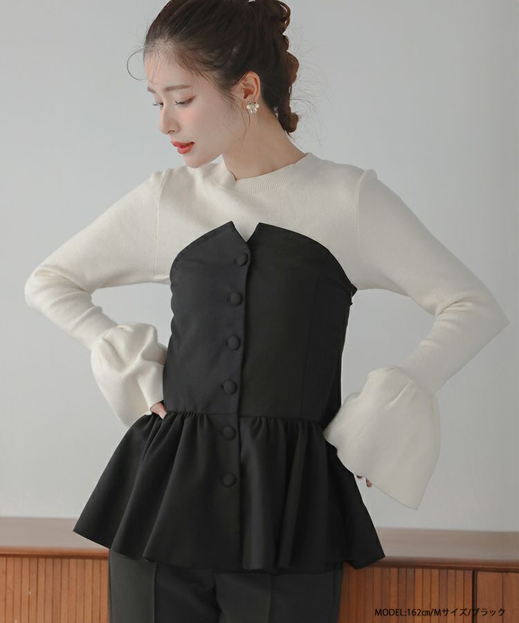 2024ss ss 春新作 リボン ペプラム ブラウス