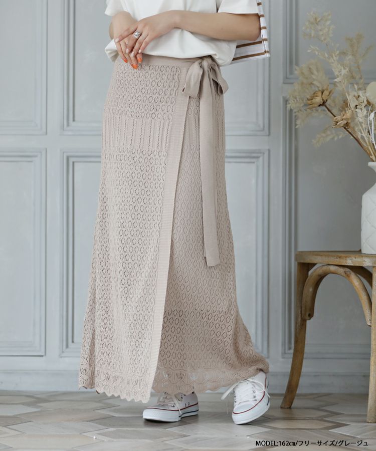 他の画像を見る 2022春 春スカート ニットスカート 透かし編みスカート ラップスカート透かし編みニットマキシラップスカート 春新作 透かし編みニットマキシラップスカート 【メール便不可】 【宅配便】 価格 ¥ 4,590 税込 お気に入りに登録する