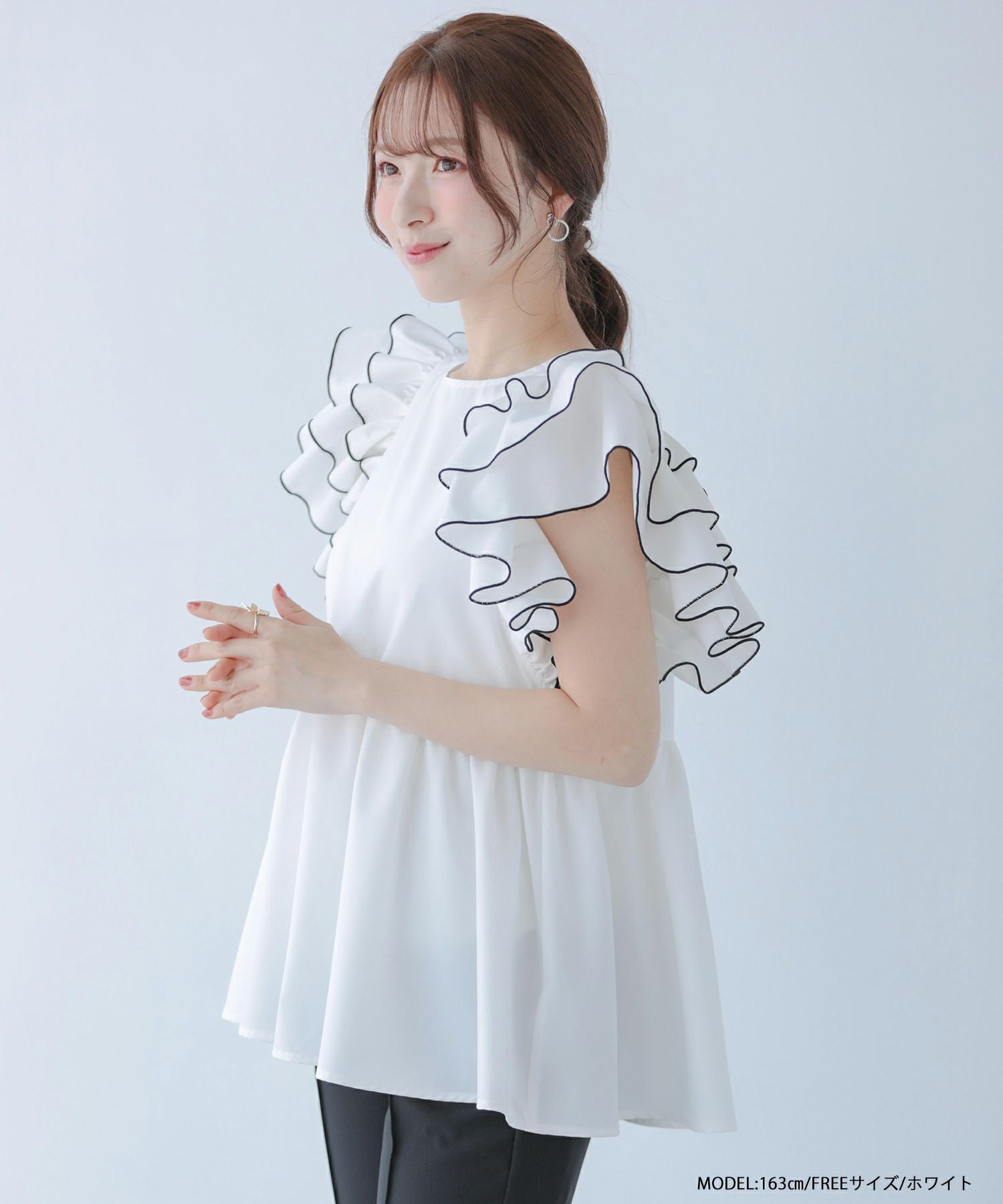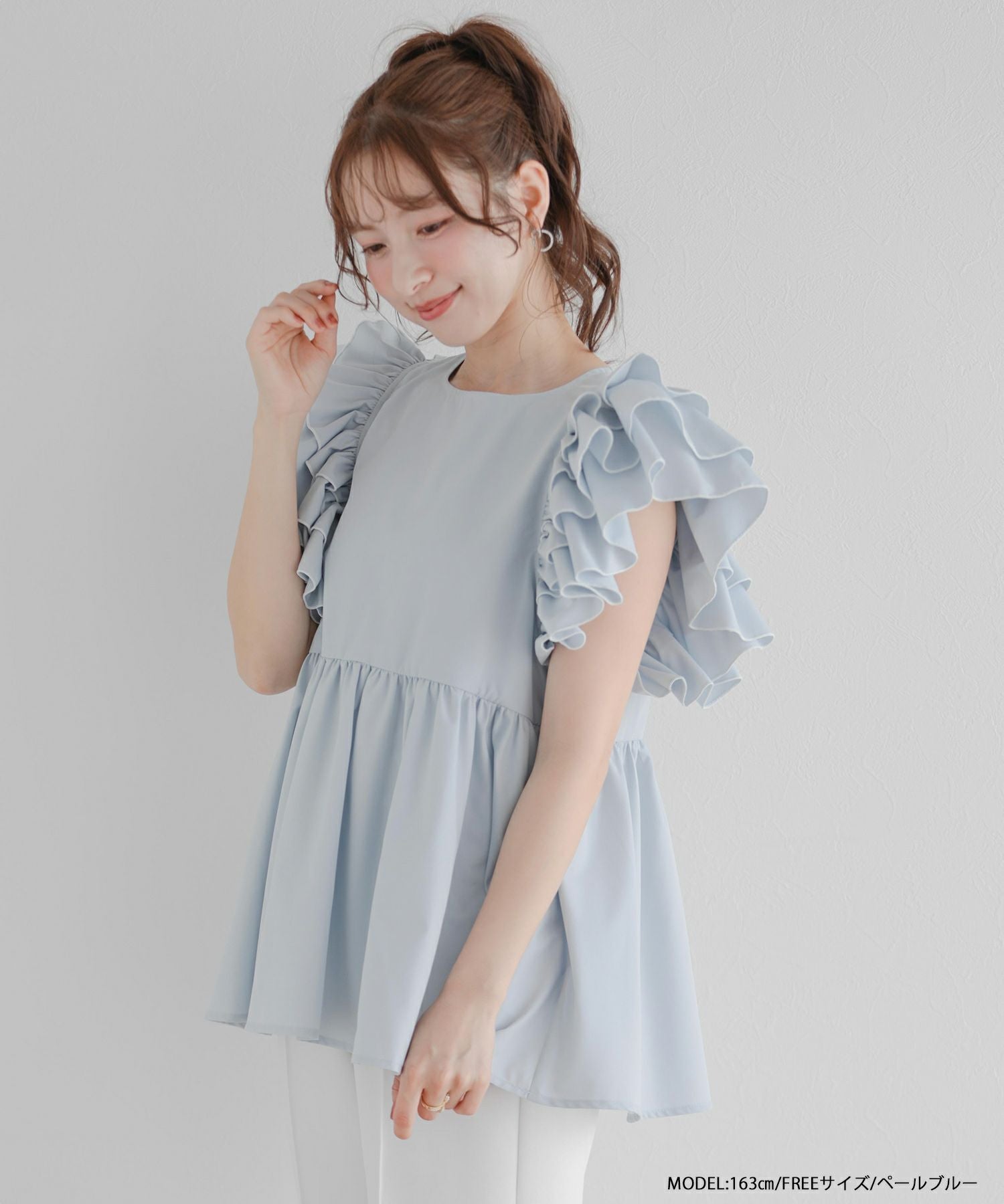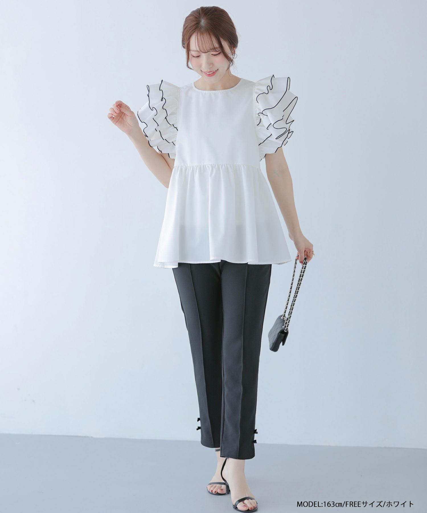 ラッフルスリーブペプラムブラウス【宅配便】