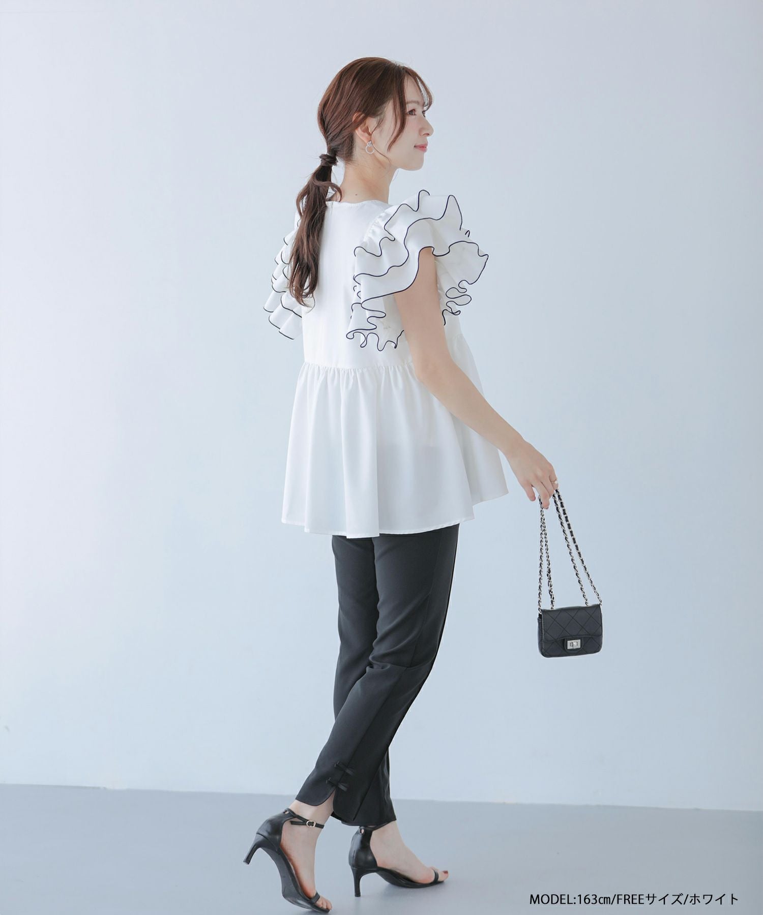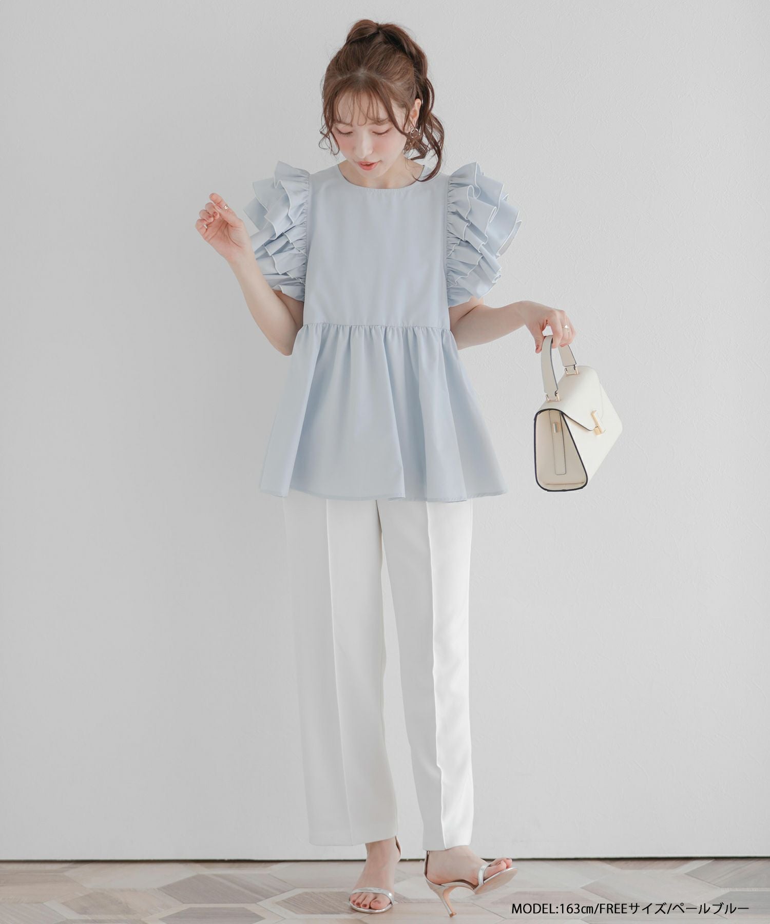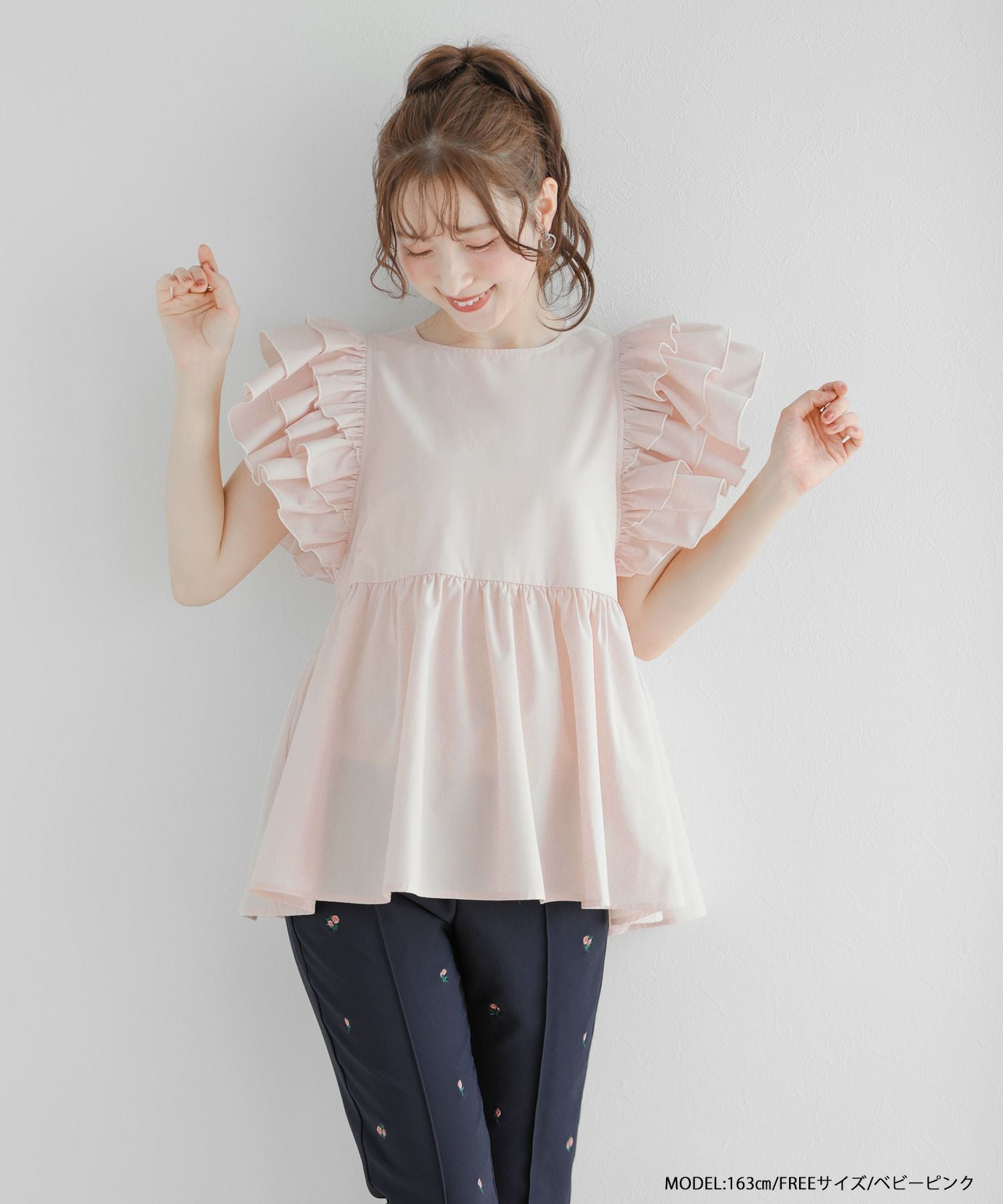 ラッフルスリーブペプラムブラウス【宅配便】