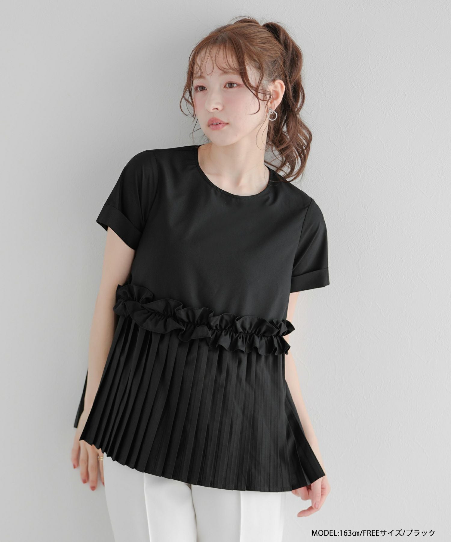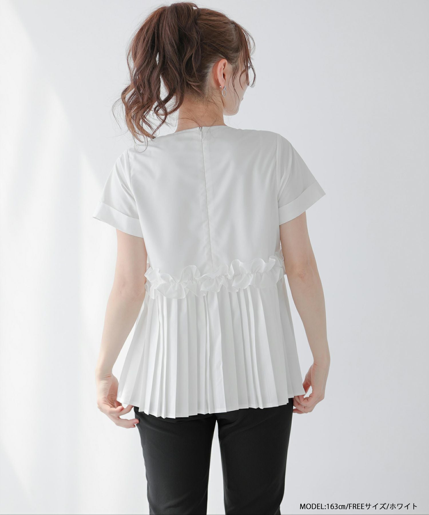 プリーツフリルシャツ袖ブラウス【宅配便】