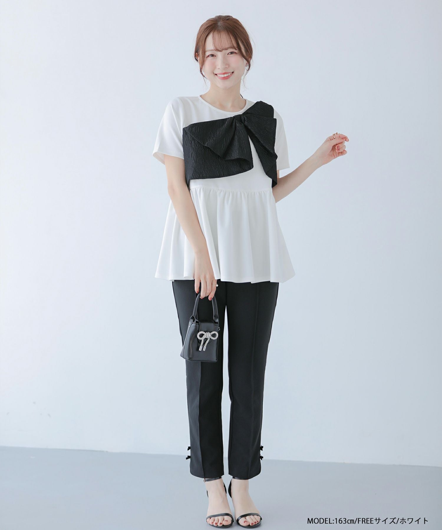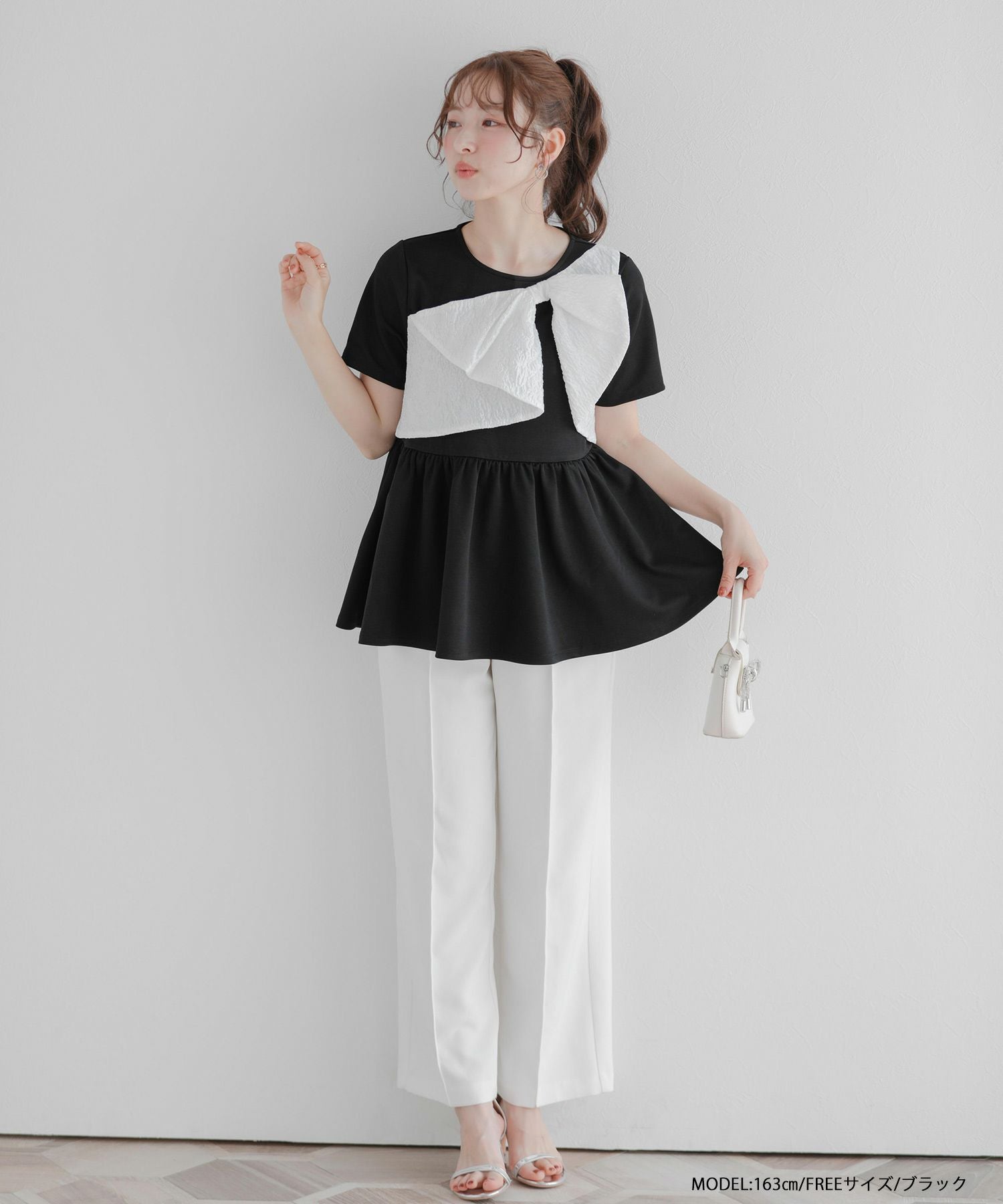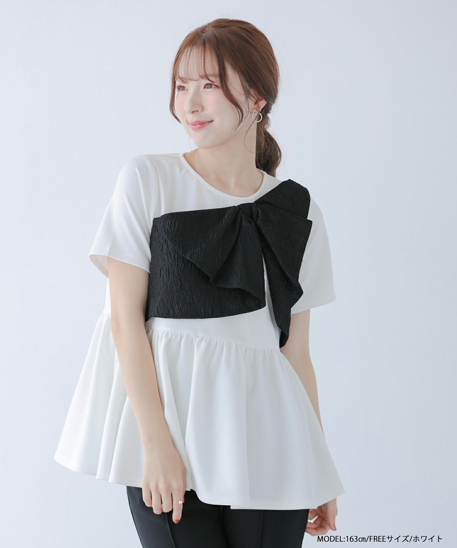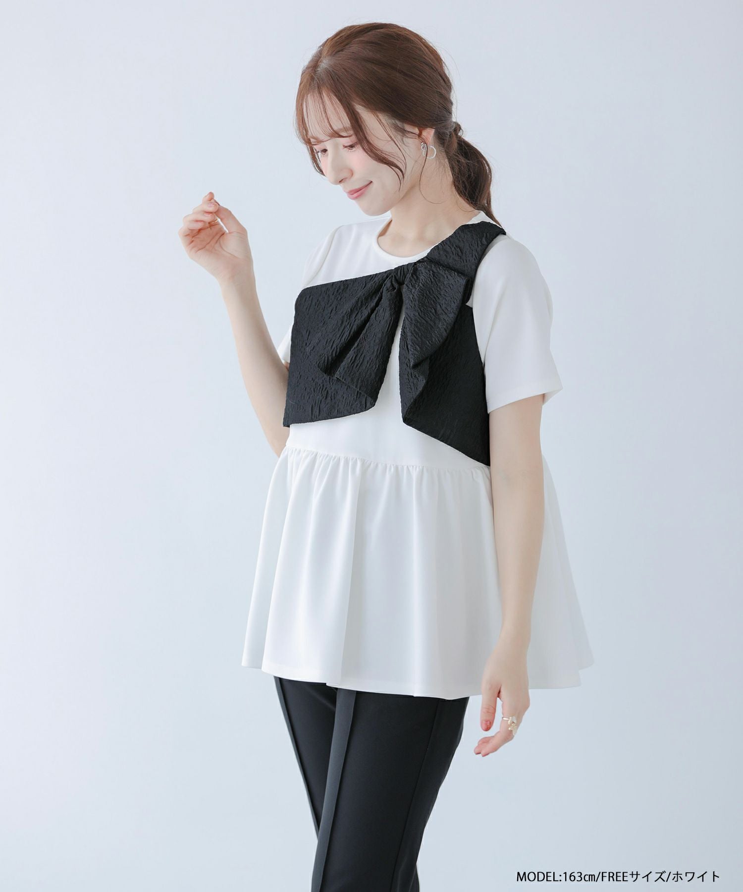 ジャガードリボンペプラムトップス【宅配便】
