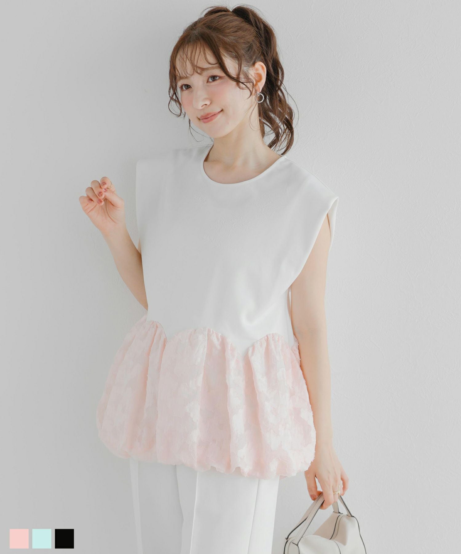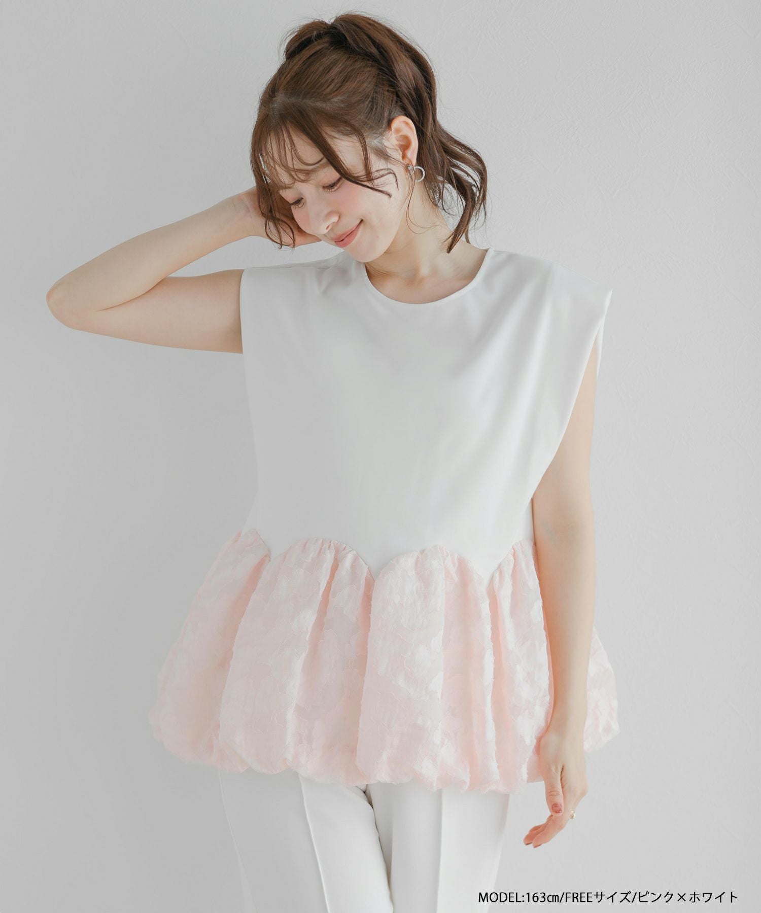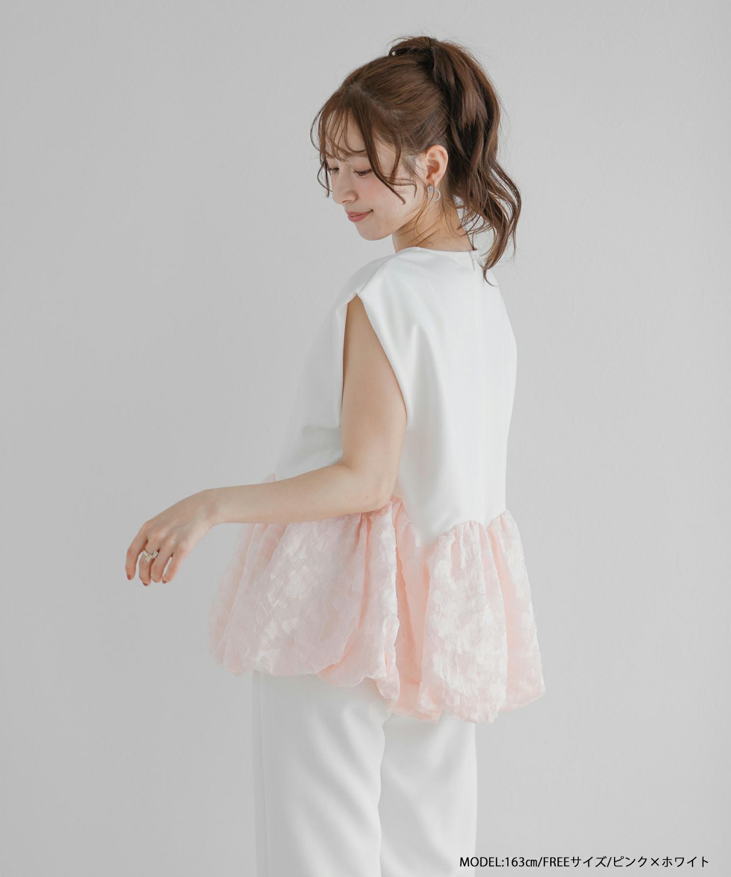 シャーリングバルーンペプラムトップス【宅配便】