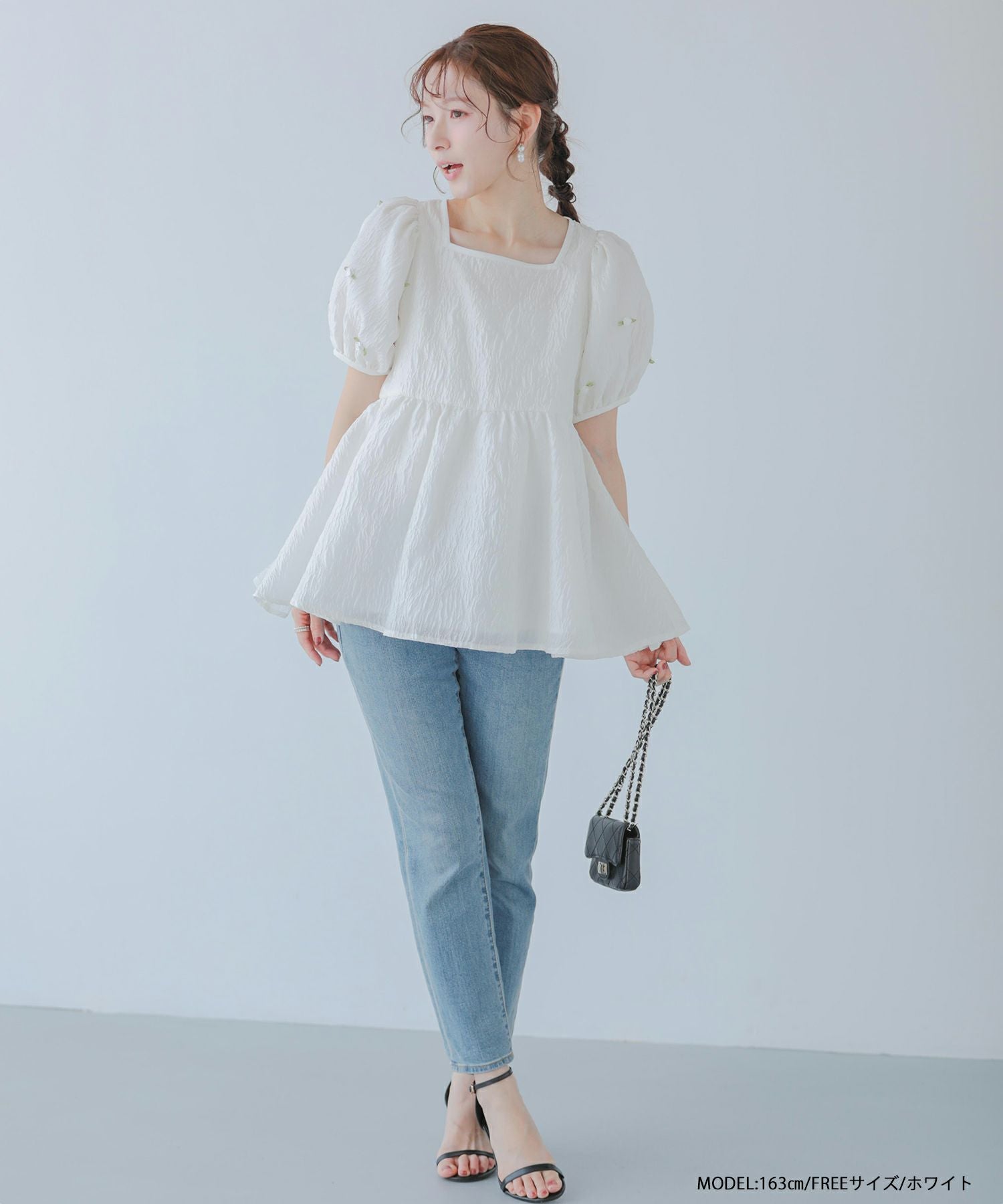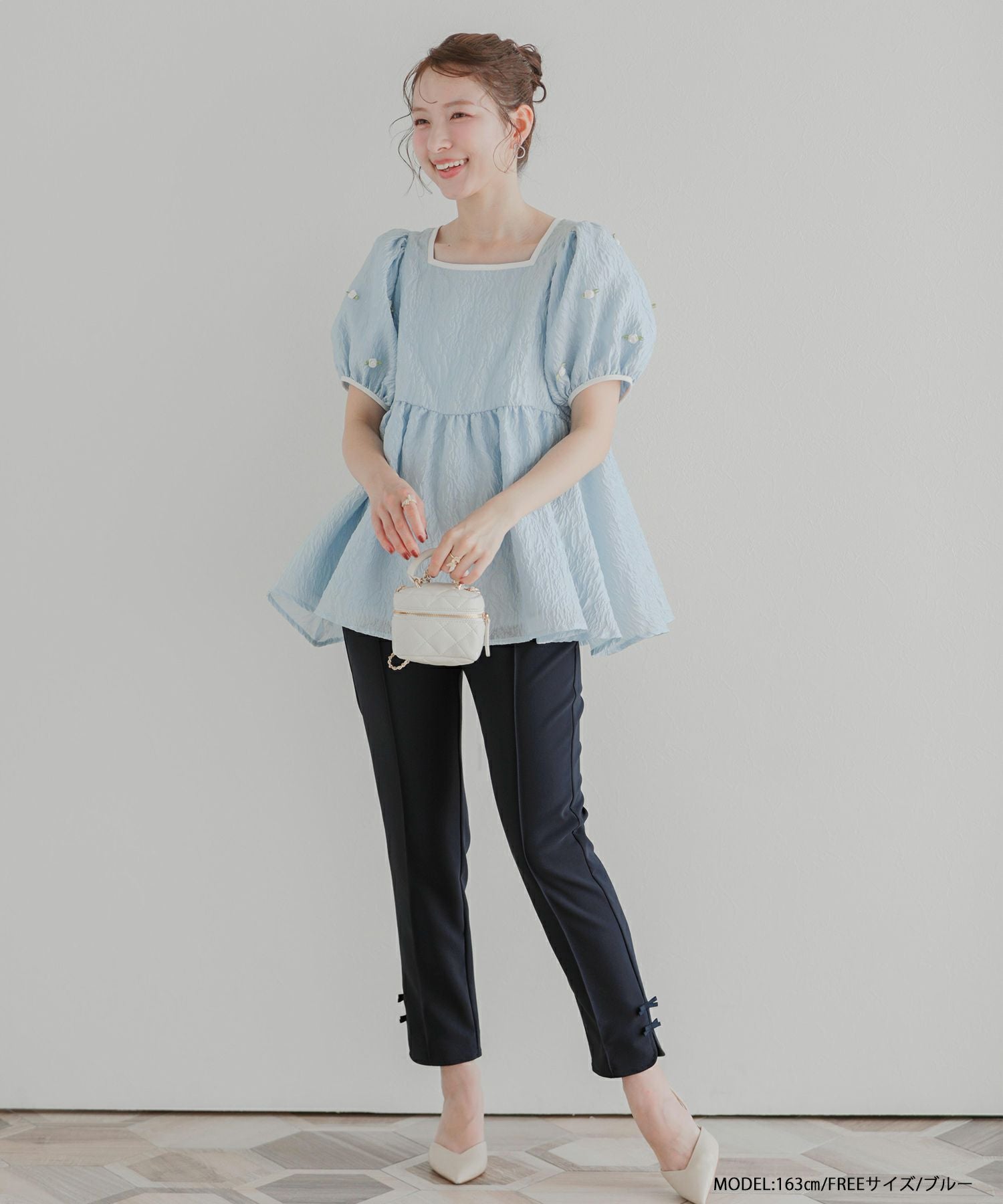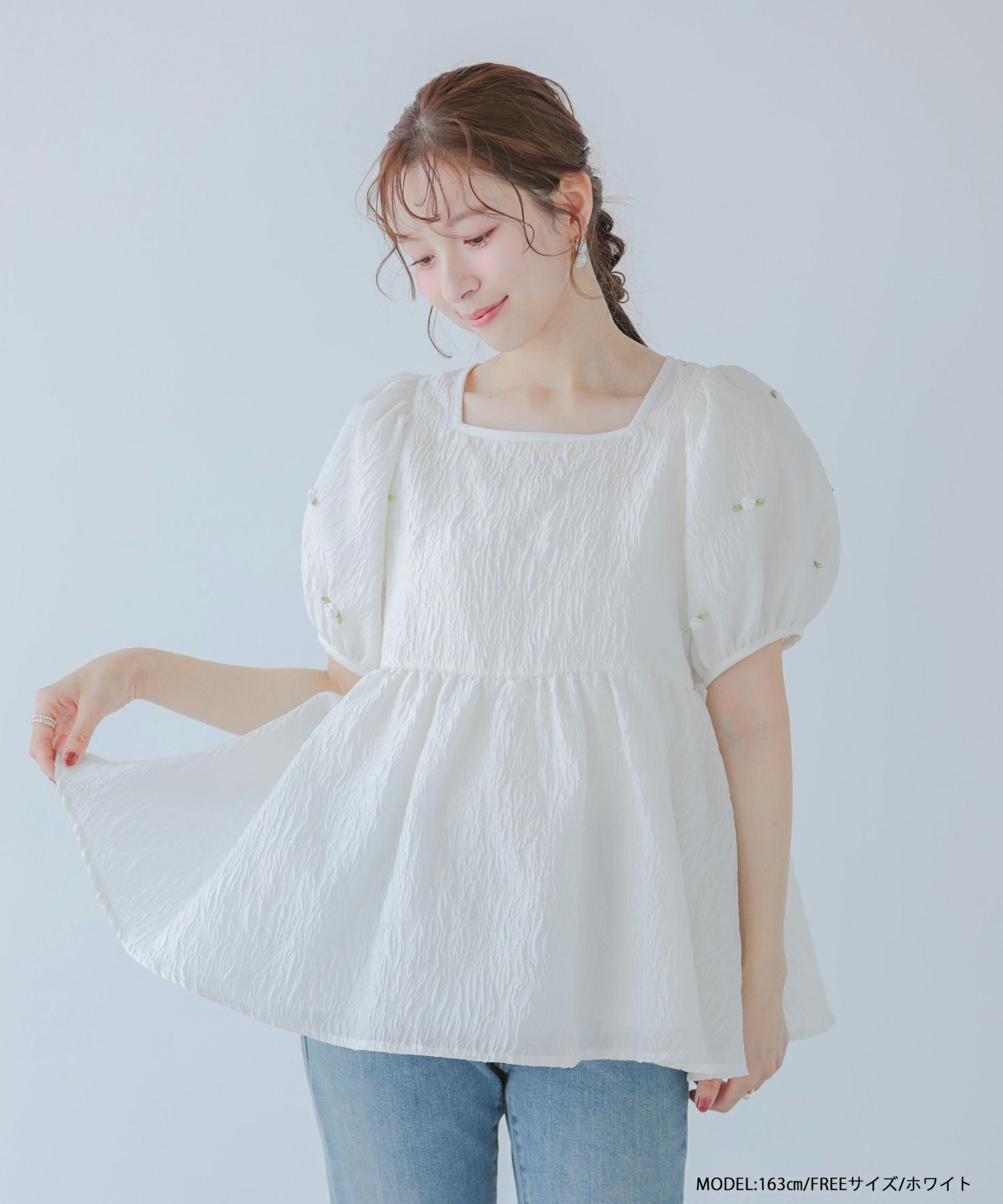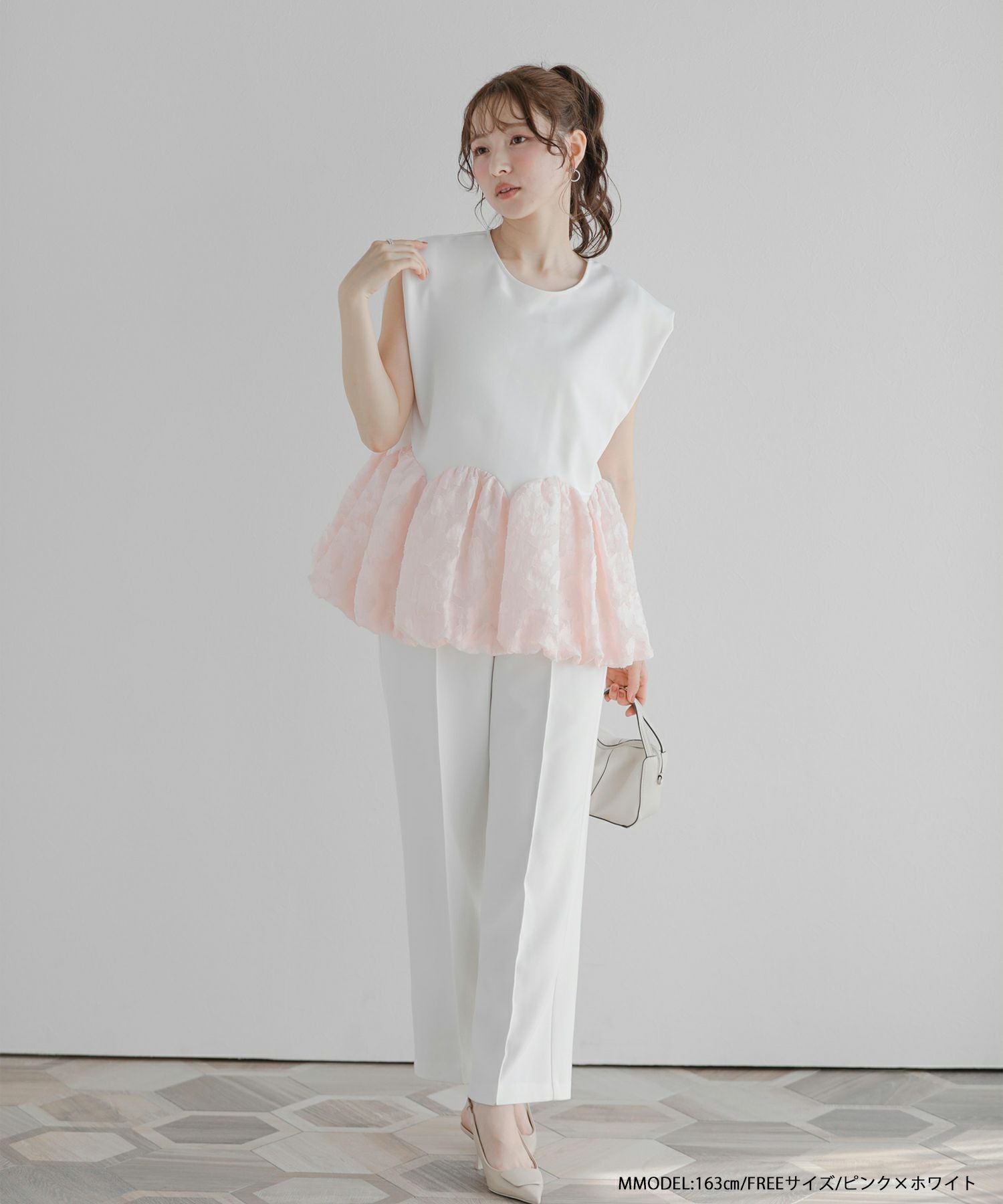 2025ss フラワーモチーフ ジャガード ペプラム スクエア