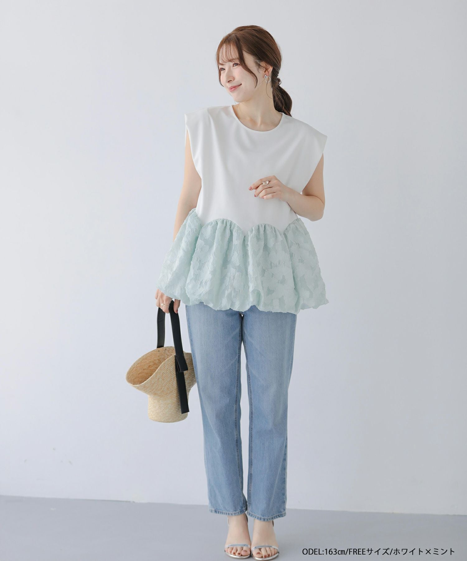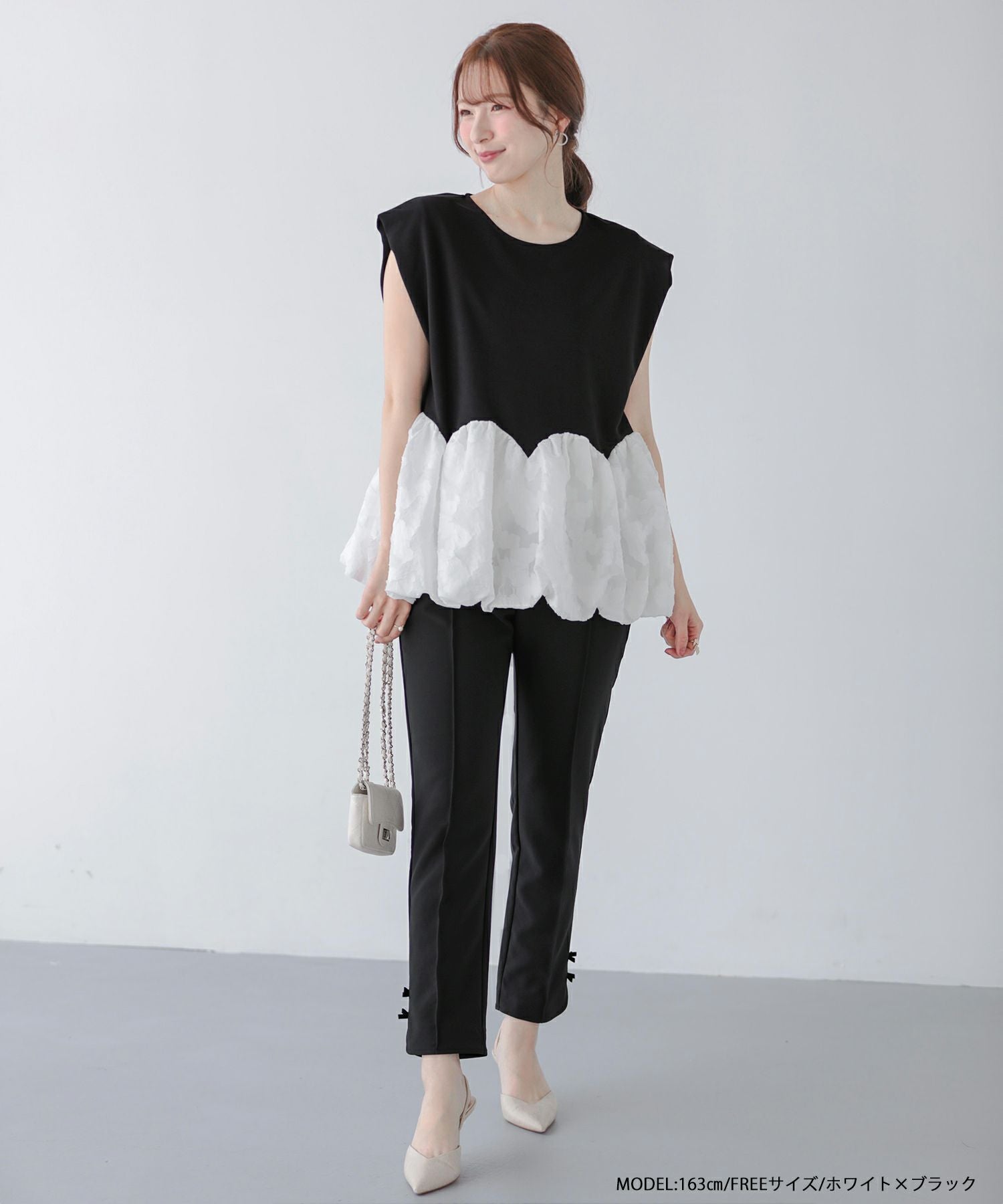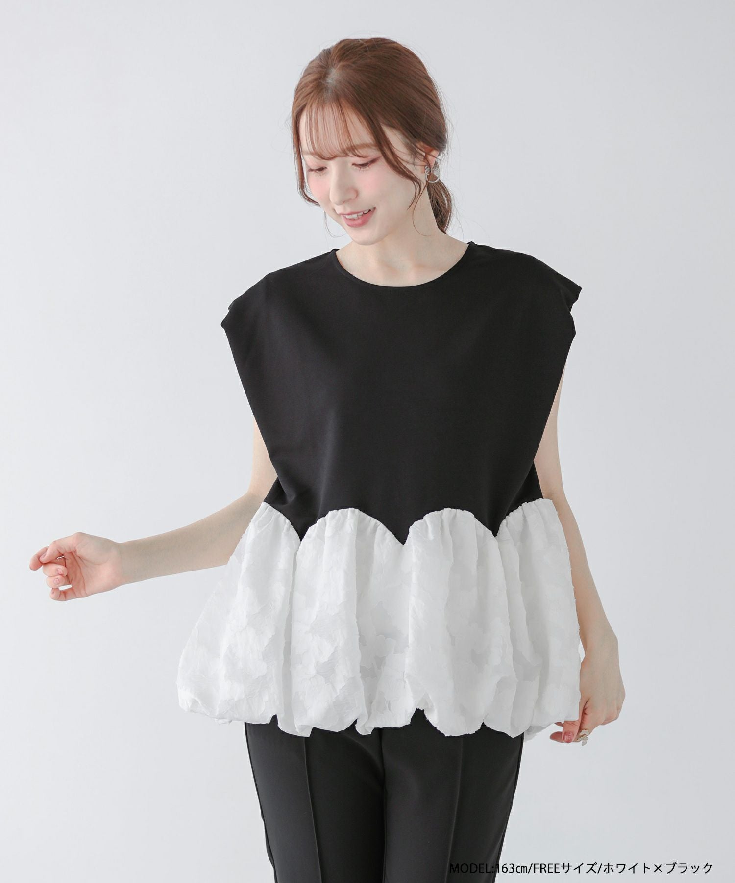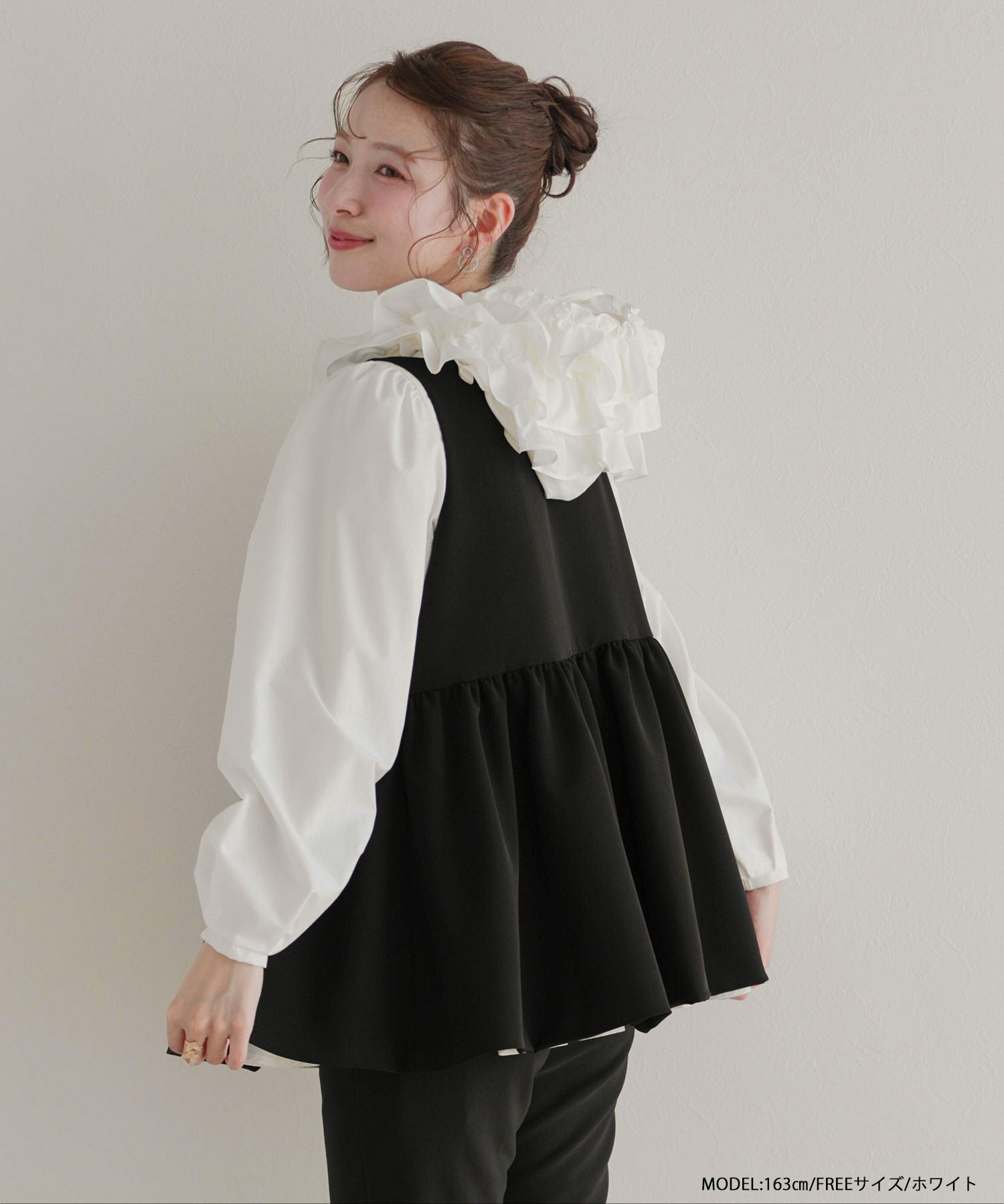 2025ss フリル バイカラー ペプラム ブラウス