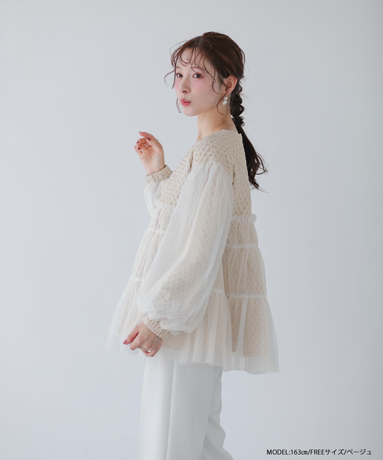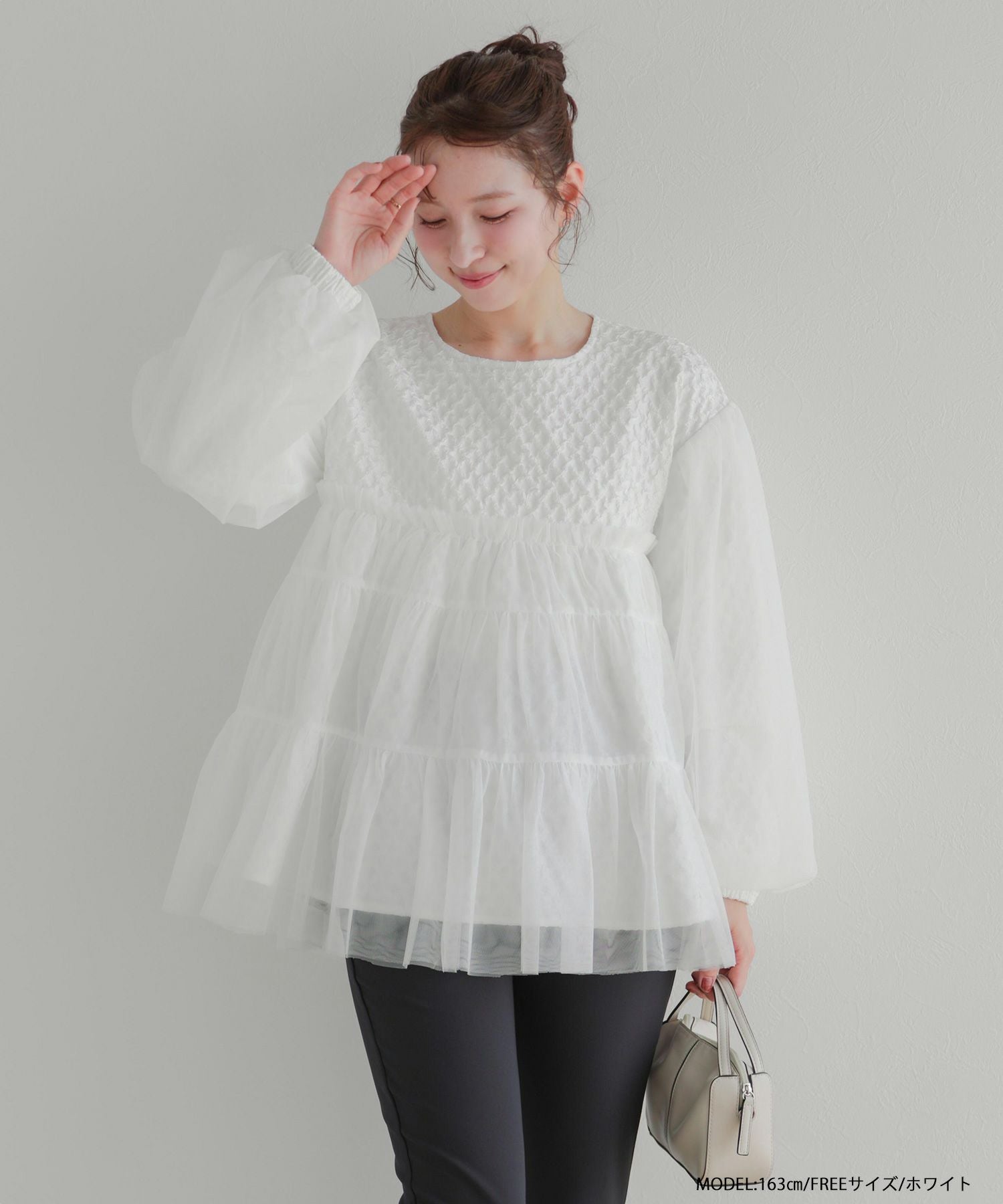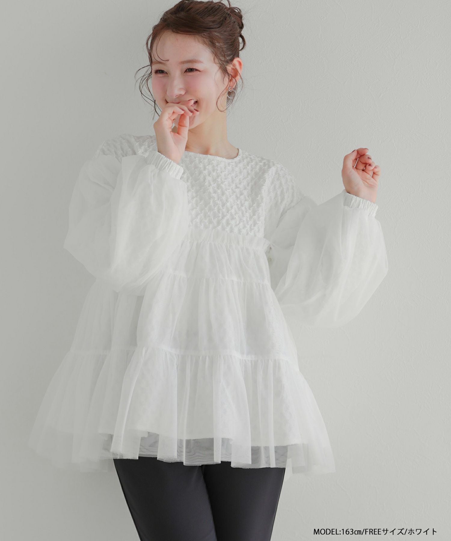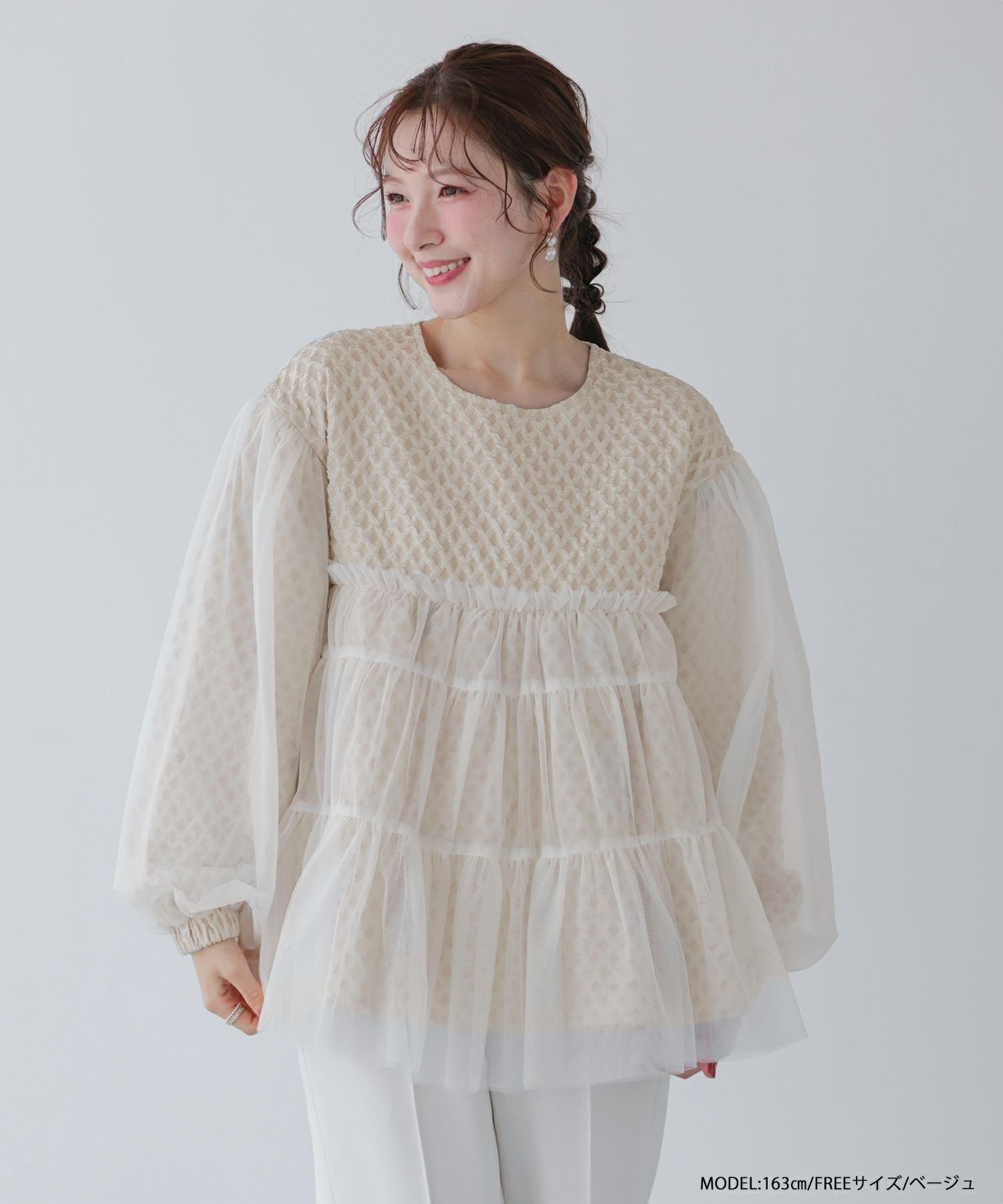 2025aw ジャガード チュール ギャザー トップス