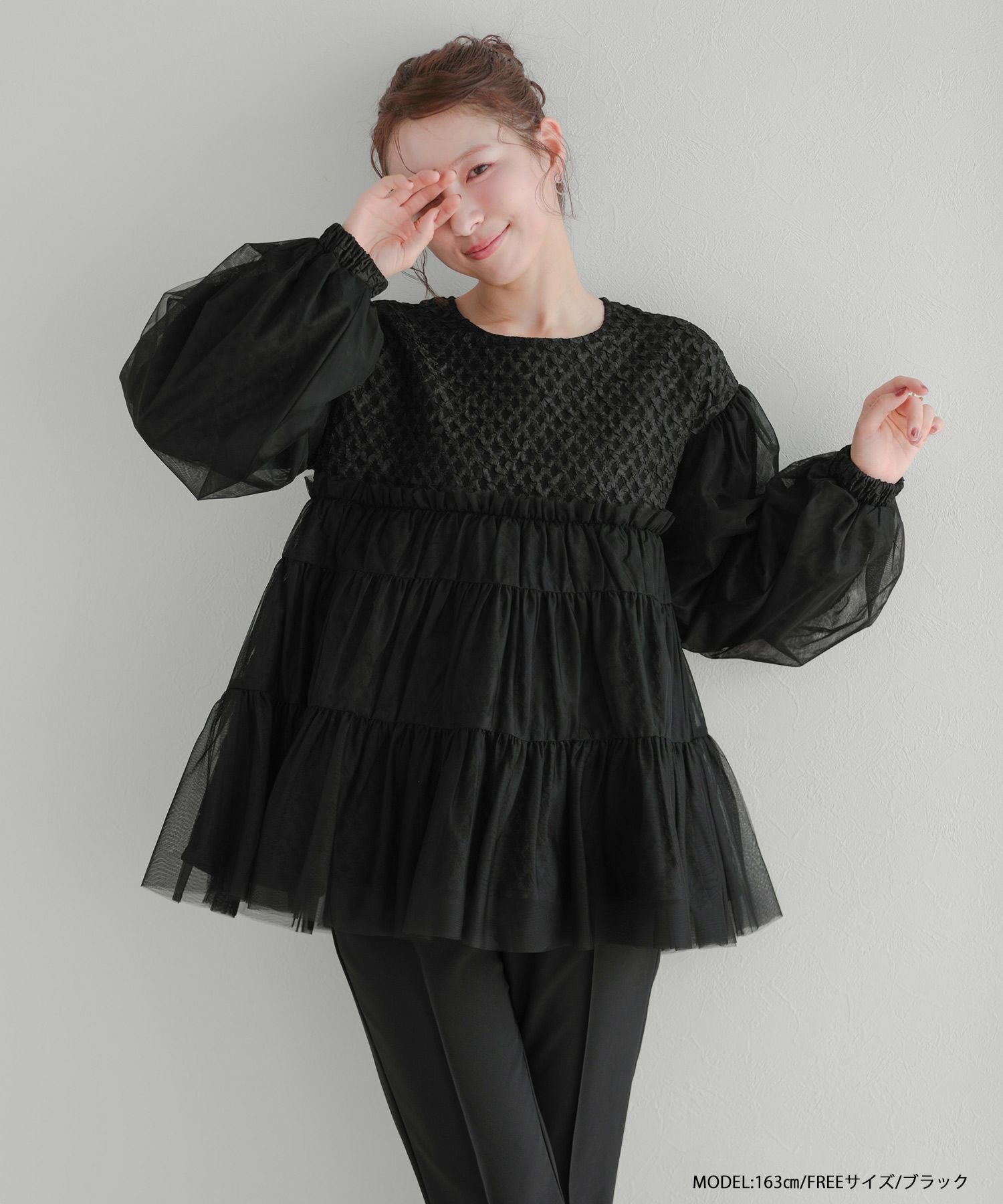 ジャガード切替チュールトップス【宅配便】