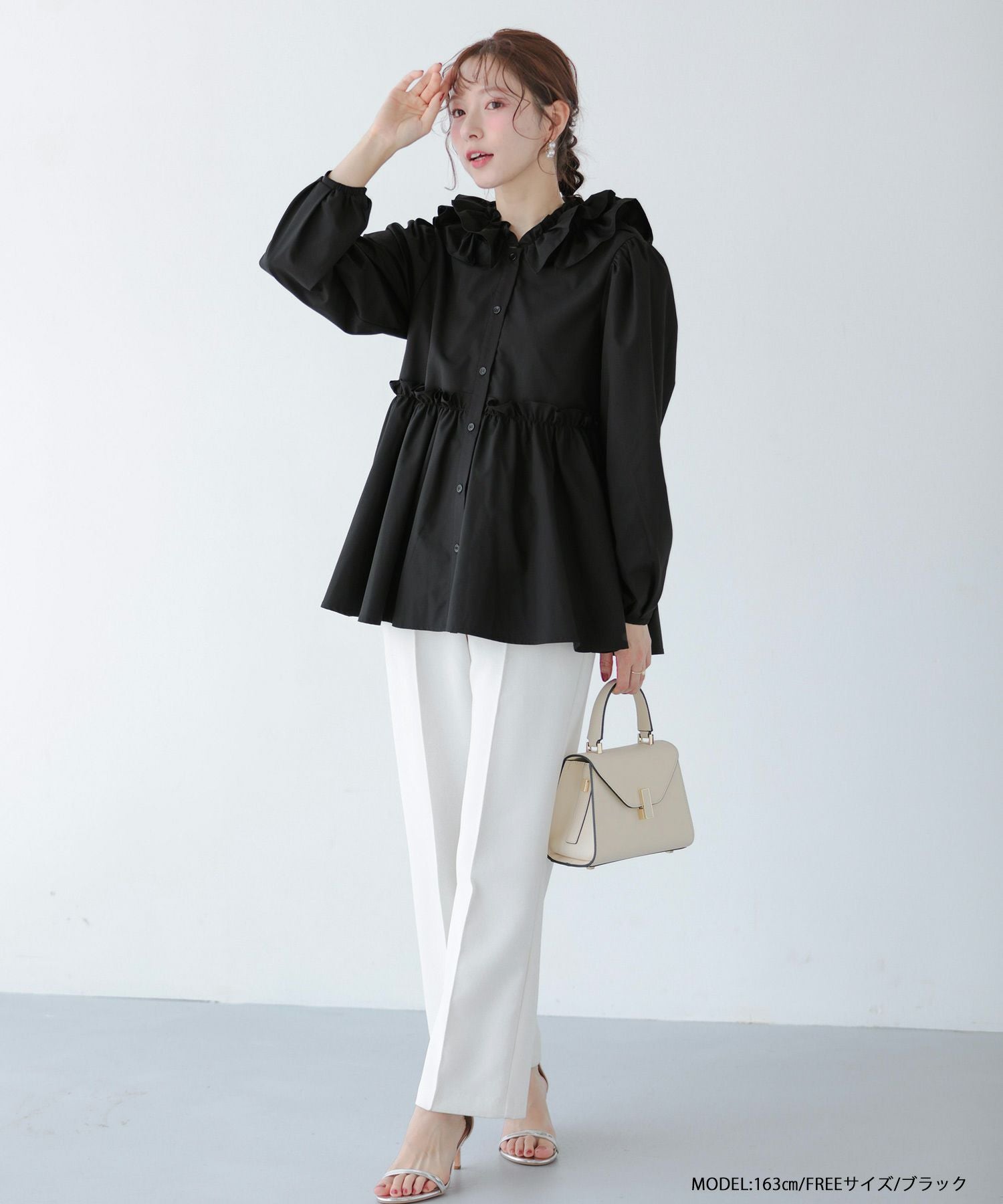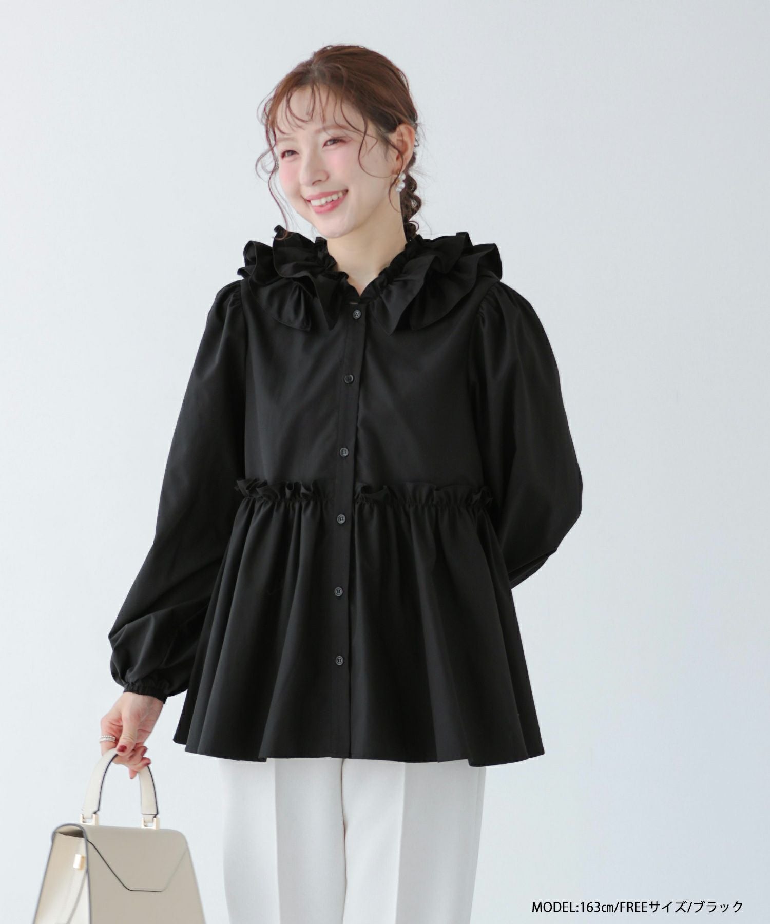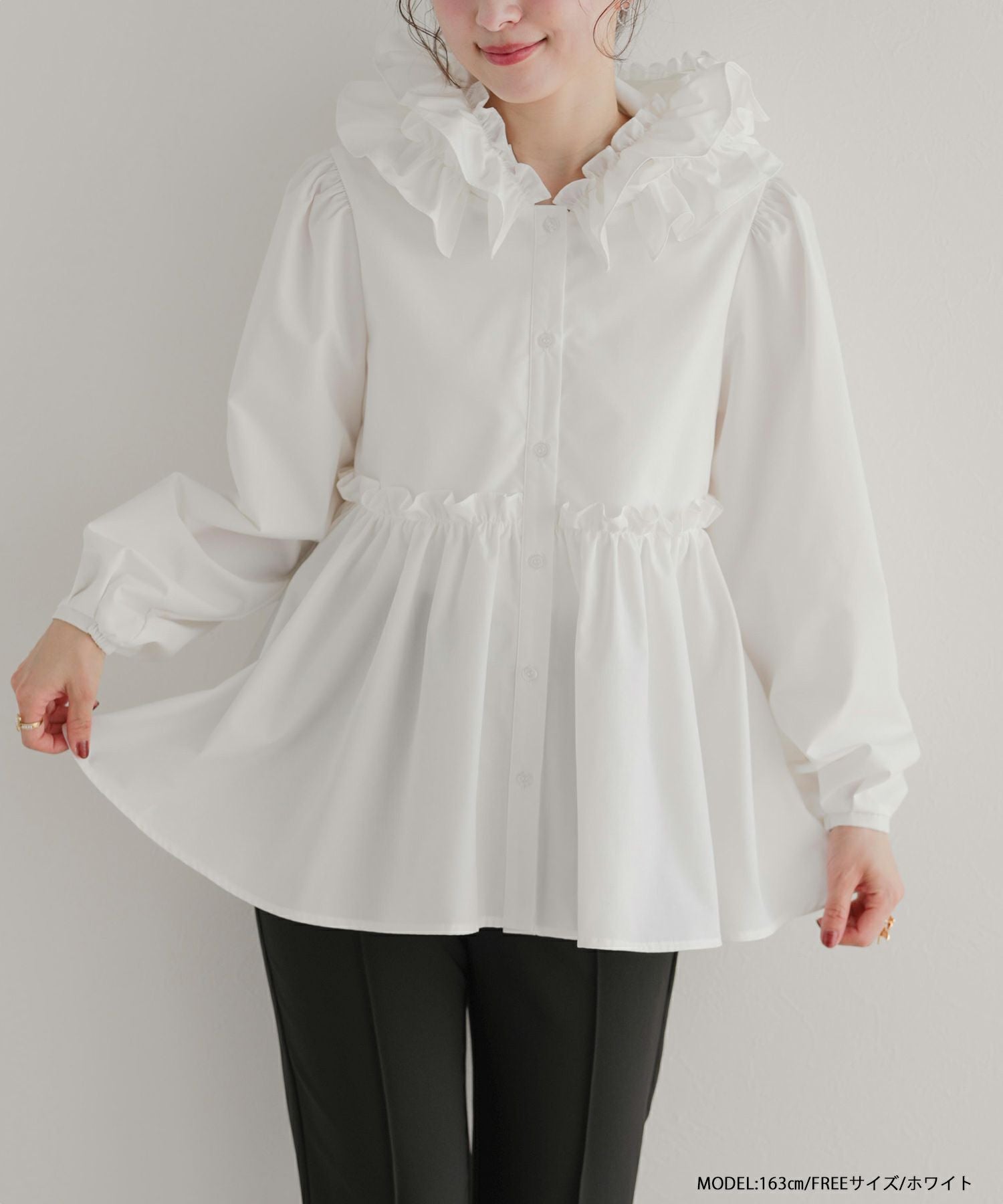 フロントフリルペプラムブラウス【宅配便】