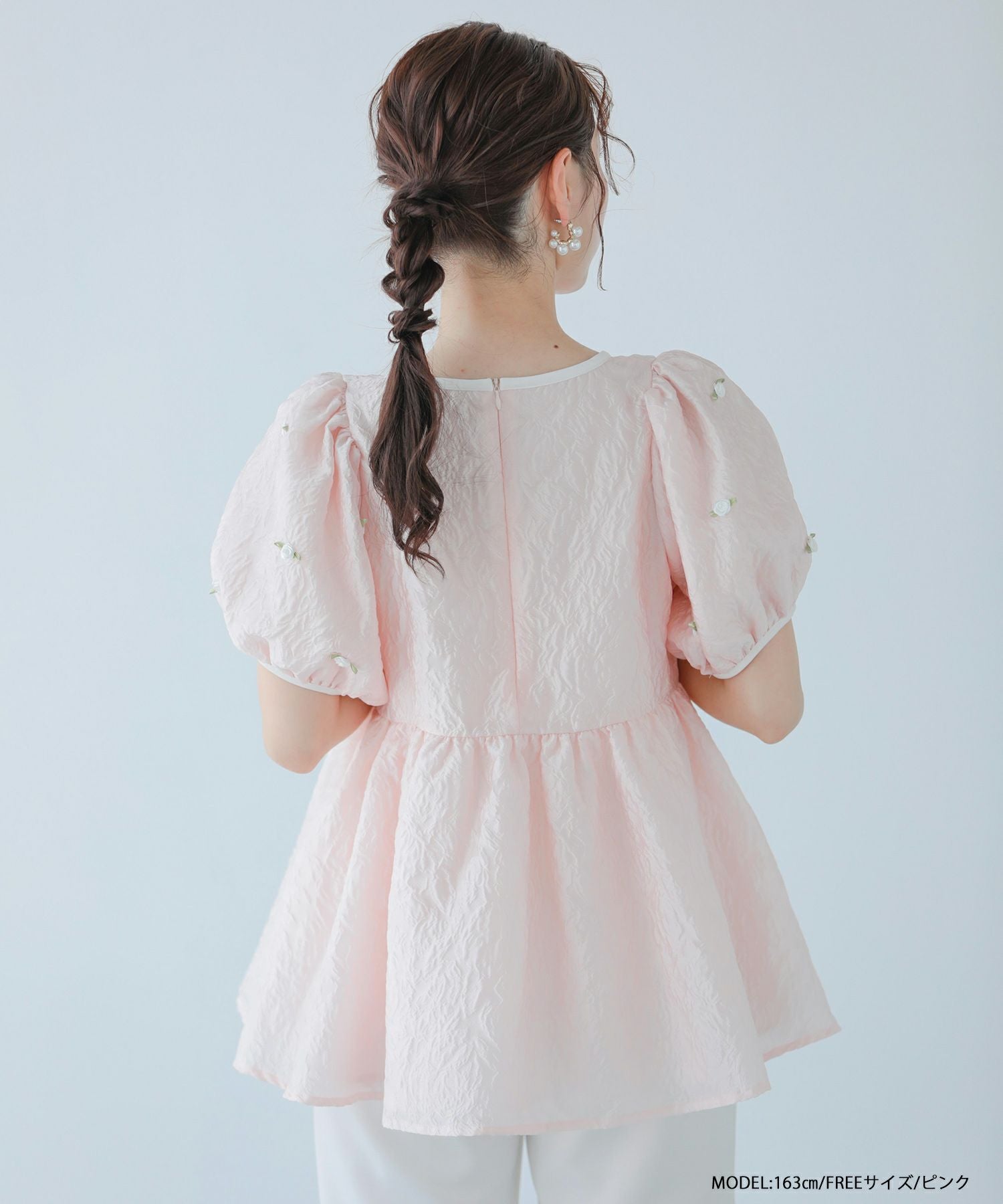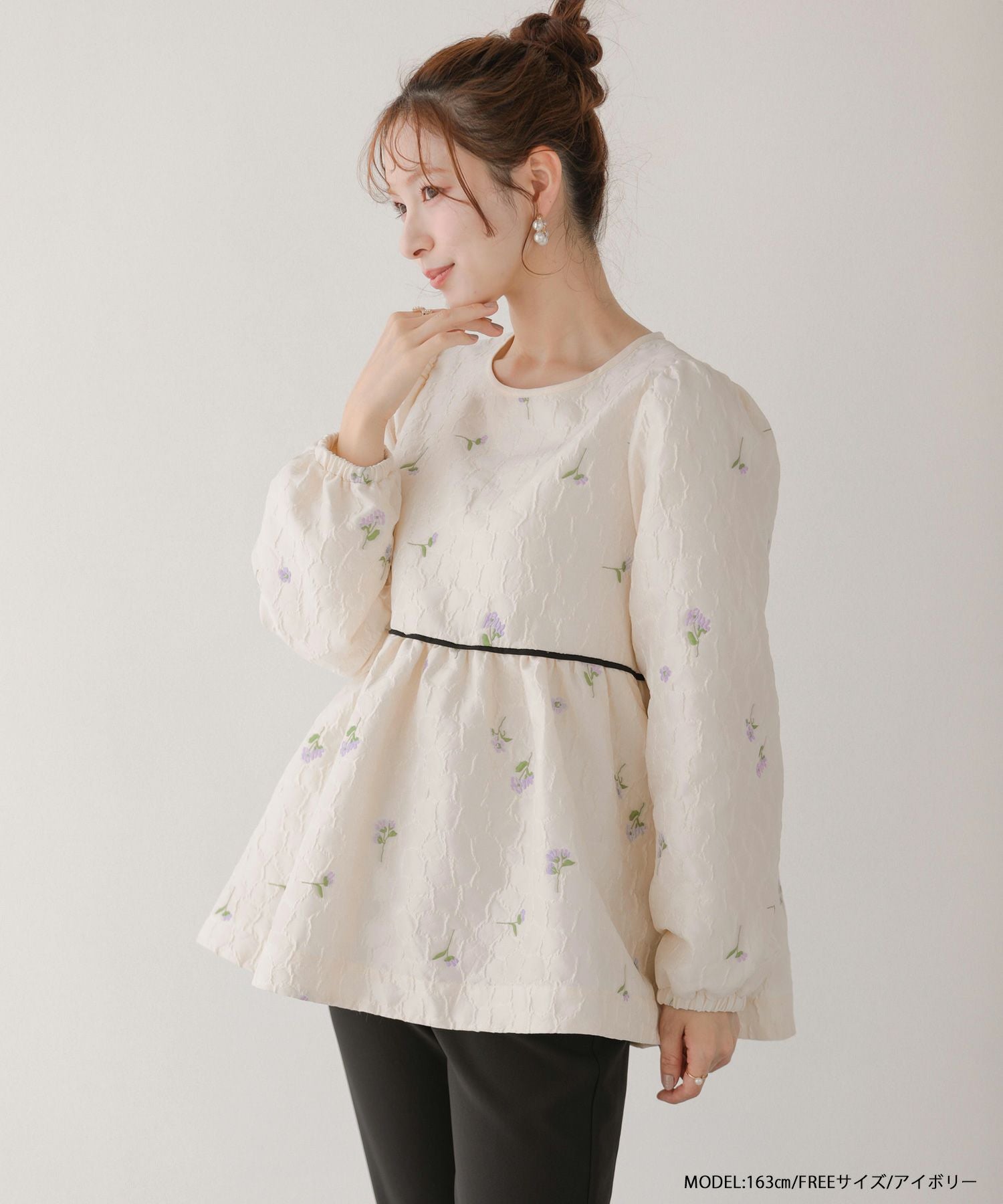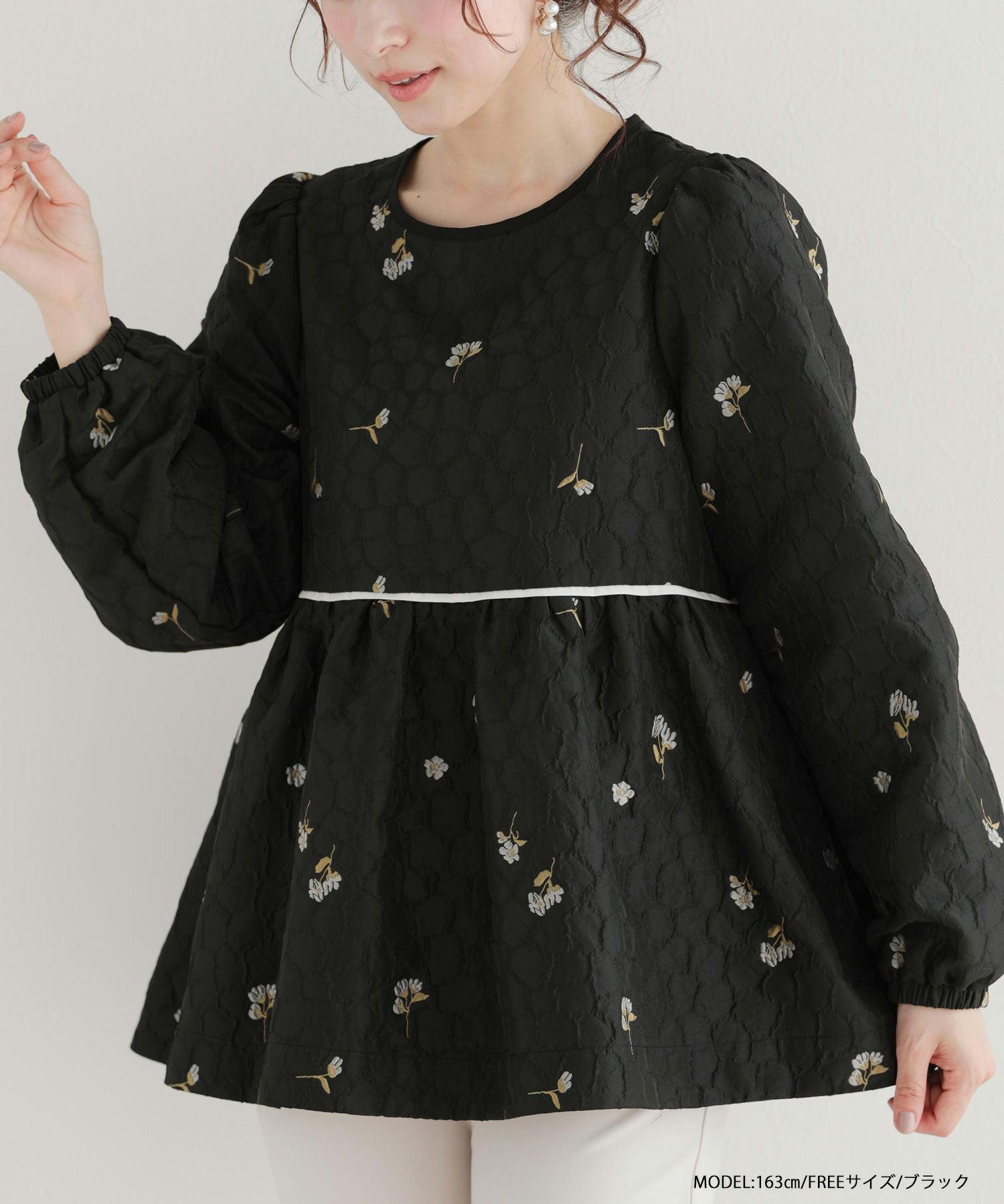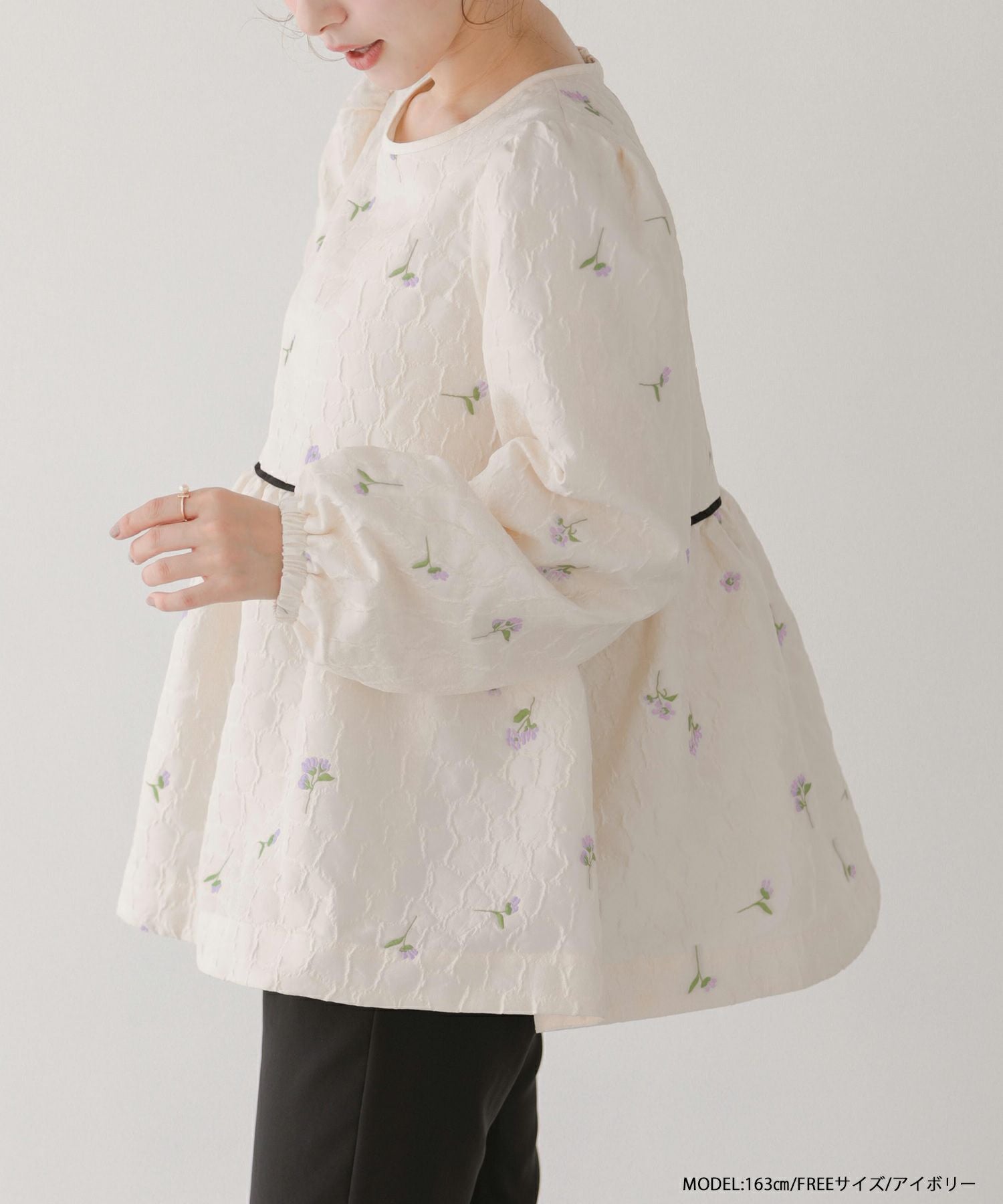 ローズモチーフジャガードペプラムトップス【宅配便】