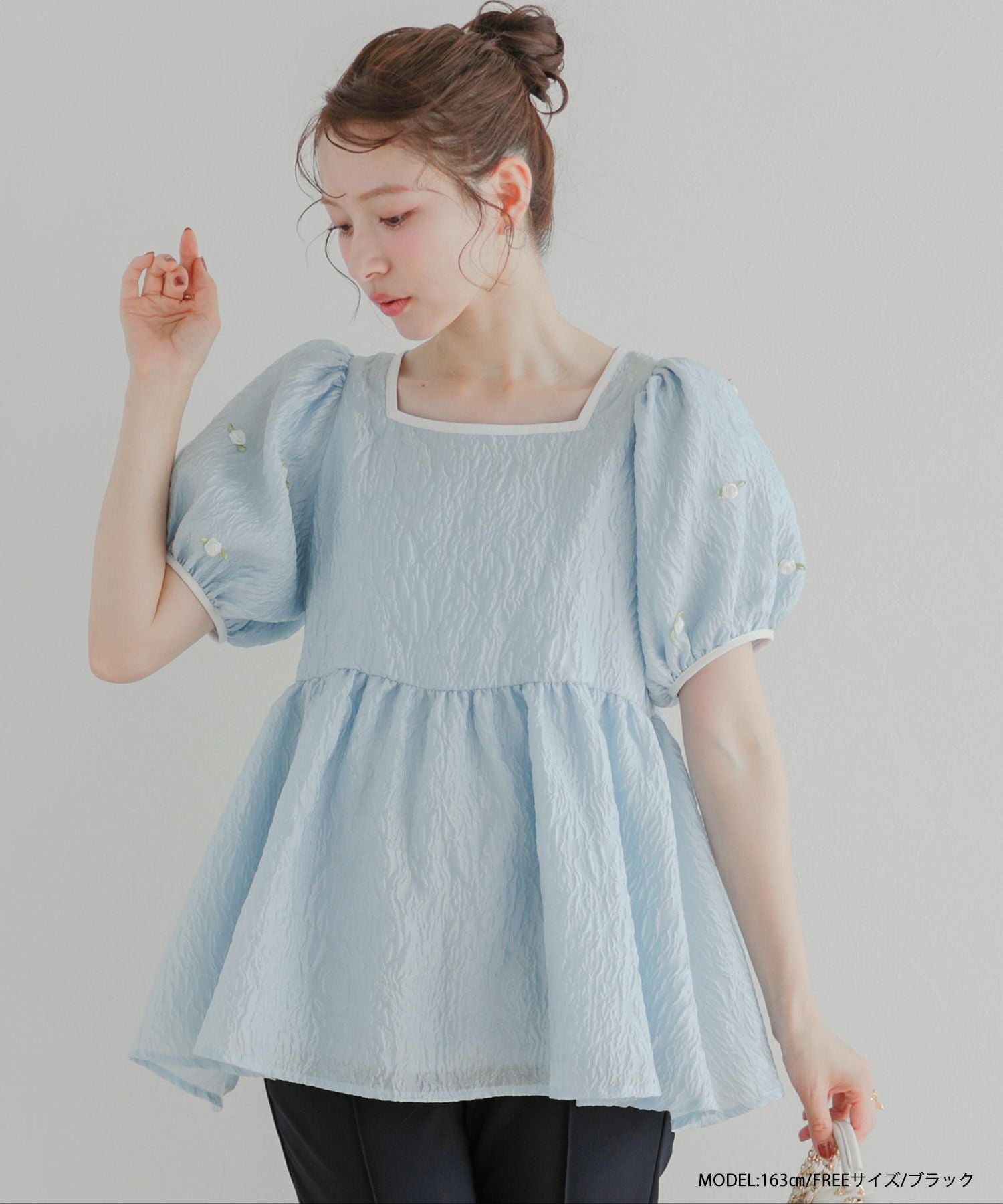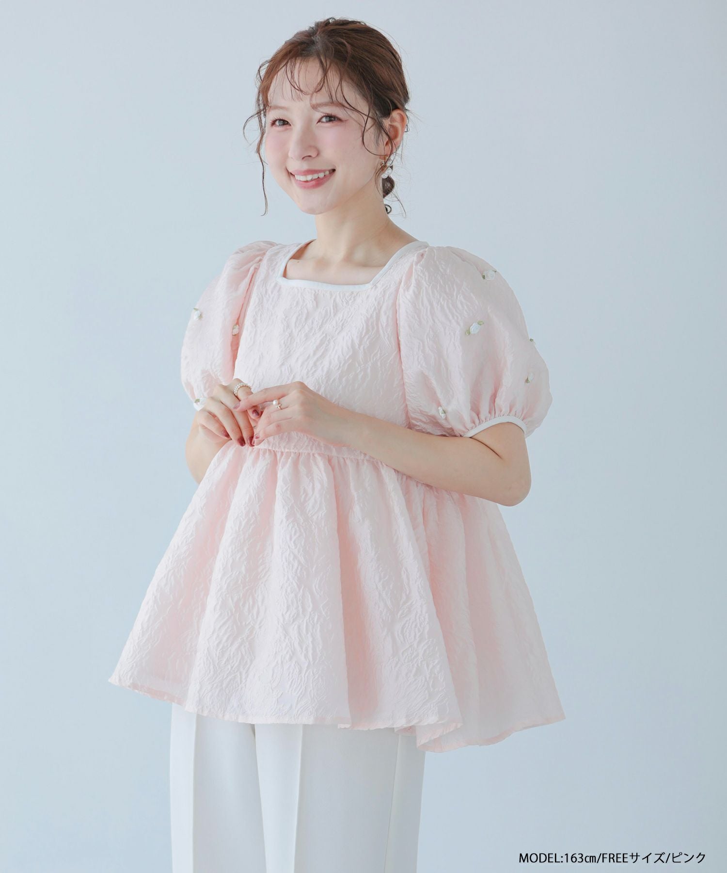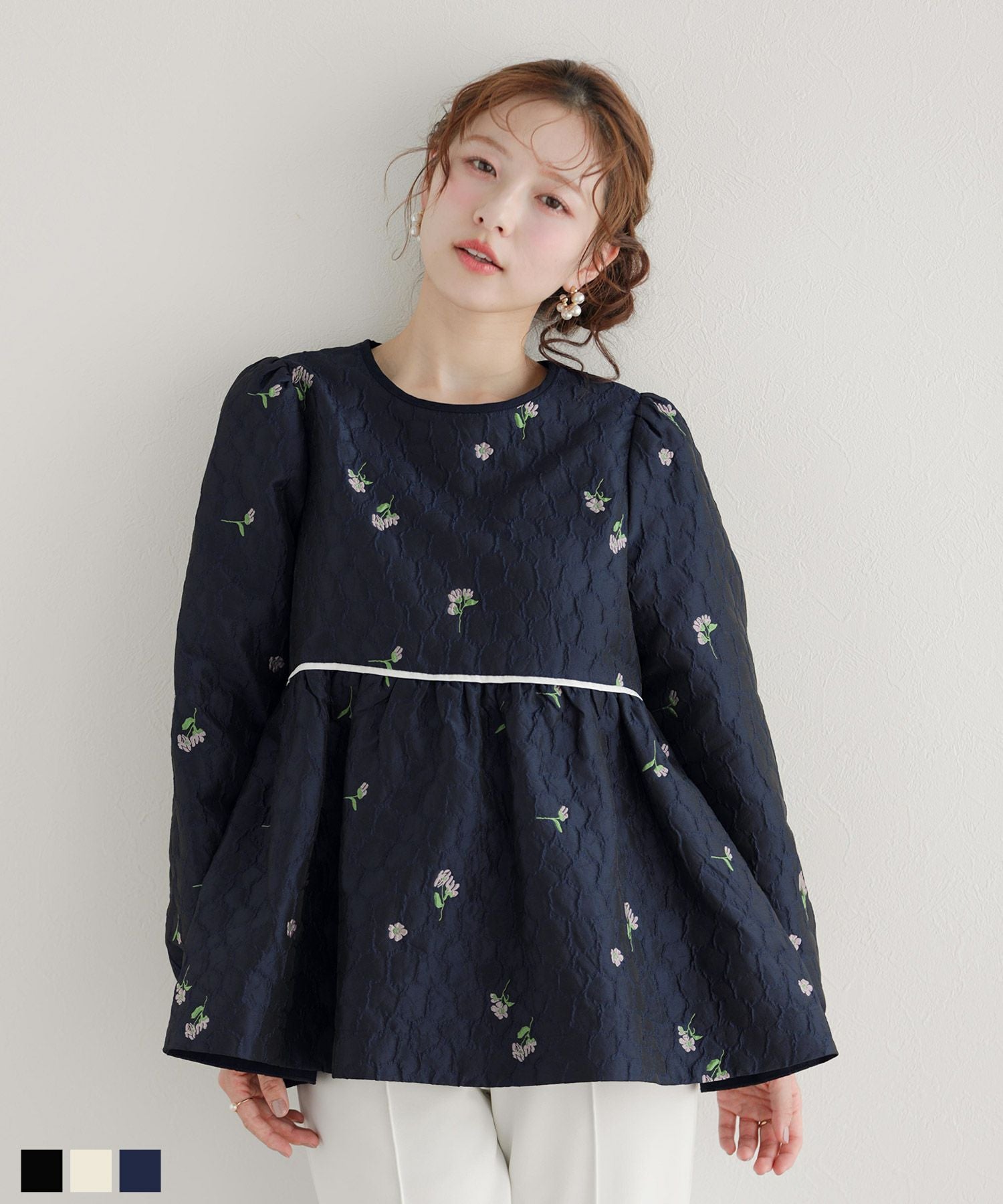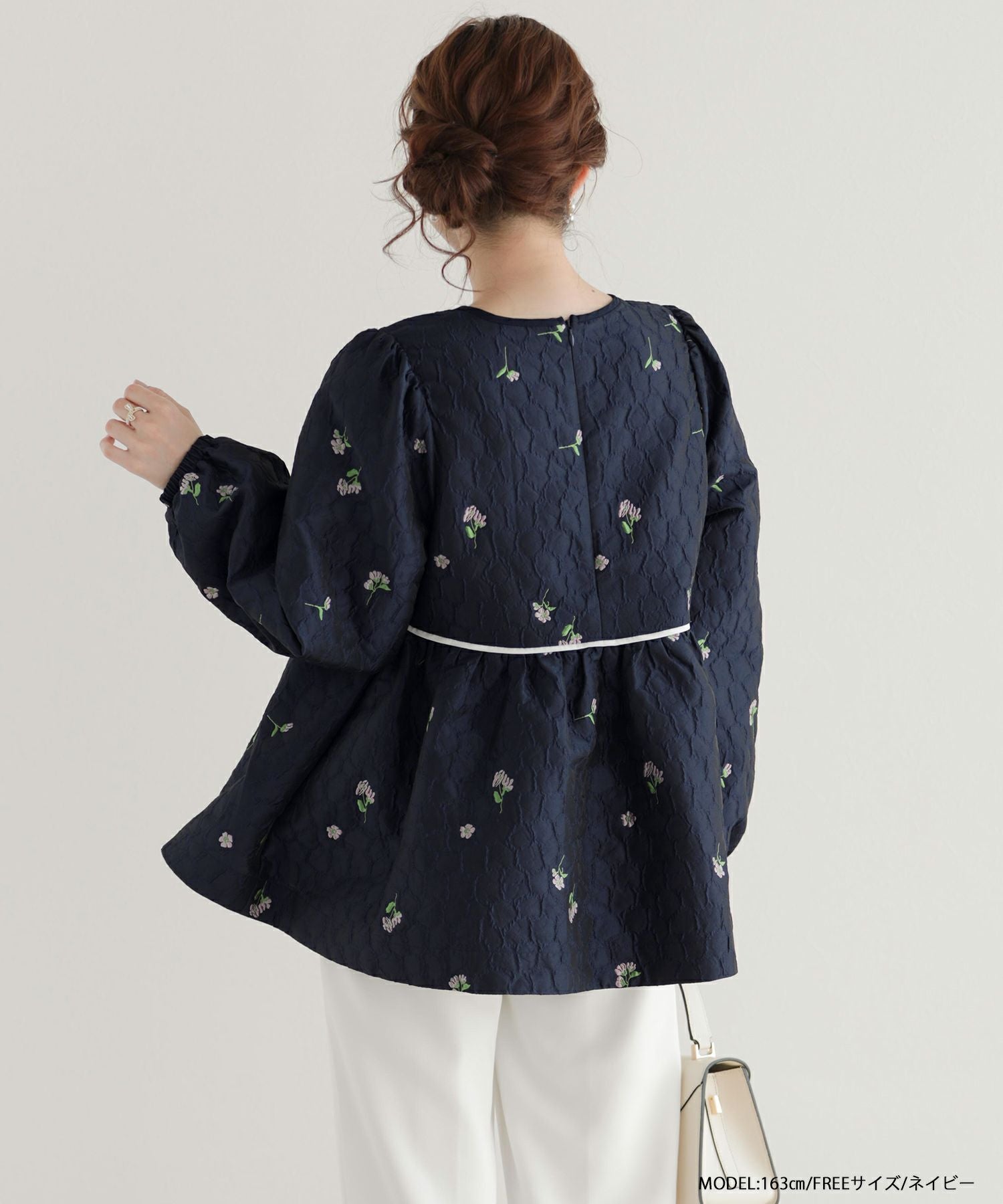 ローズモチーフジャガードペプラムトップス【宅配便】