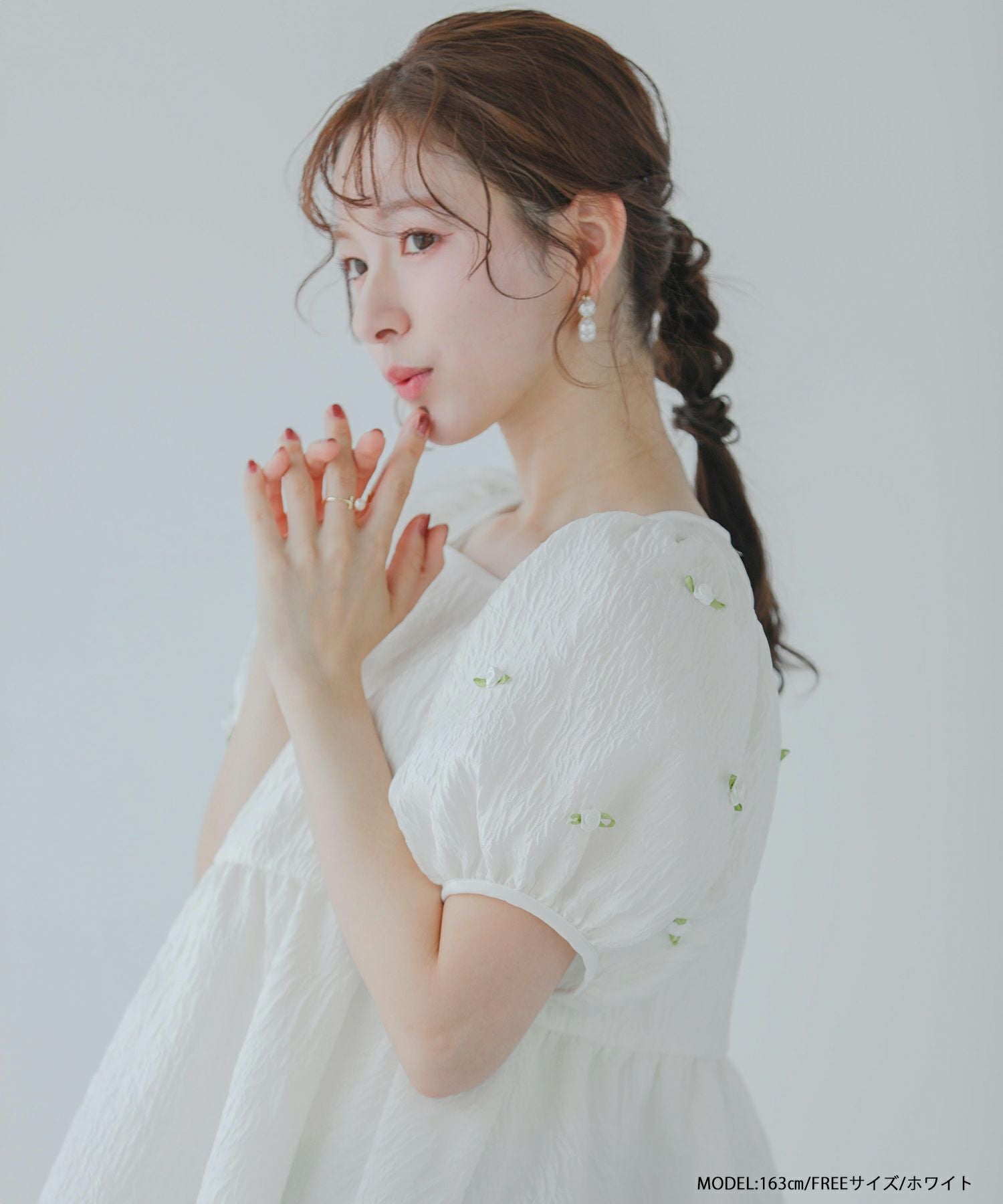 2025ss フリル チュール フレンチスリーブ ペプラム リボン