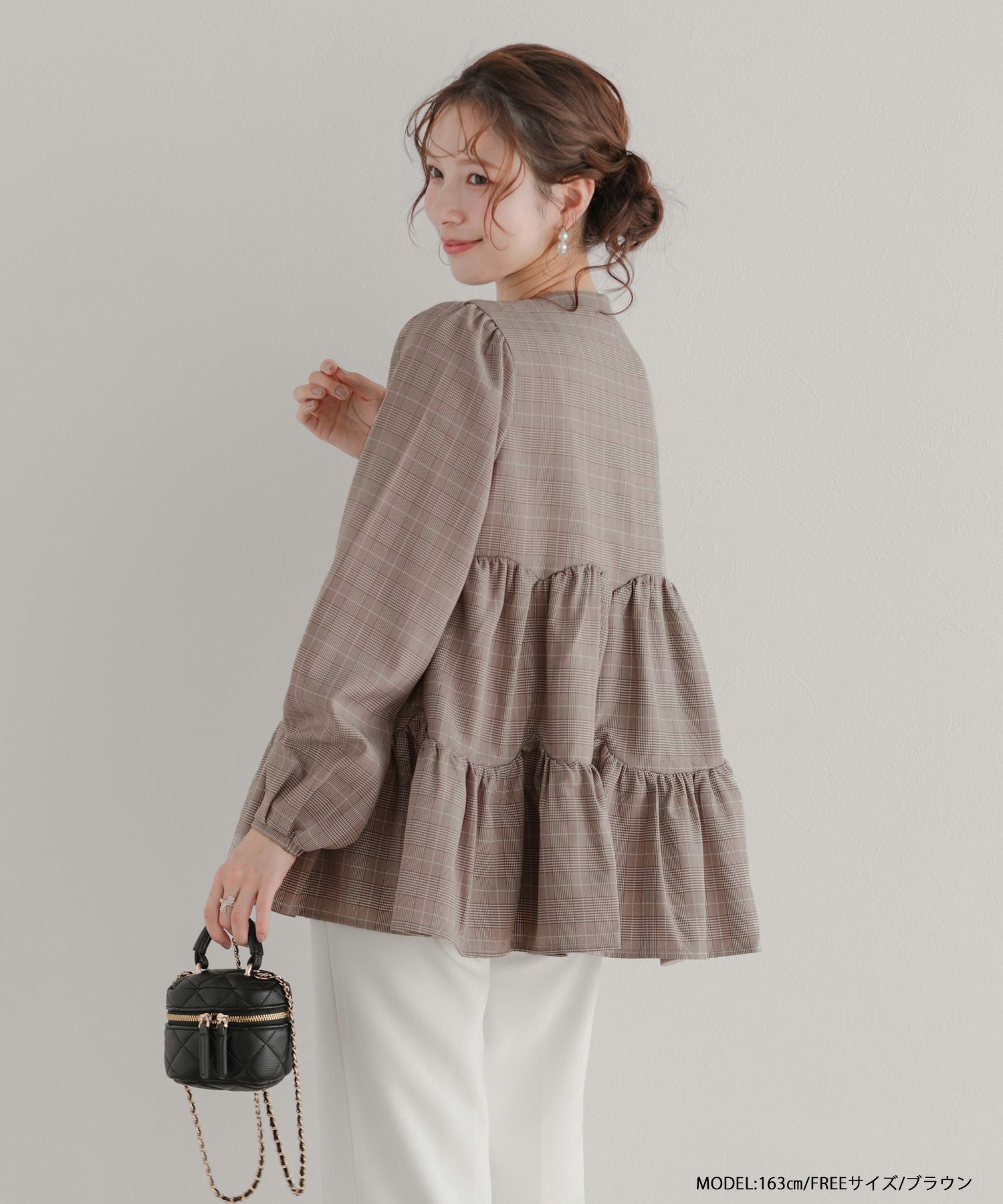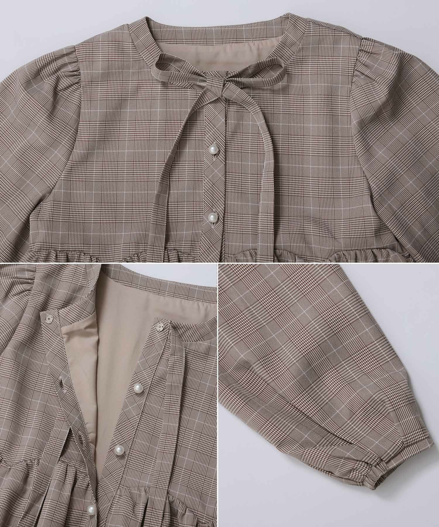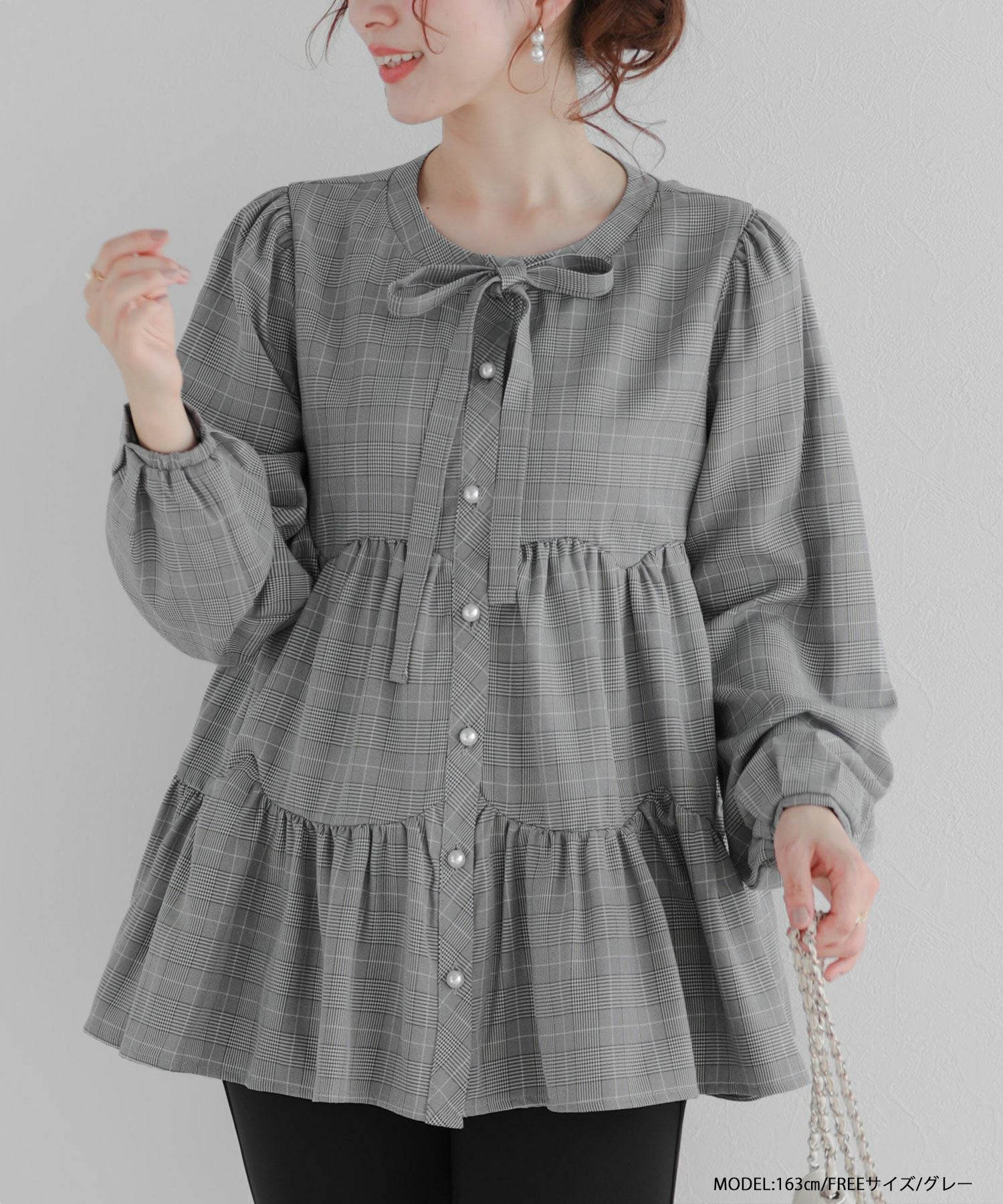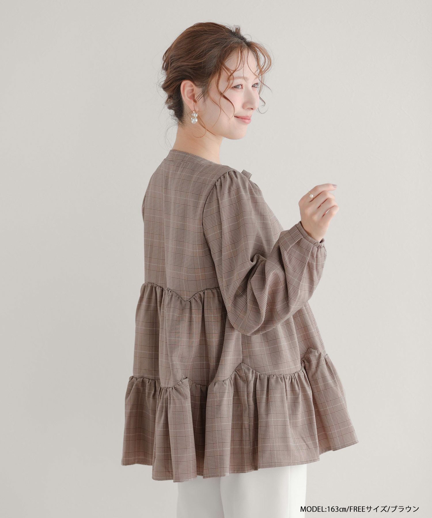 グレンチェックティアードブラウス【宅配便】