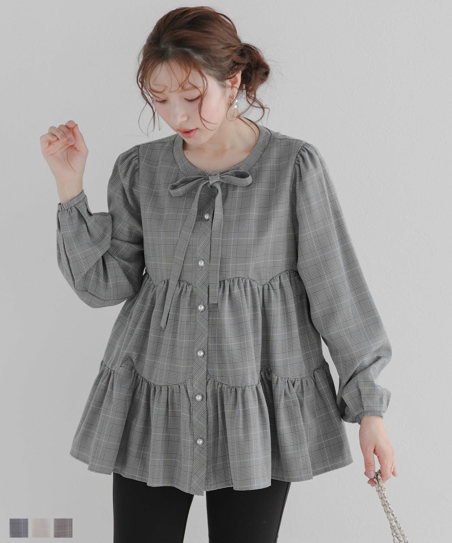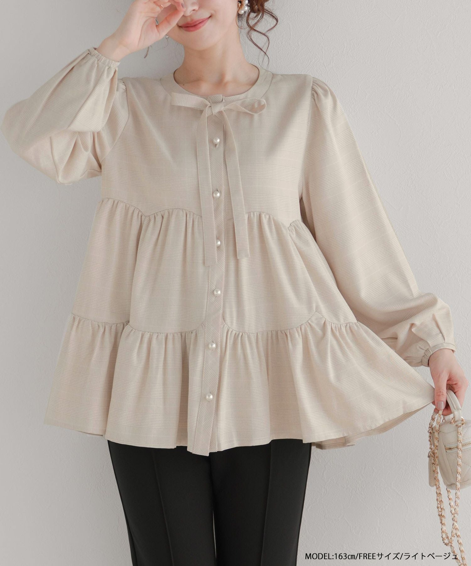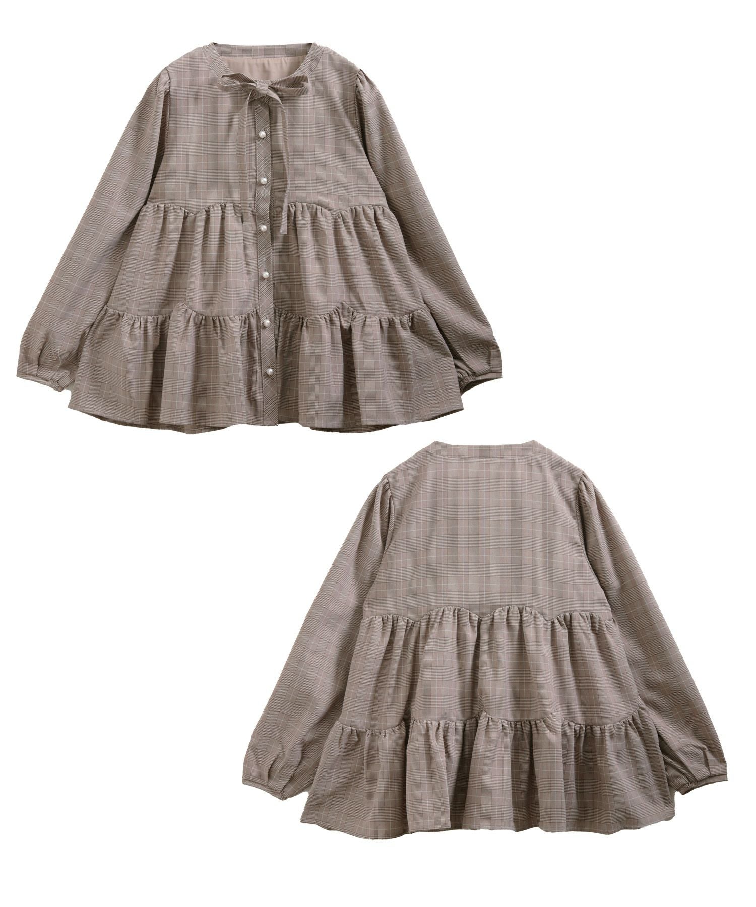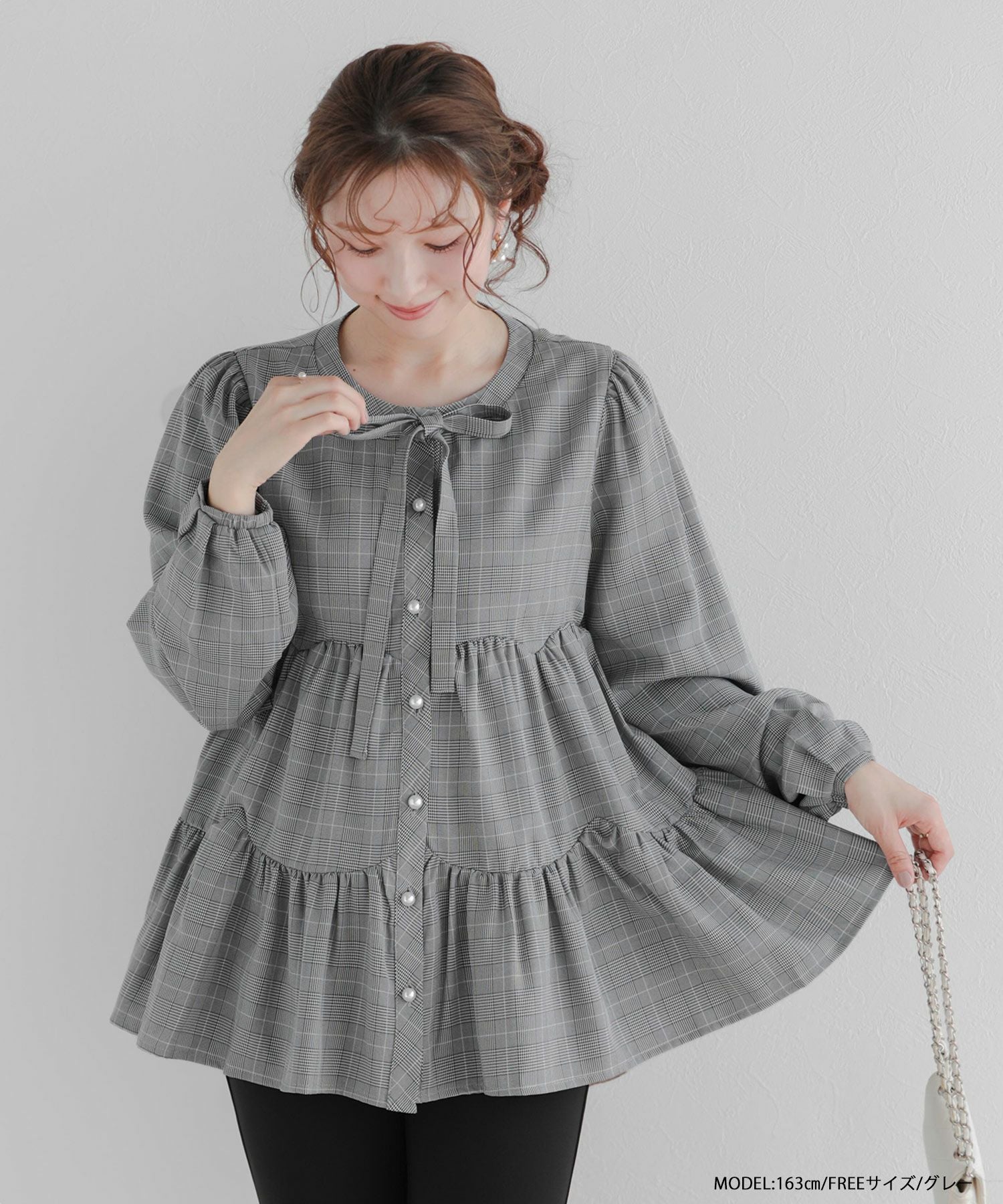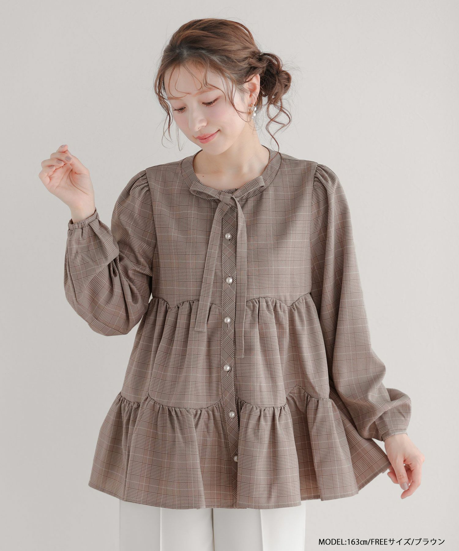 グレンチェックティアードブラウス【宅配便】