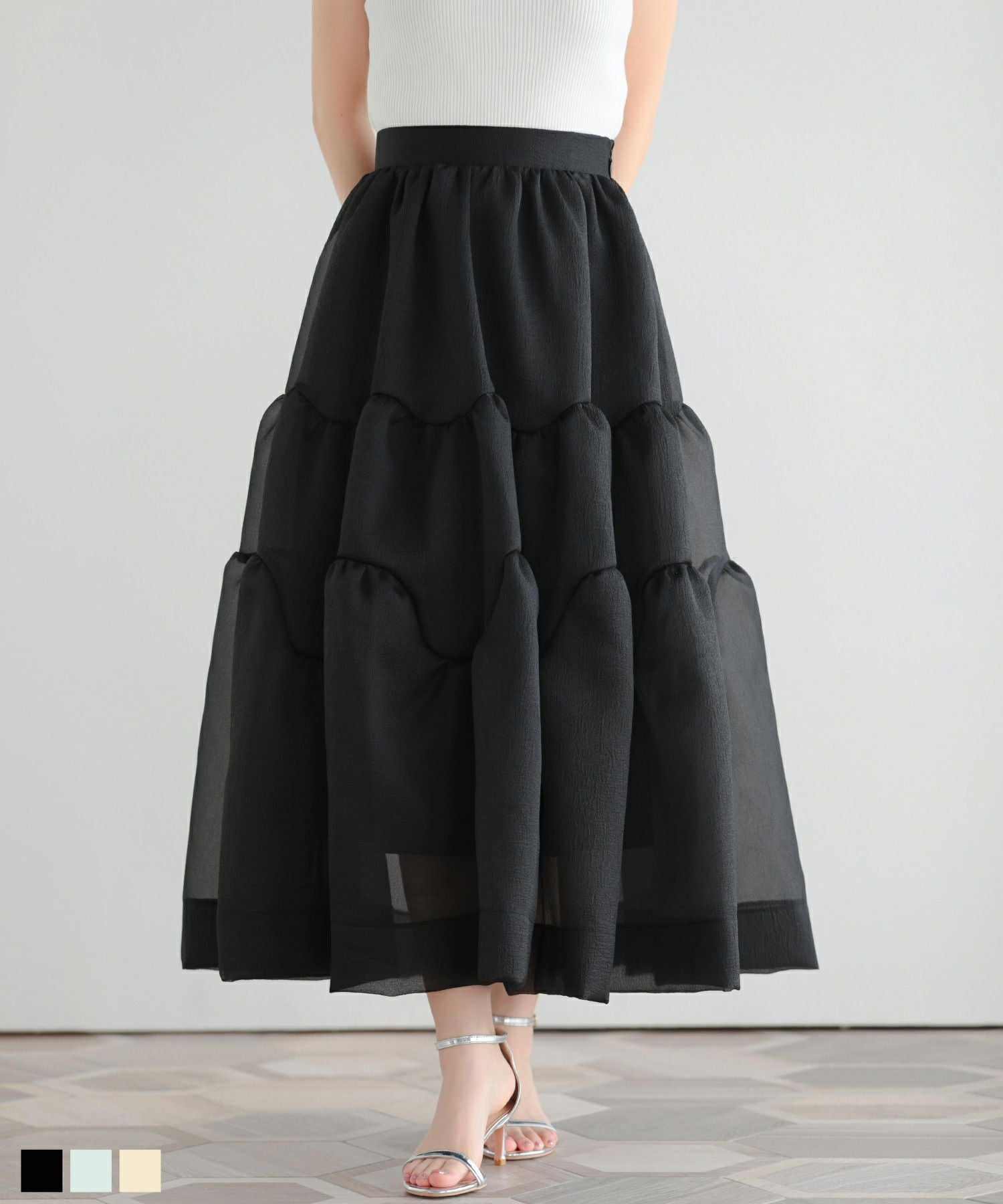 他の画像を見る 2025ss スカート シアー クリンクル ティアード ロング オーガンジー クリンクルシアーオーガンジーティアードスカート【宅配便】 価格 ¥ 15,900 税込 お気に入りに登録する