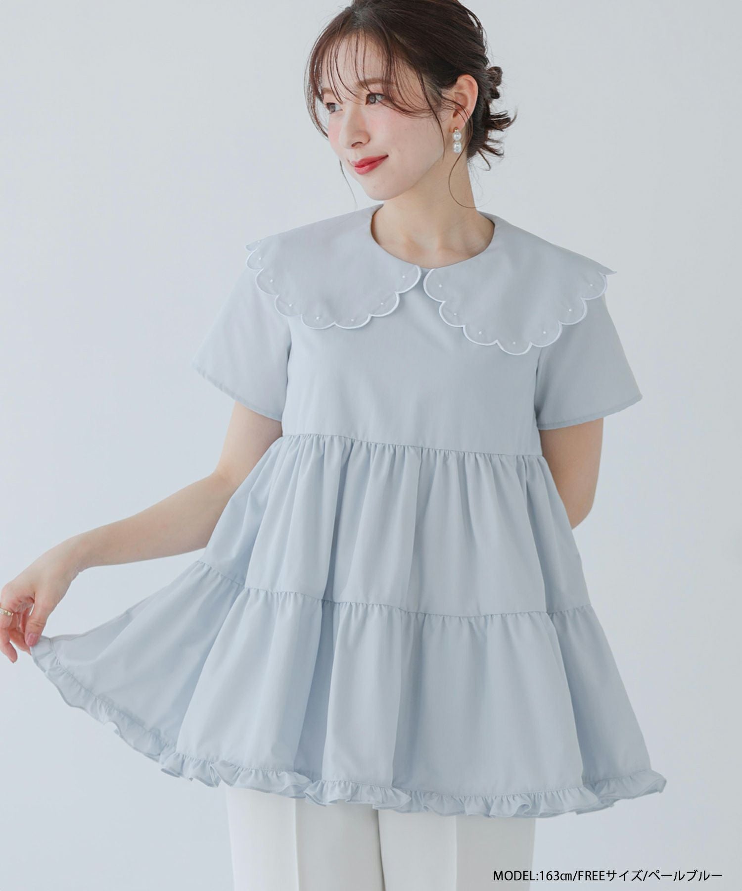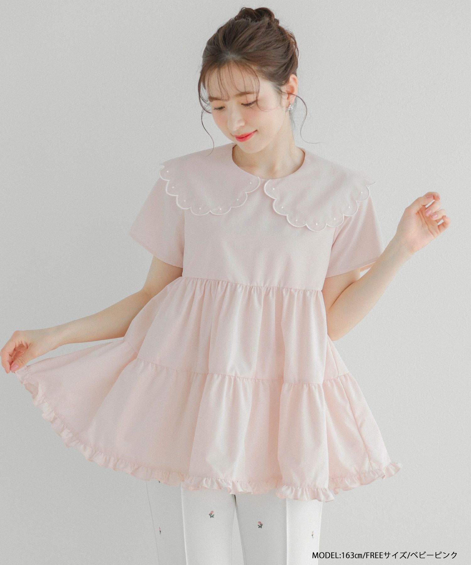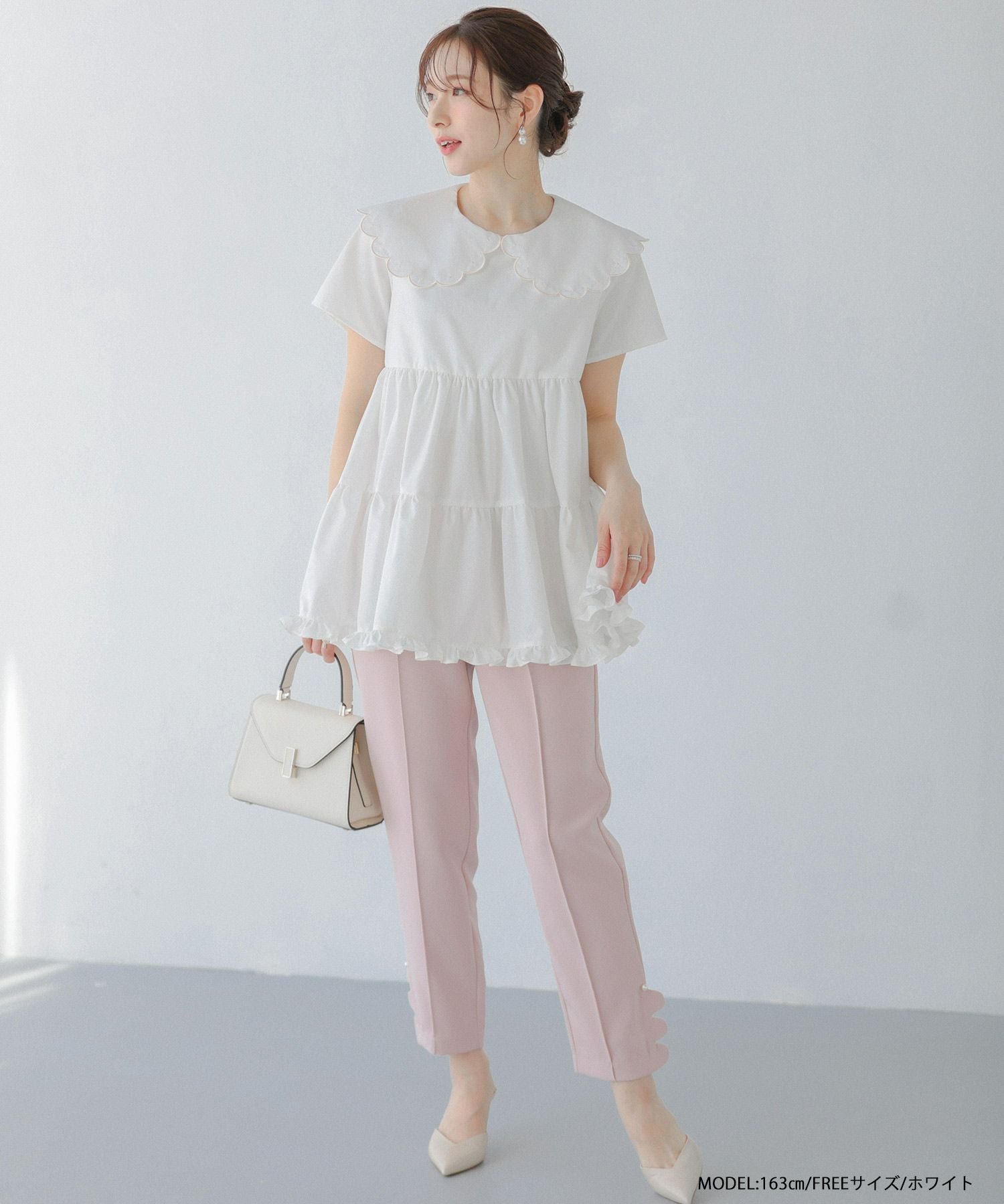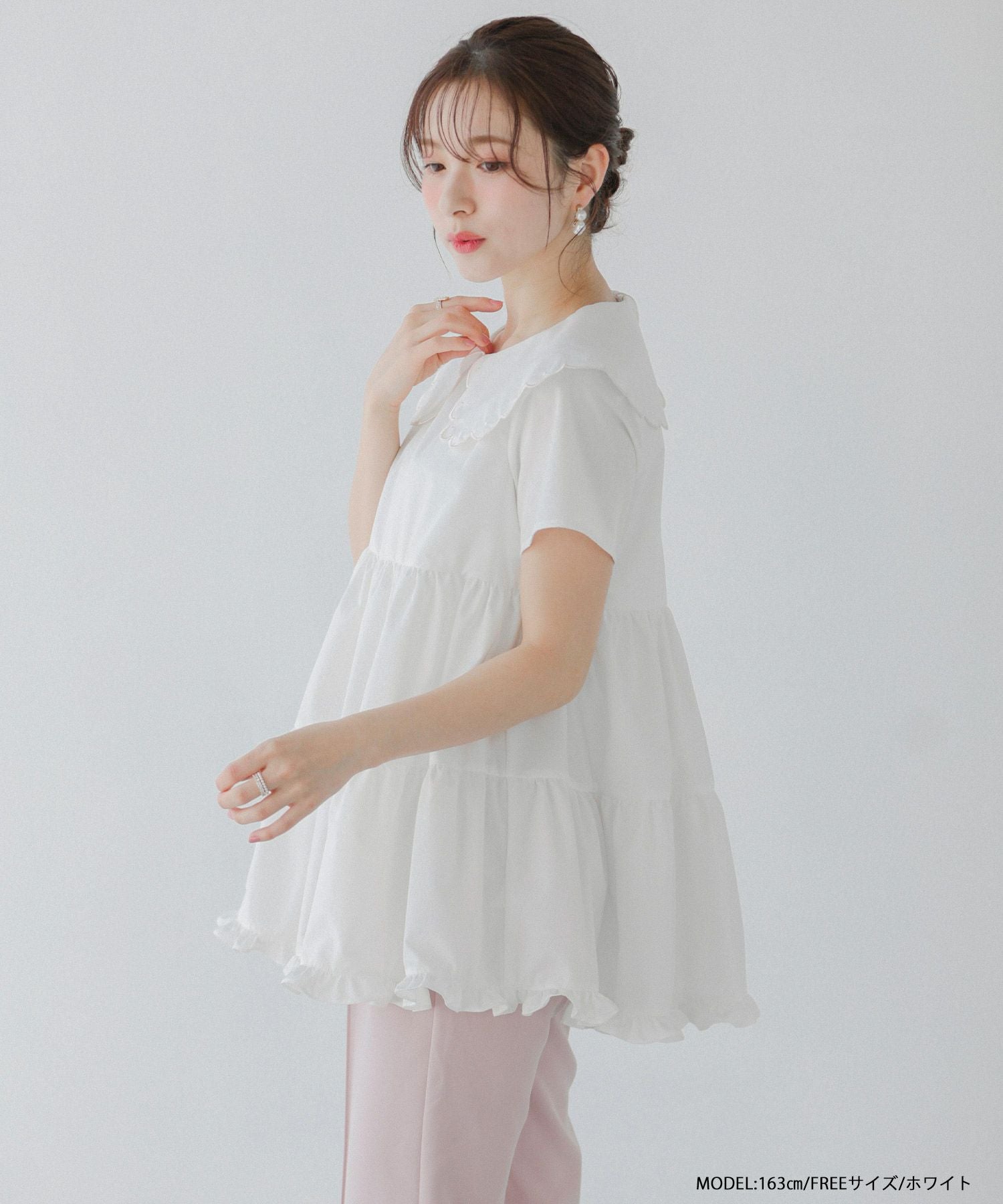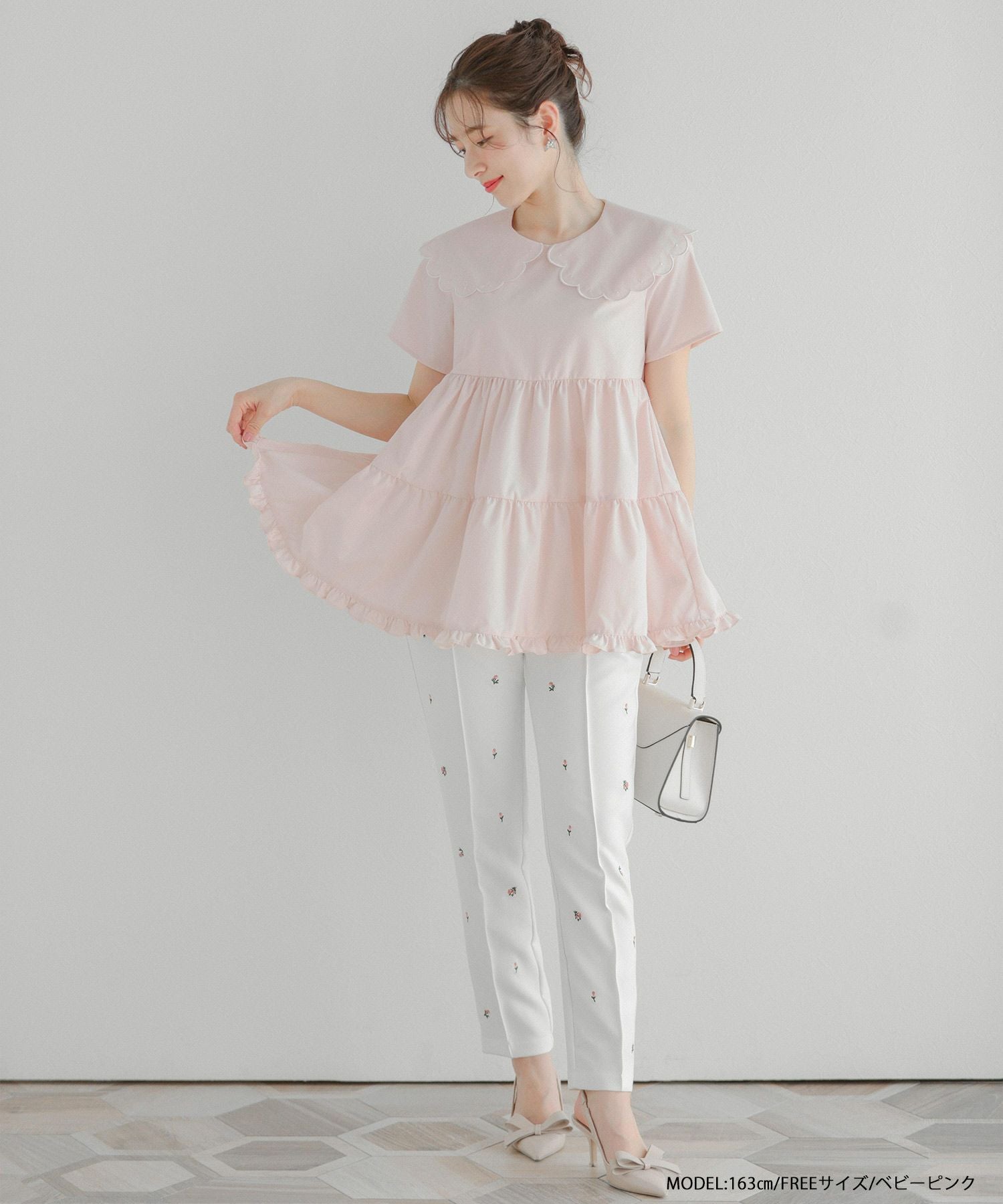 他の画像を見る 2025ss ブラウス 刺繍 スカラップ フリル ティアード ギャザー トップス ドット刺繍スカラップカラーギャザートップス【宅配便】 価格 ¥ 11,900 税込 お気に入りに登録する