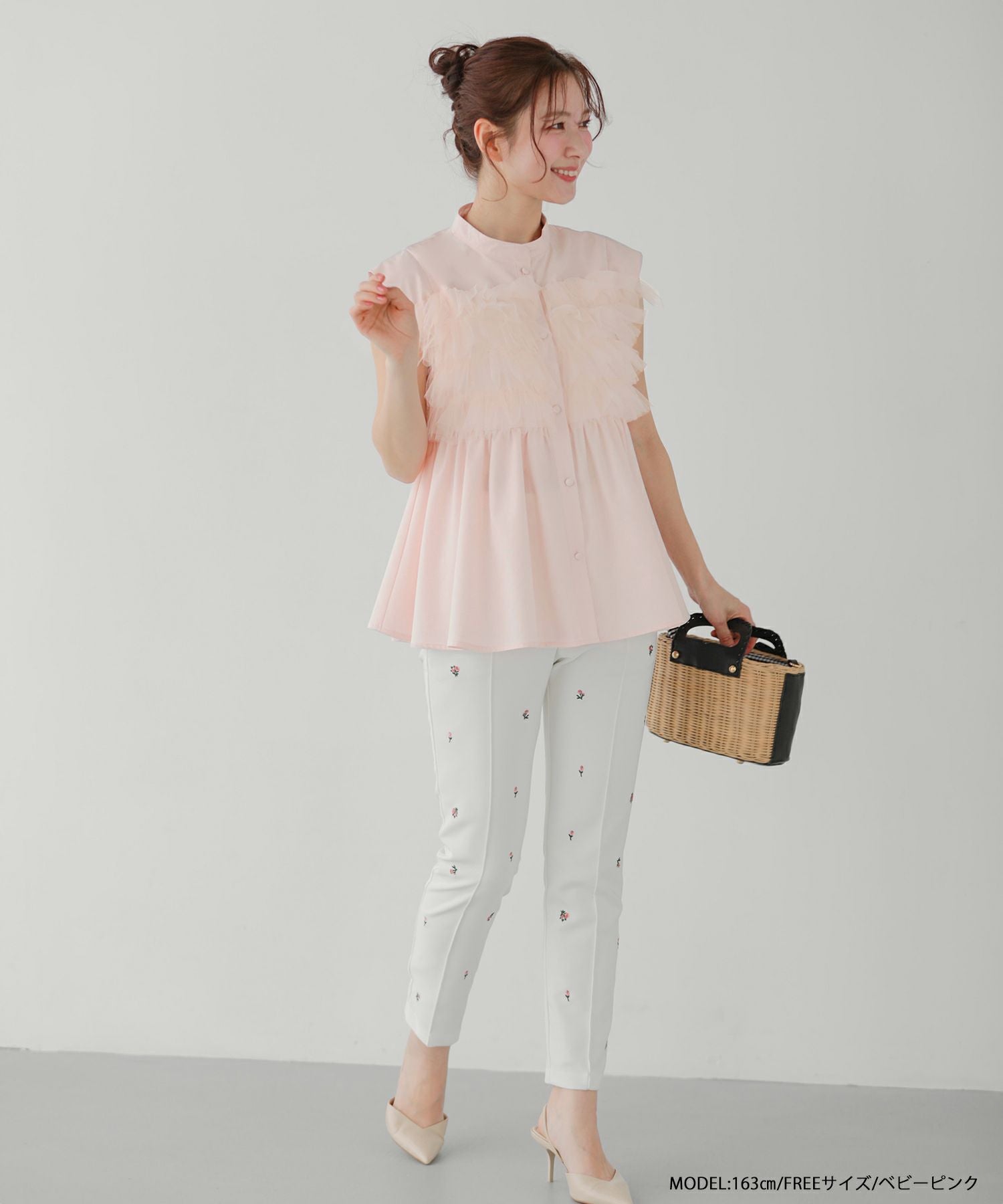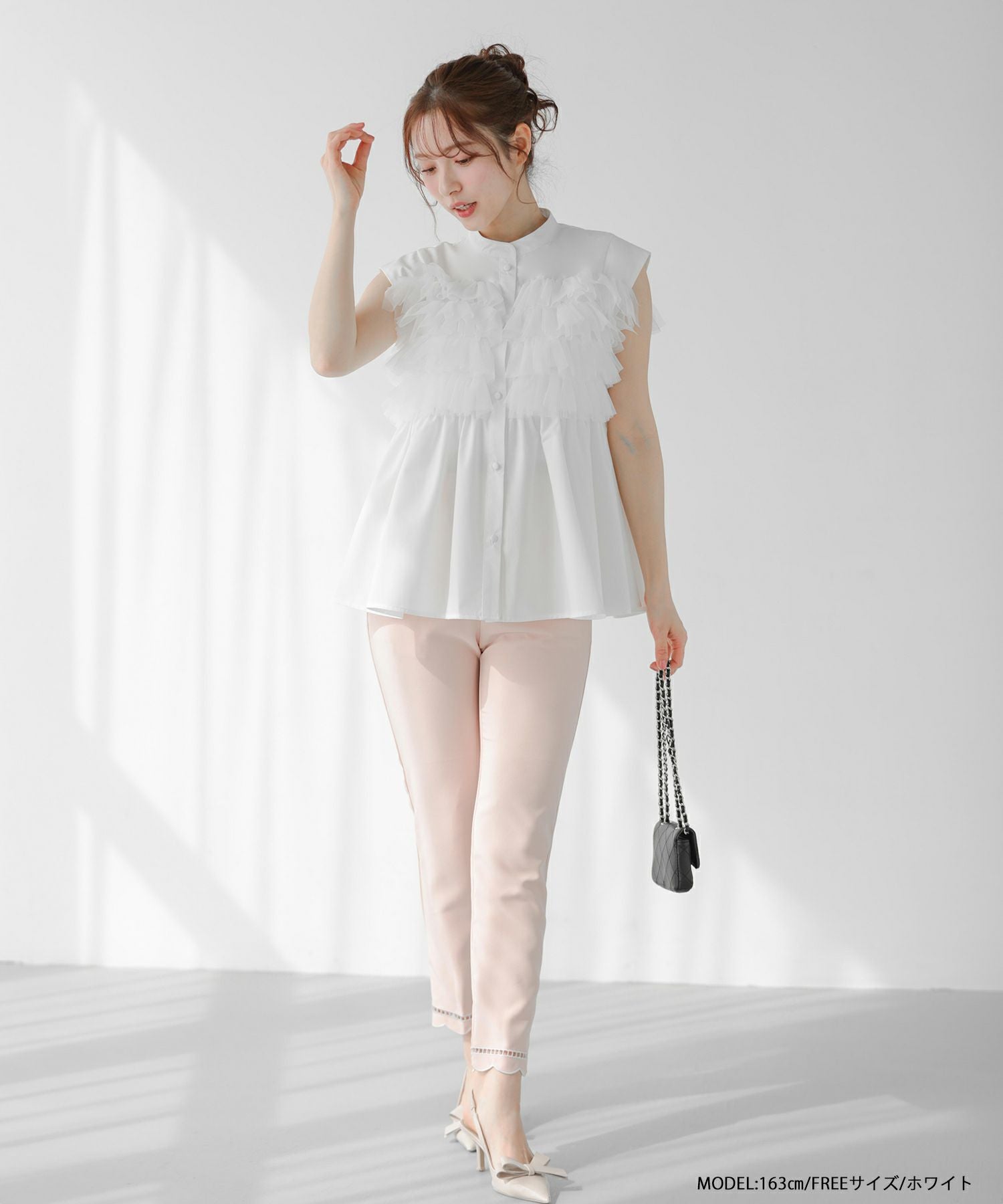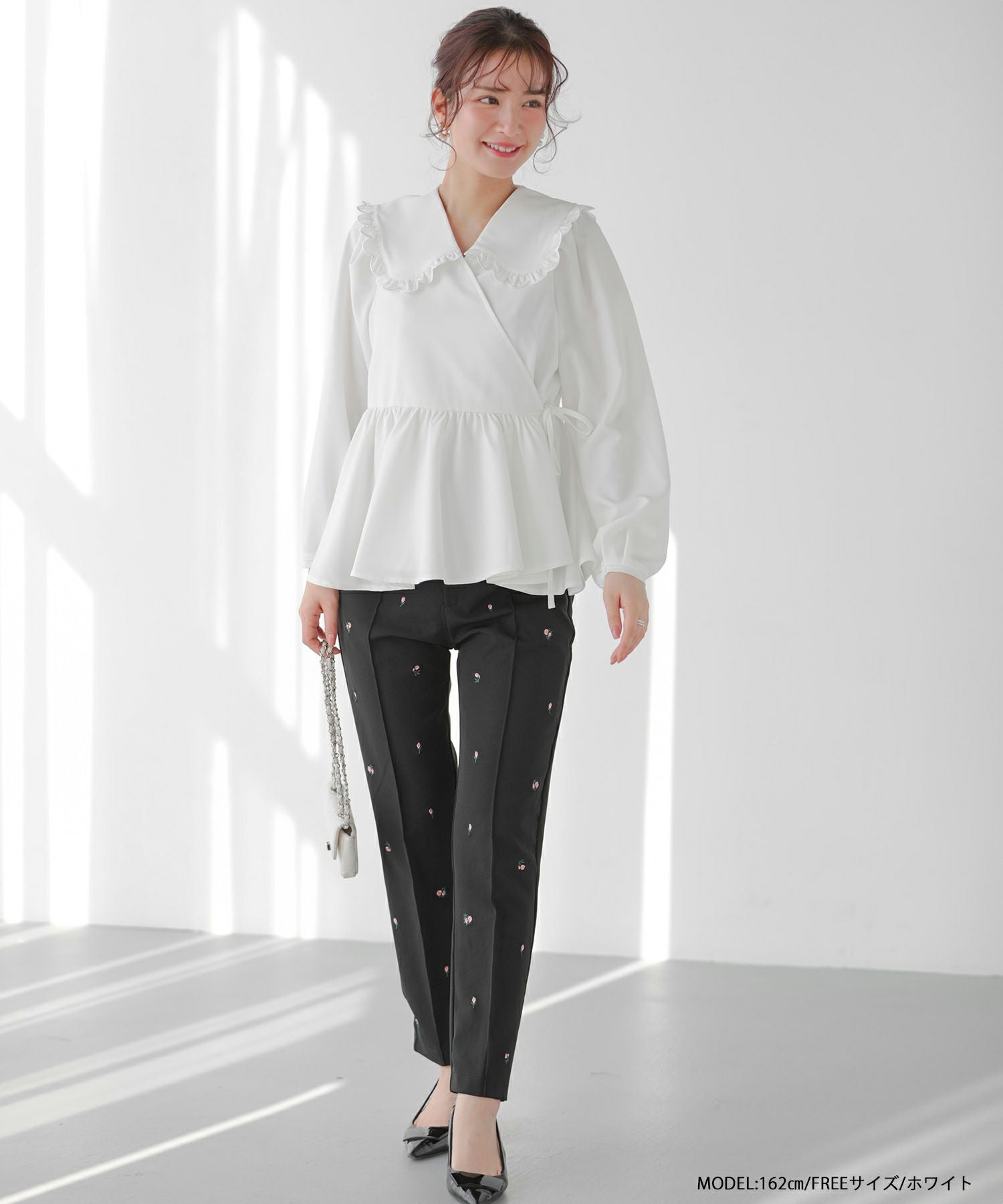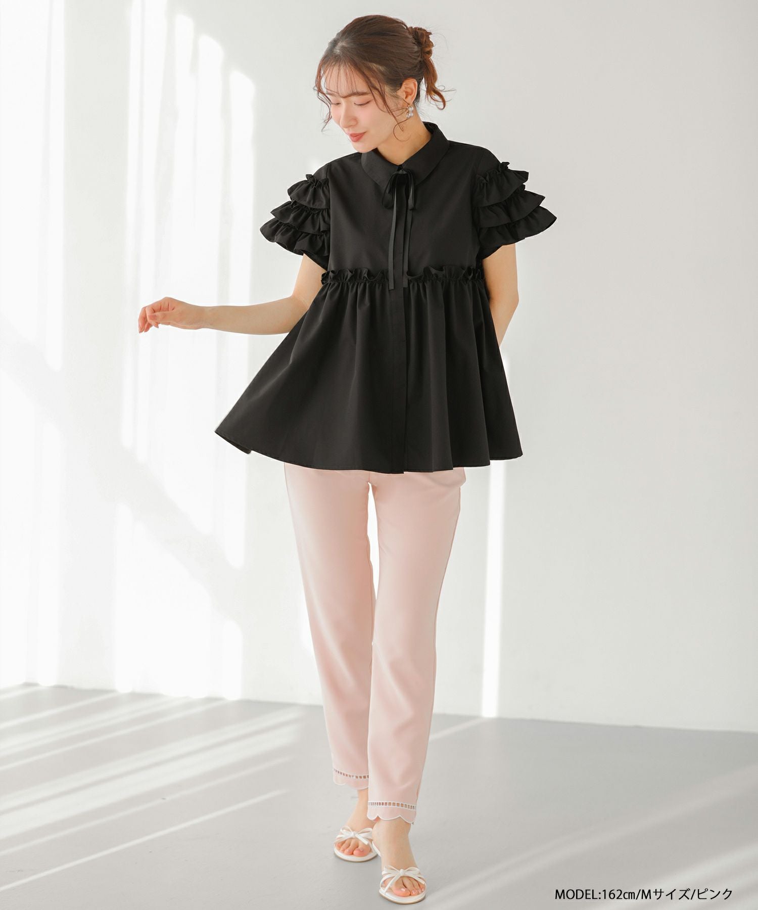 他の画像を見る 2025ss ブラウス 刺繍 スカラップ フリル ティアード ギャザー トップス ドット刺繍スカラップカラーギャザートップス【宅配便】 価格 ¥ 11,900 税込 お気に入りに登録する