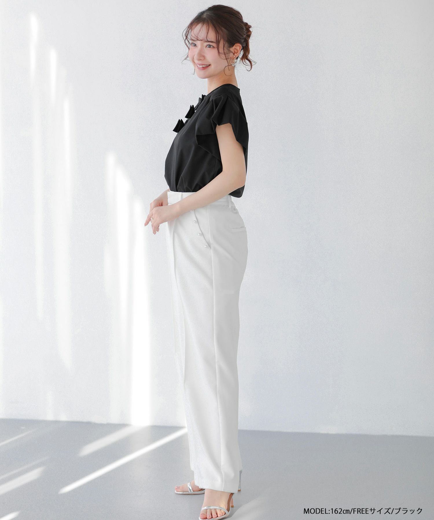 他の画像を見る 2025ss ジャガード 刺繍 刺しゅう ゴールド ペプラム リボン シアー 刺しゅうジャガードバックリボンペプラムトップス【宅配便】 価格 ¥ 12,900 税込 お気に入りに登録する