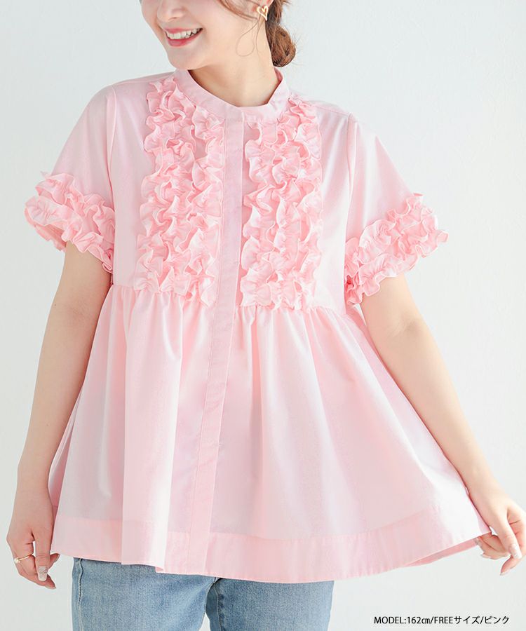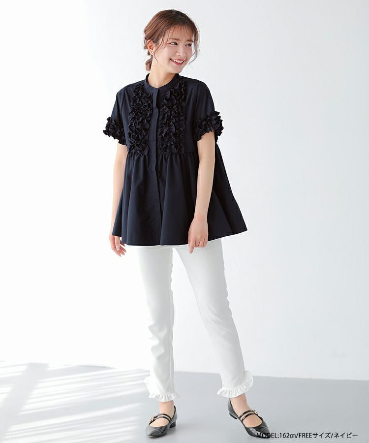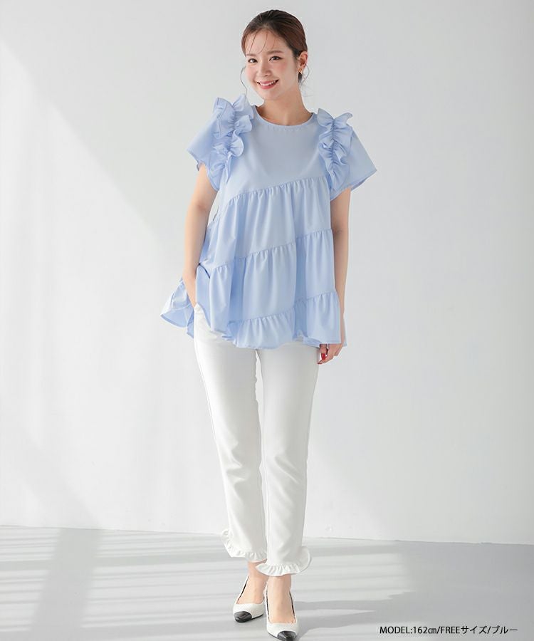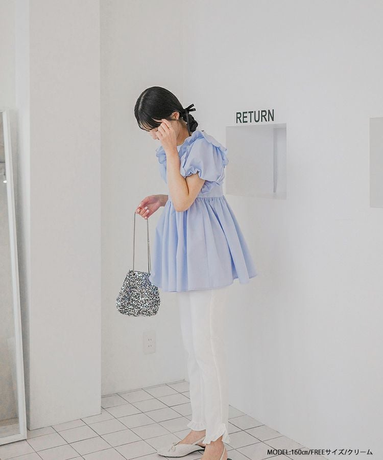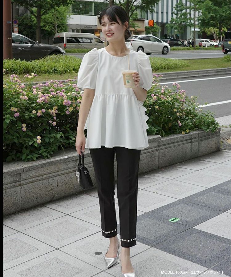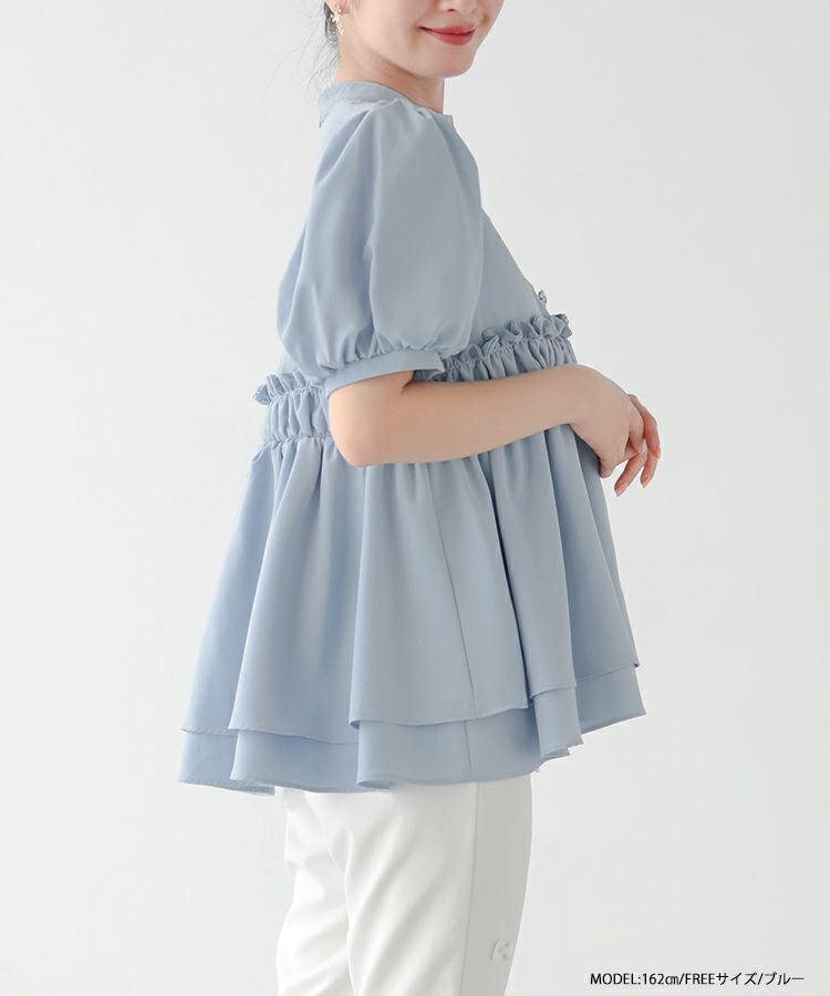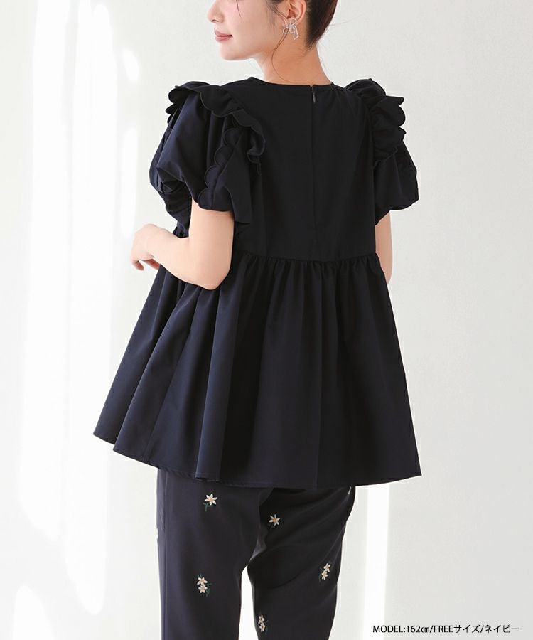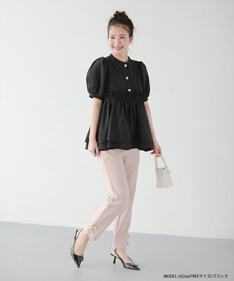 フロントフリルペプラムブラウス【宅配便】