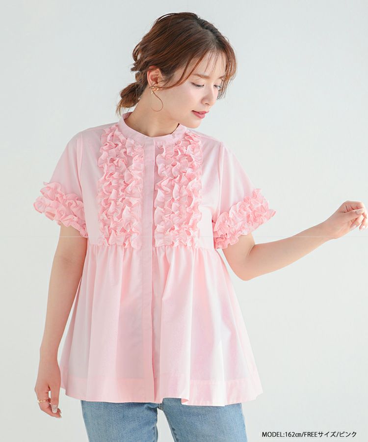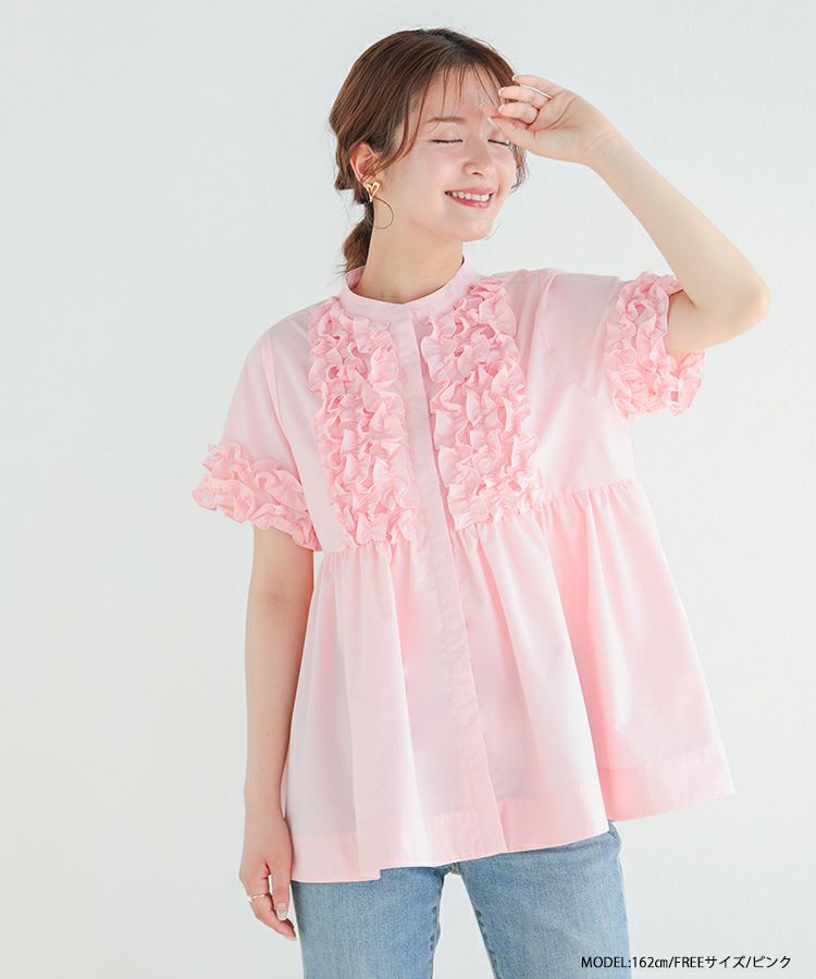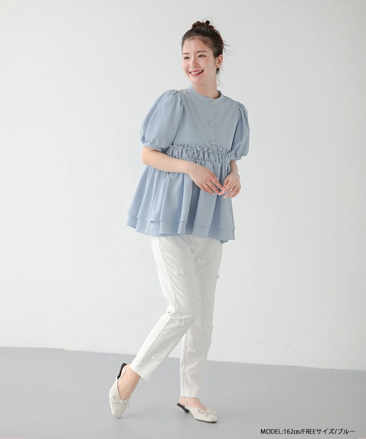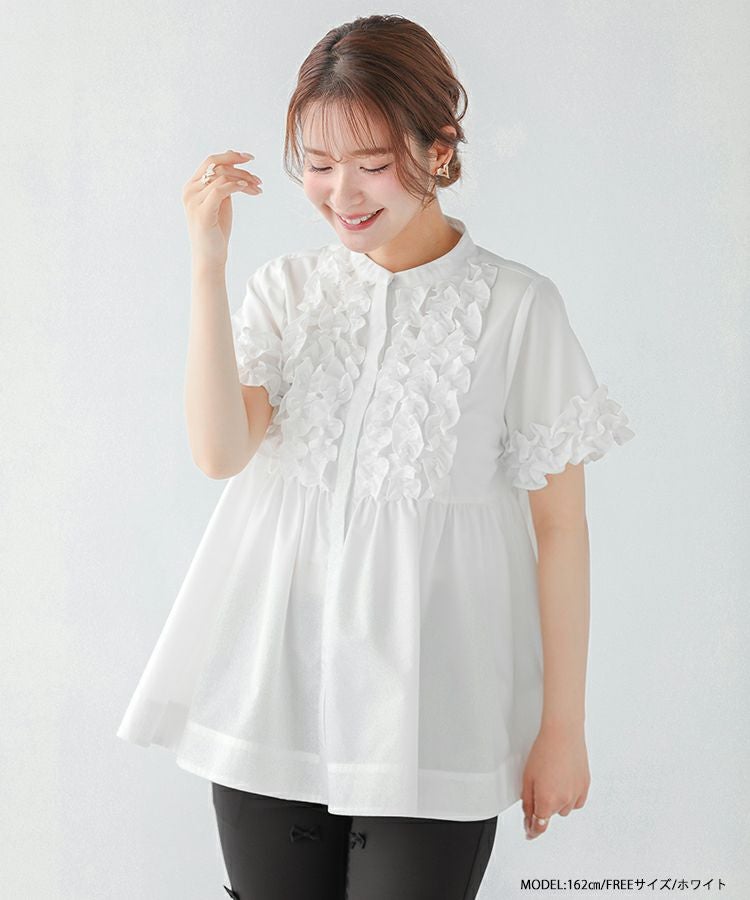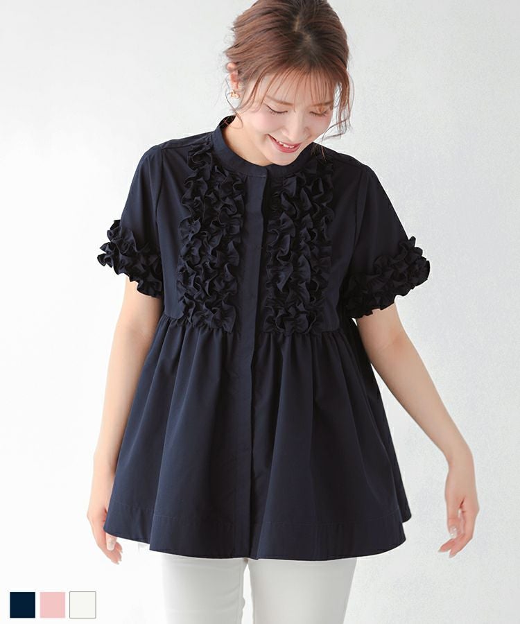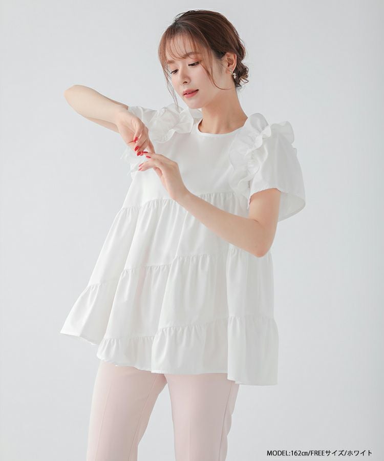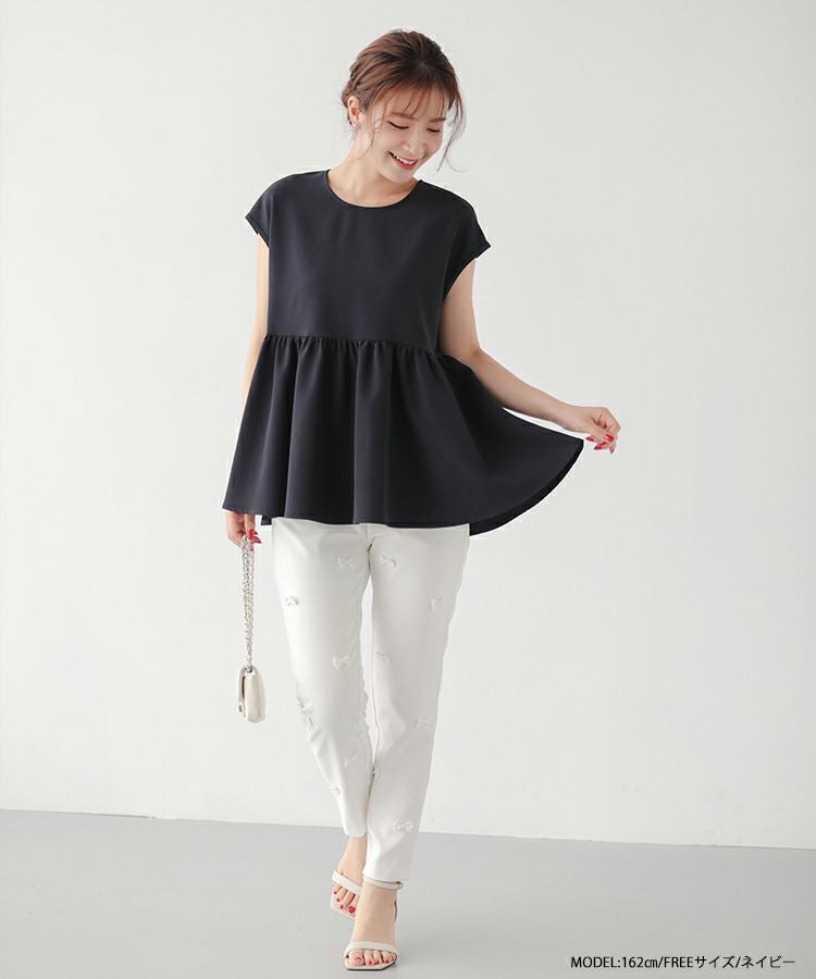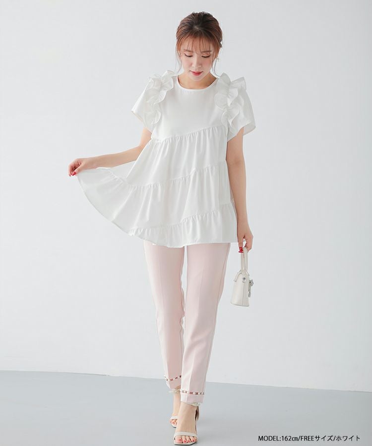 フロントフリルペプラムブラウス【宅配便】