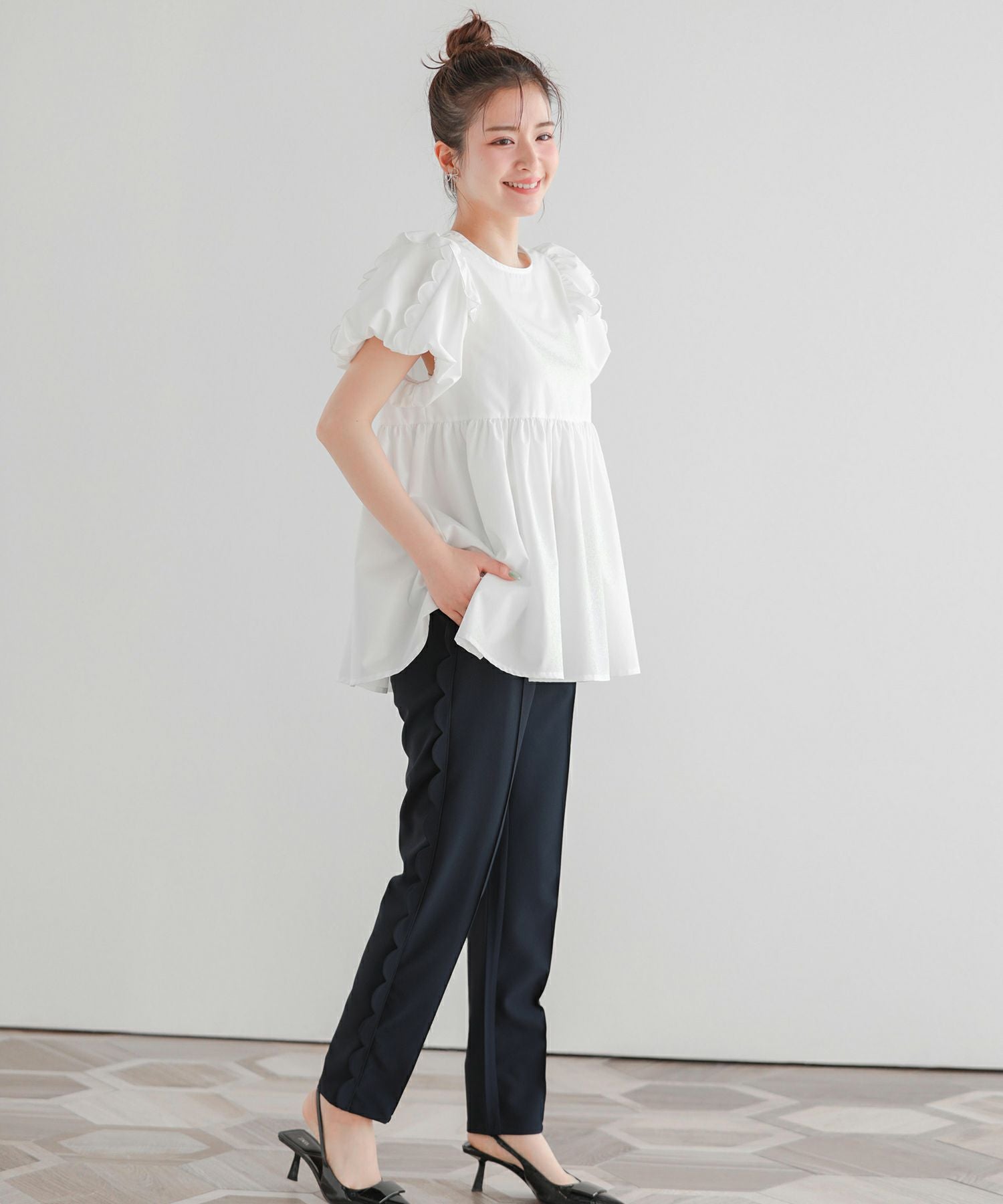 2024ss 夏新作 スカラップ エンジェルスリーブ ブラウス