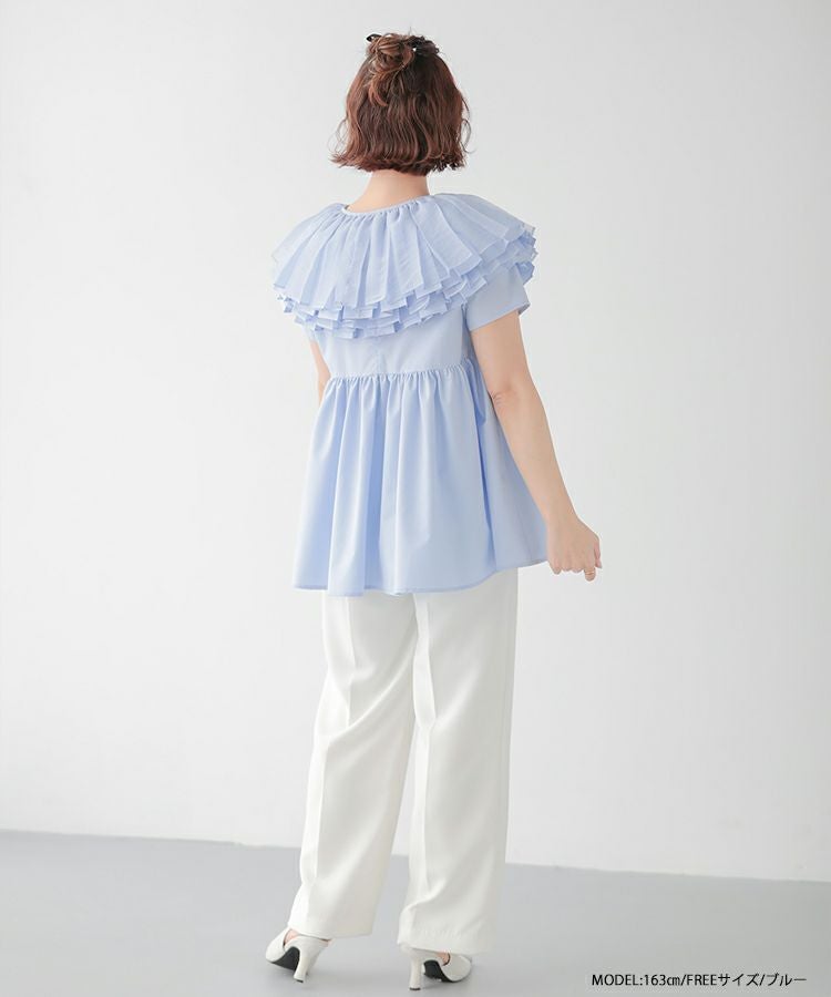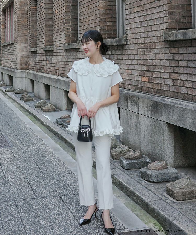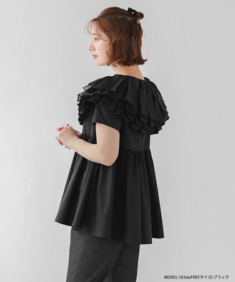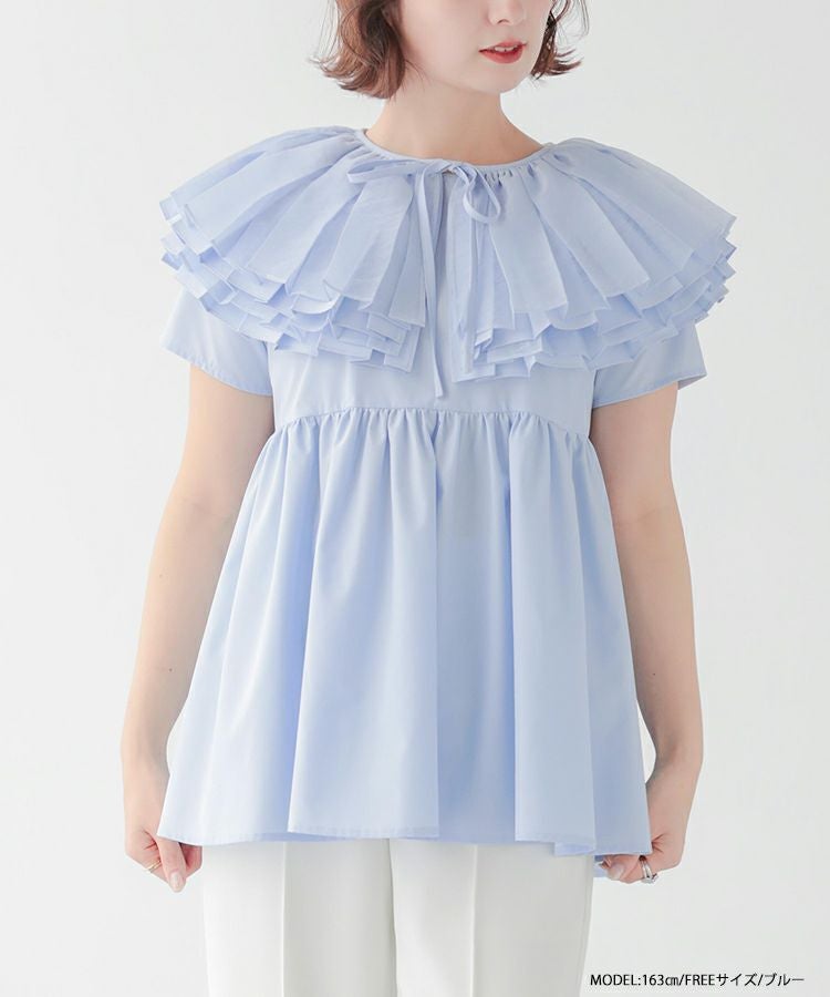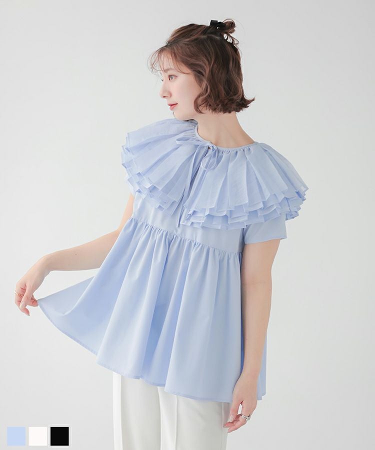 2024ss 春夏新作 ブラウス 襟 オーガンジーカラーペプラムブラウス