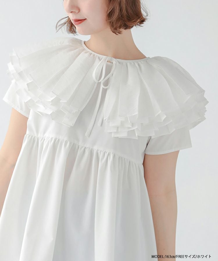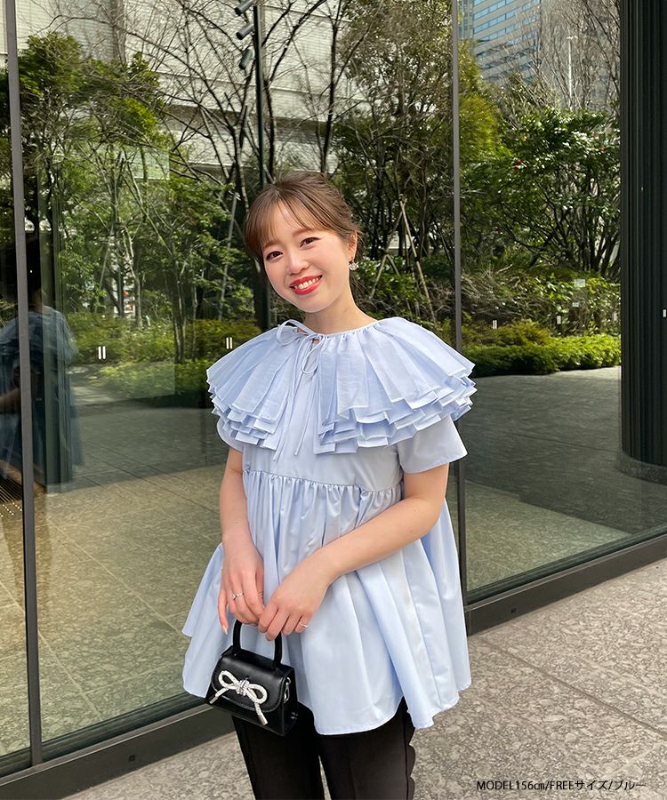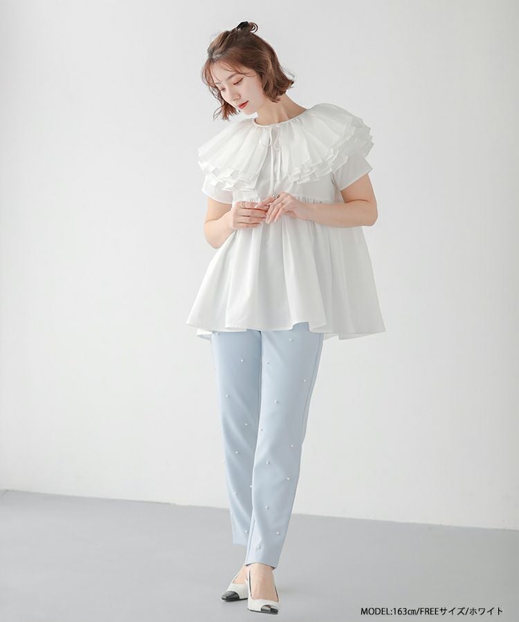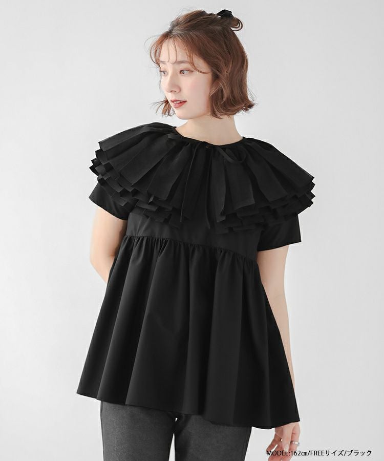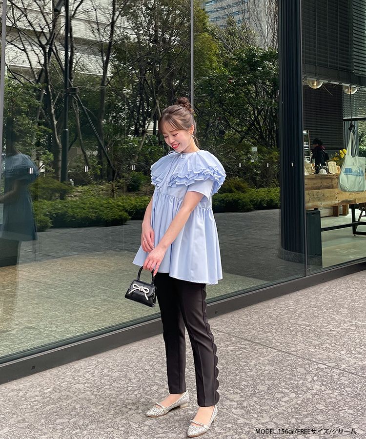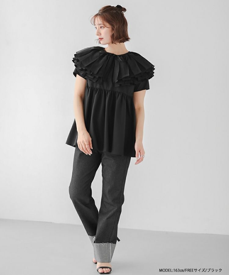 2024ss 春夏新作 ブラウス 襟 オーガンジーカラーペプラムブラウス