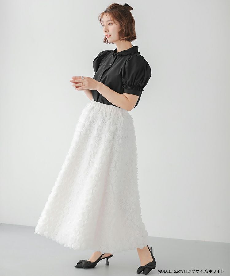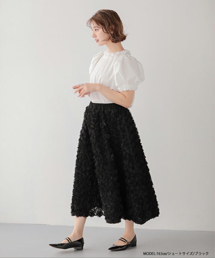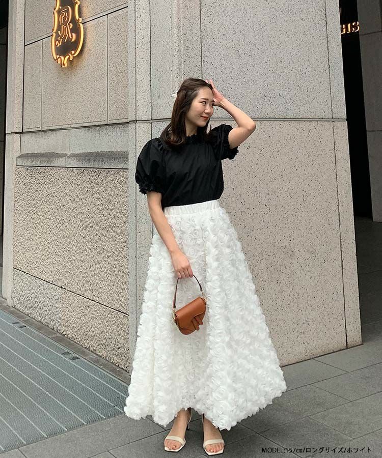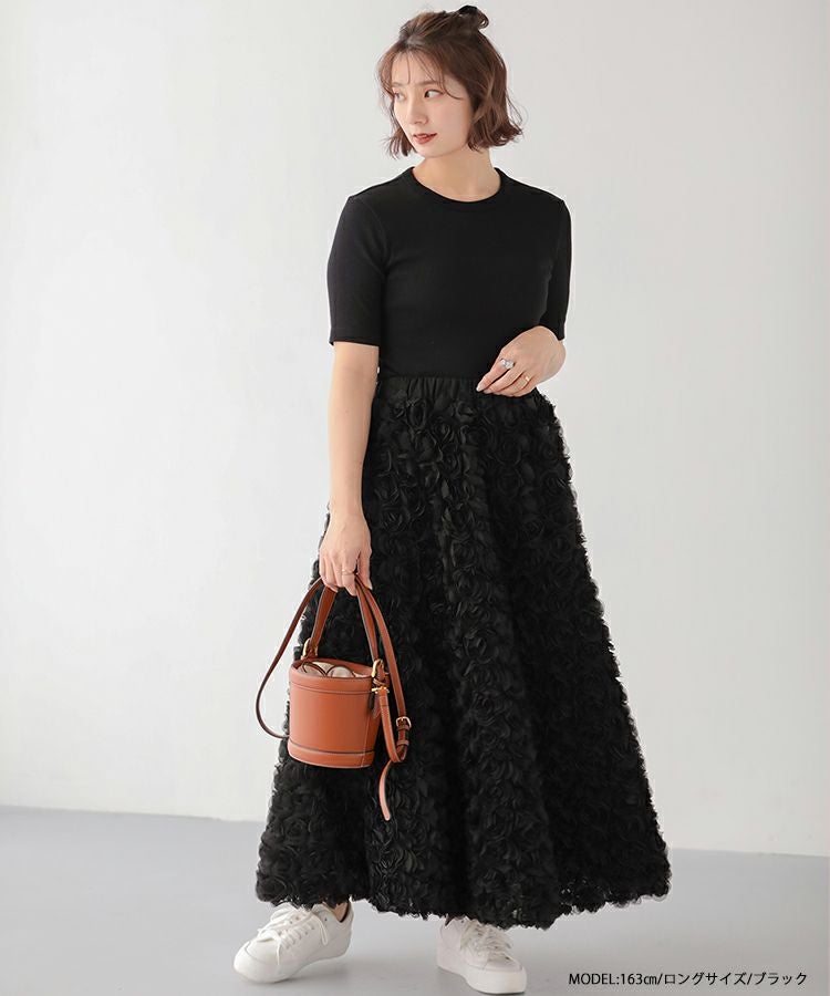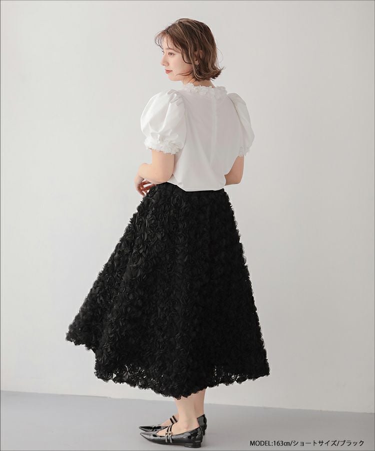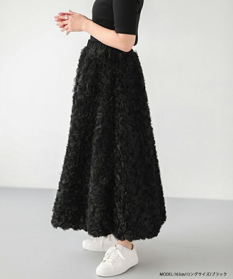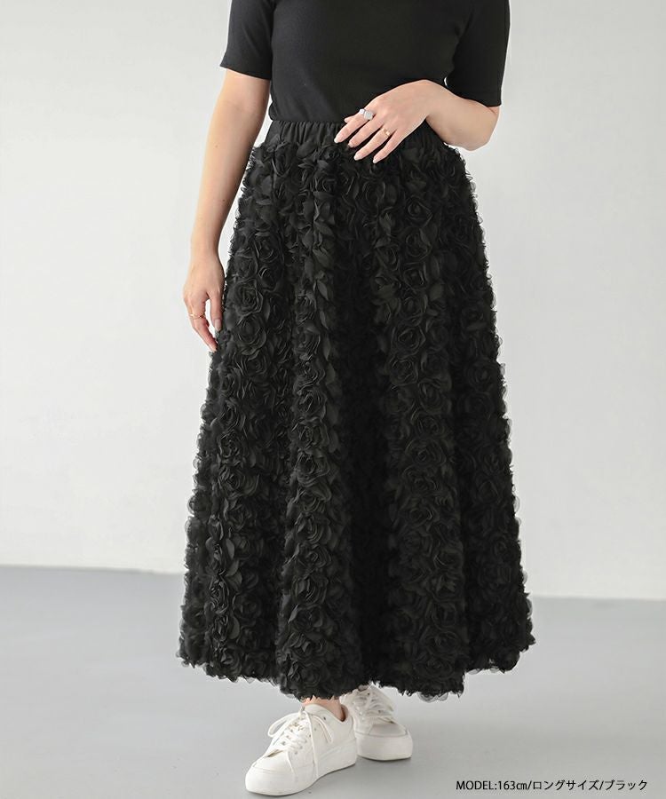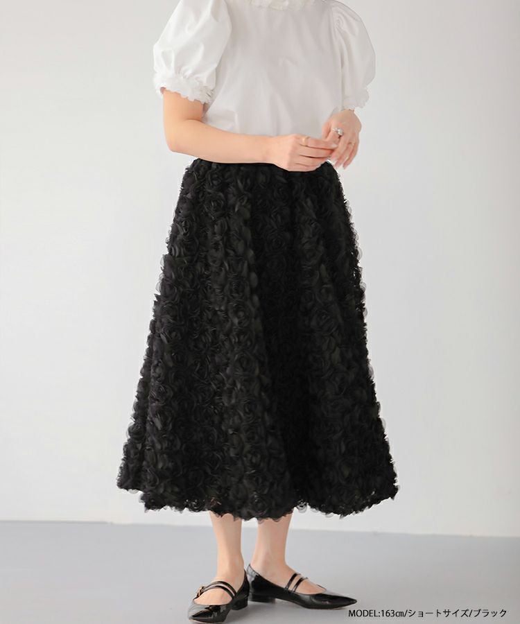 2024ss 夏新作 スカート Aライン フレア ローズ フラワー チュール