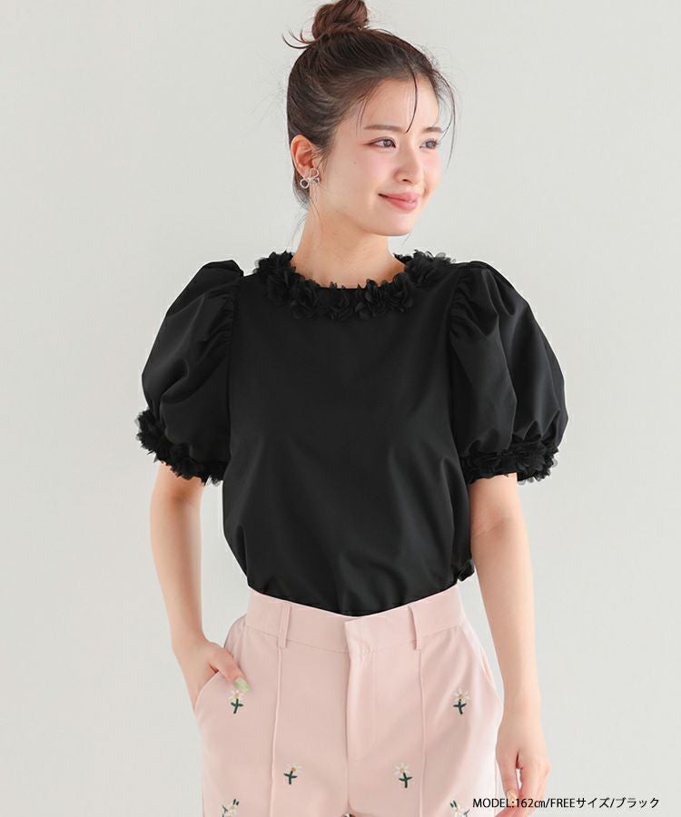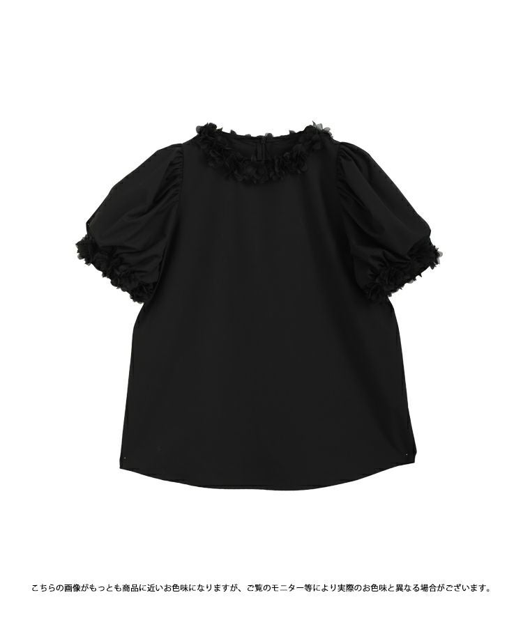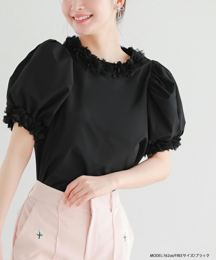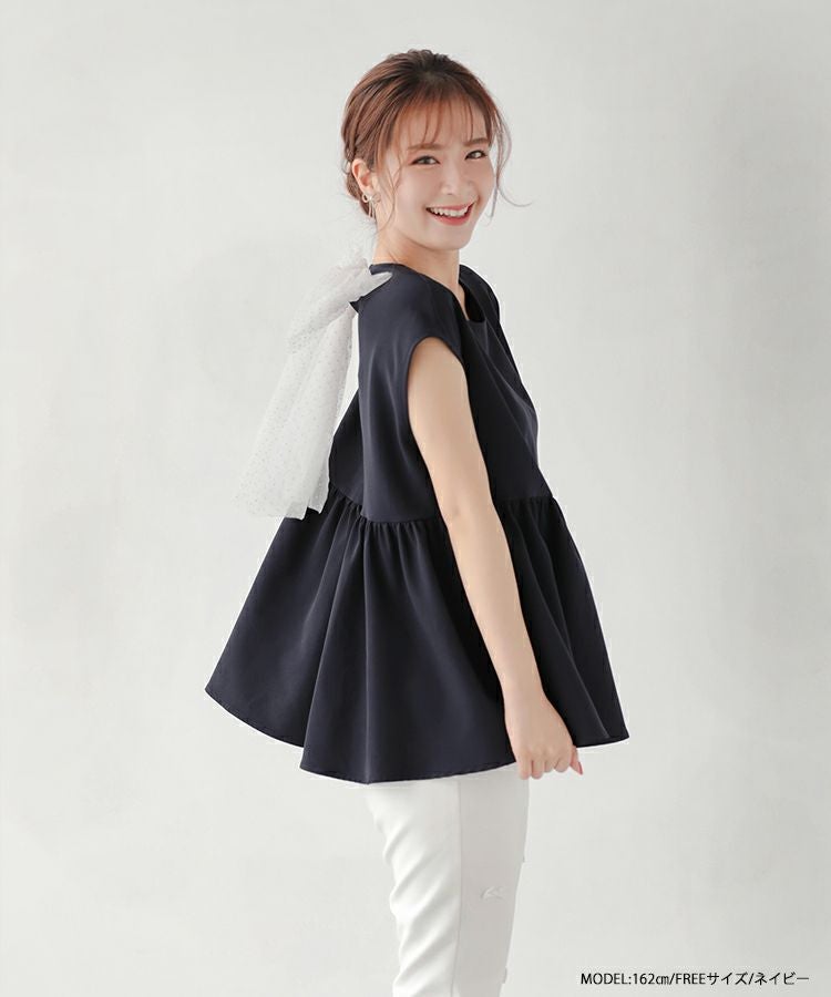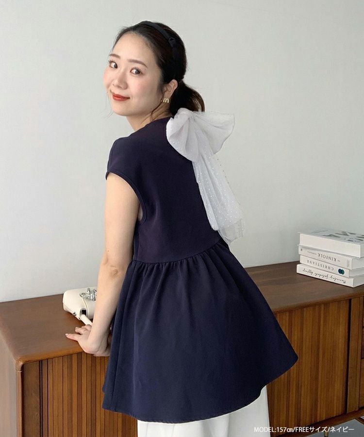 ドットチュールリボンフレンチスリーブカットソー【宅配便】