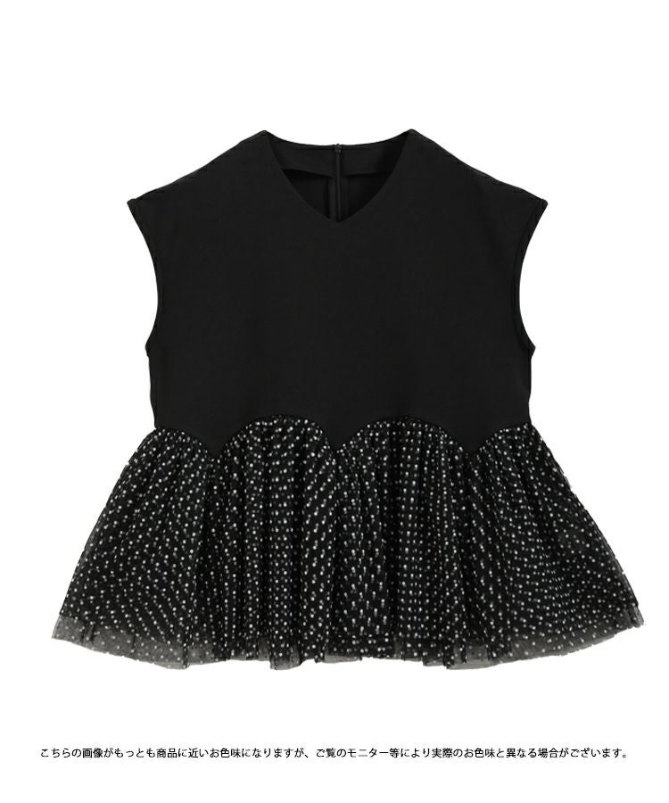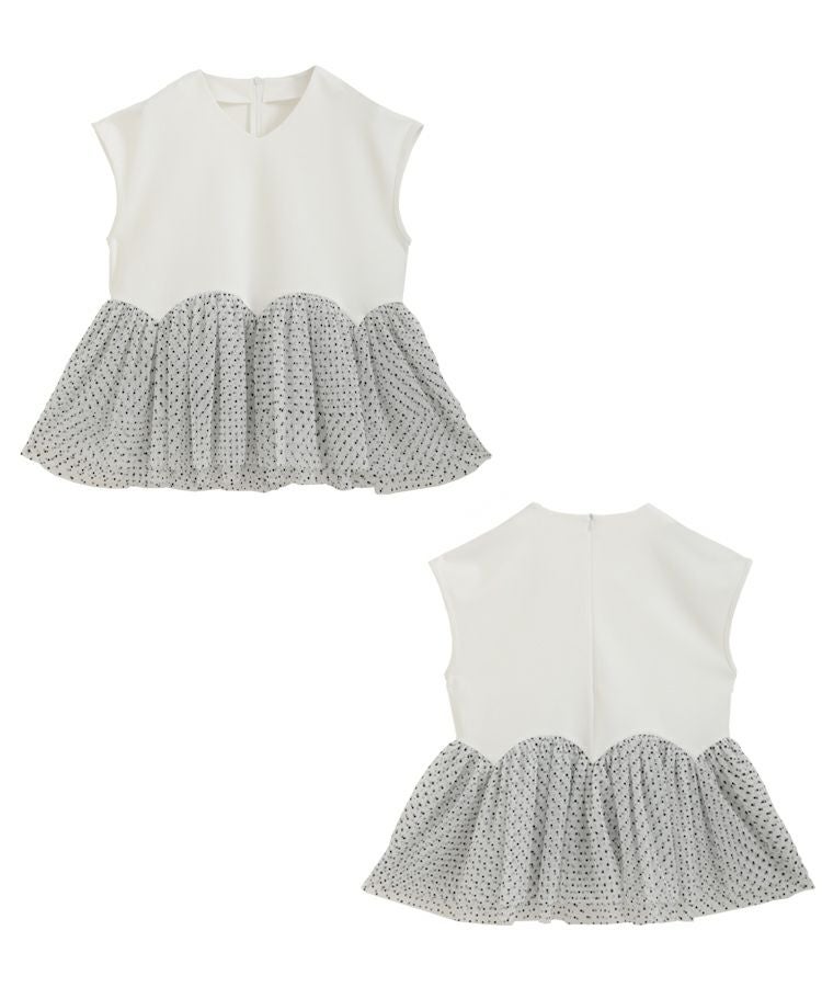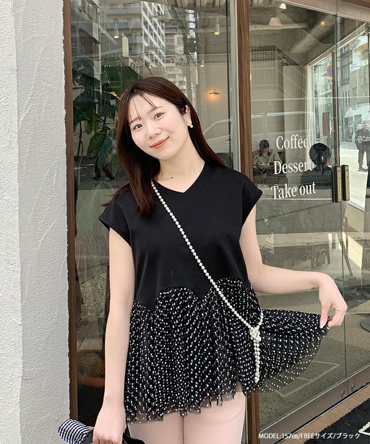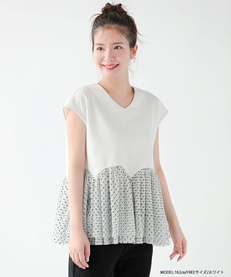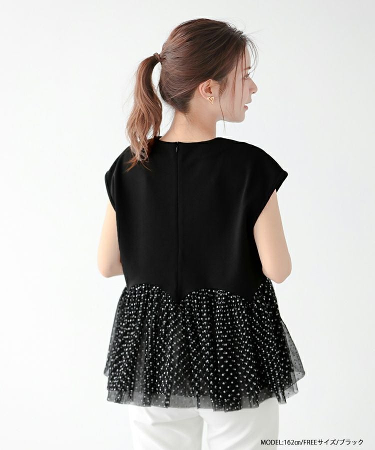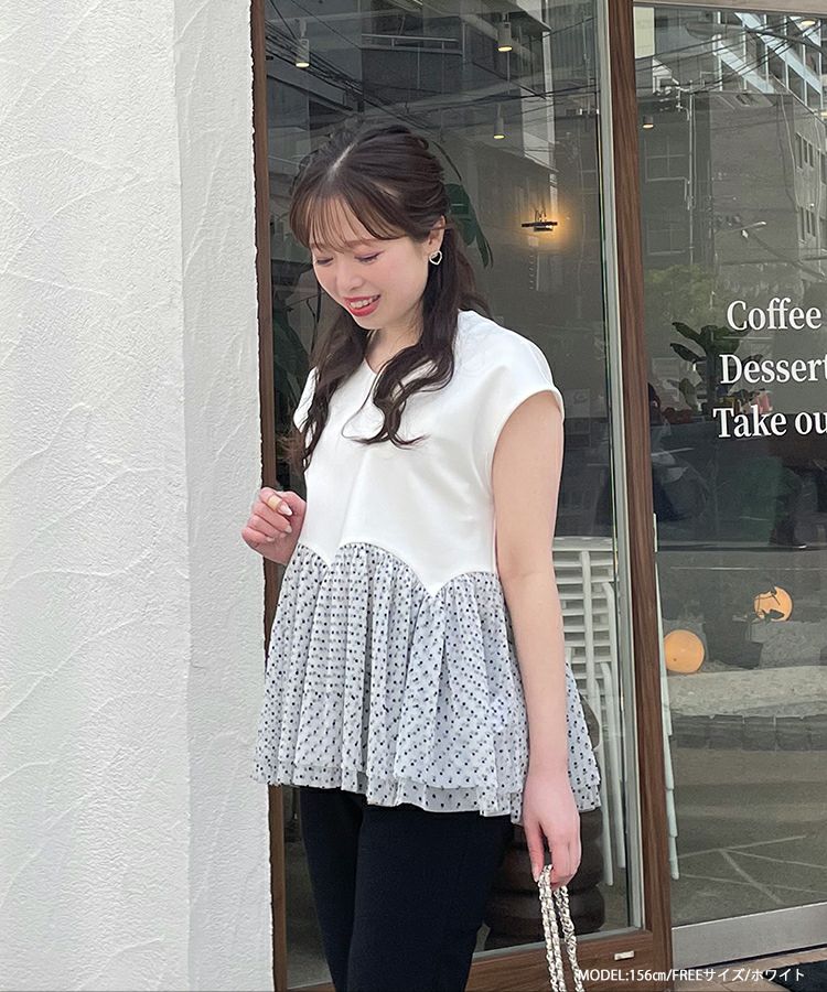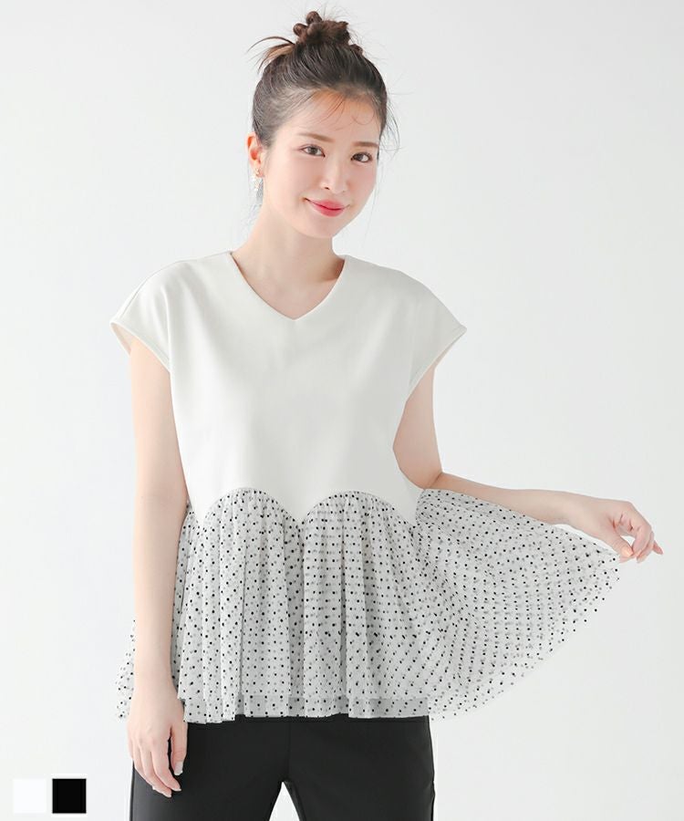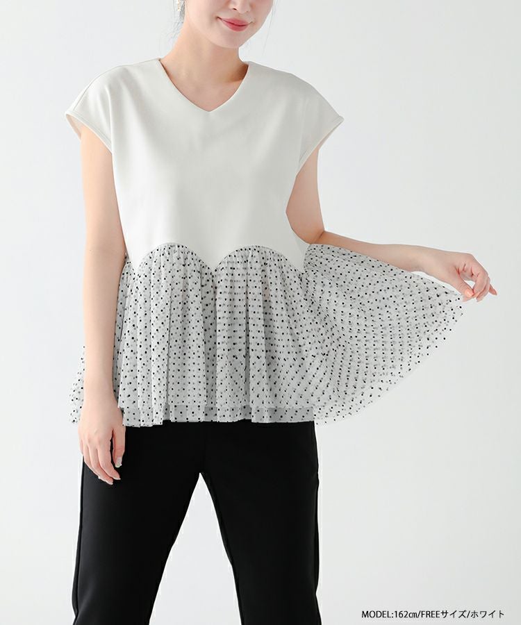 2023ss カットソー フレンチスリーブ チュール フロッキードット