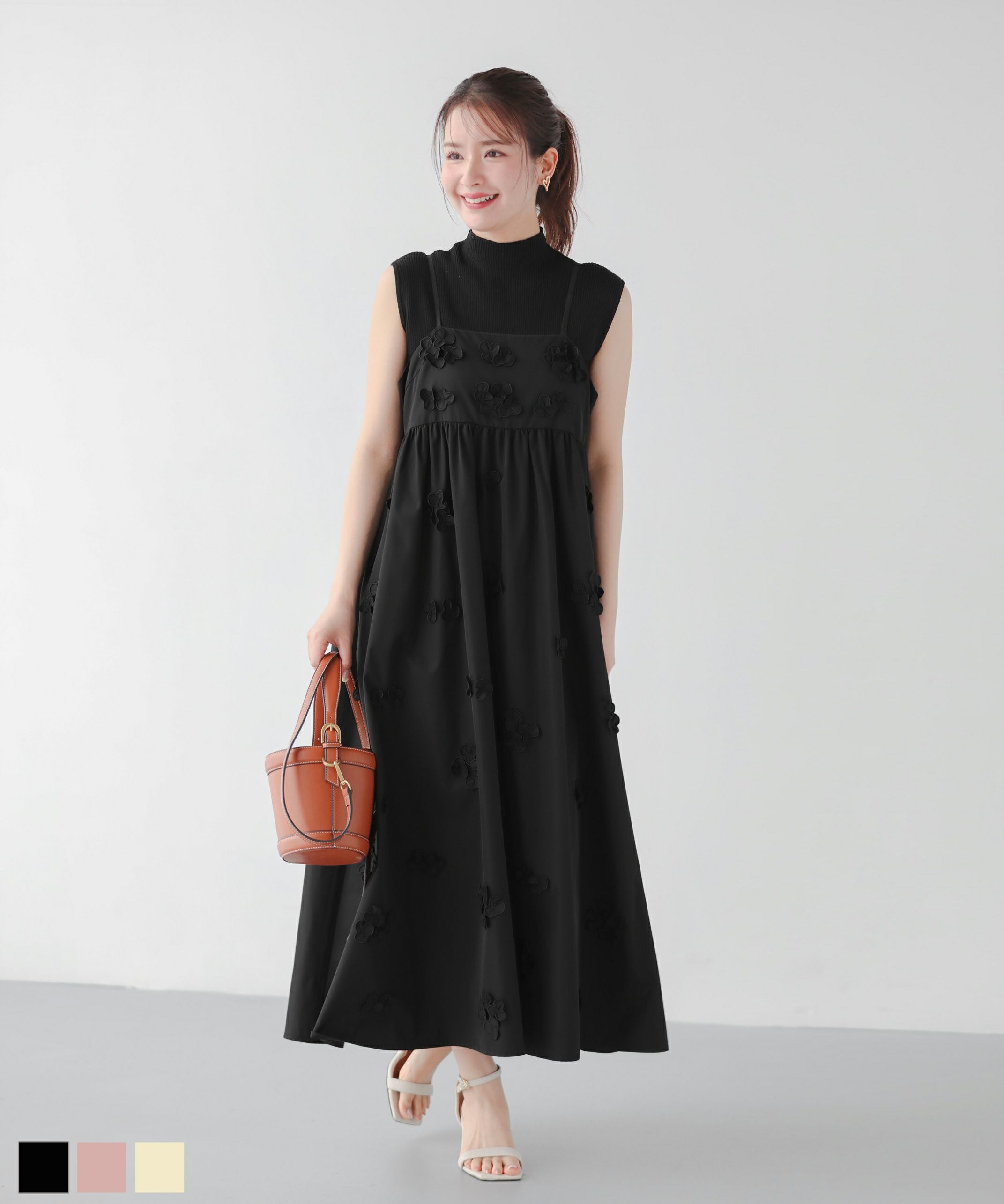 2024春新作 ワンピース キャミワンピ フラワーモチーフ