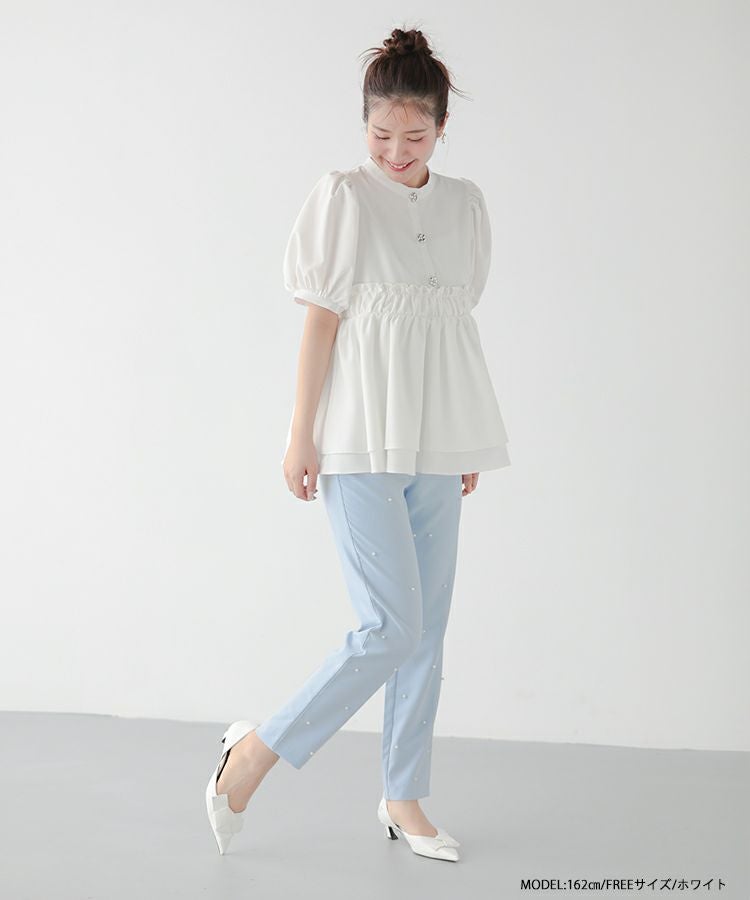 2024ss 夏新作 ブラウス パール Vネック ペプラム