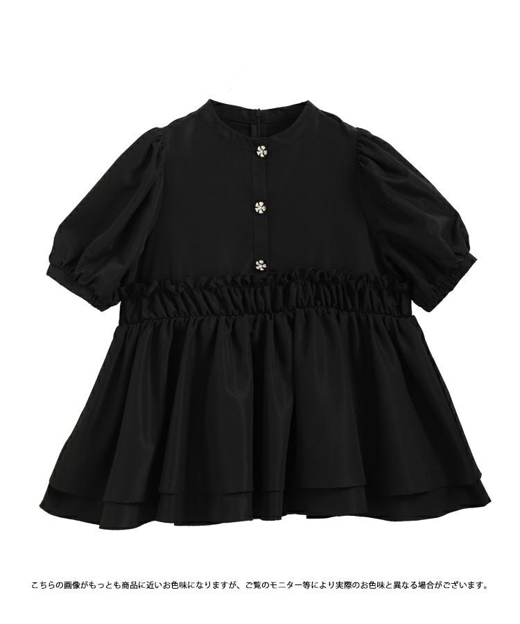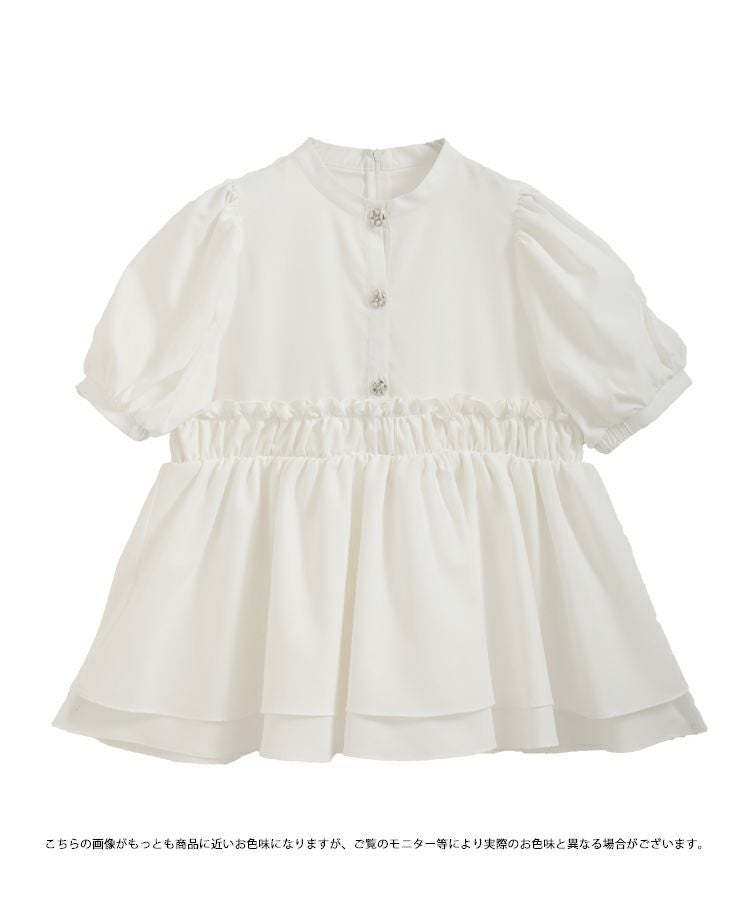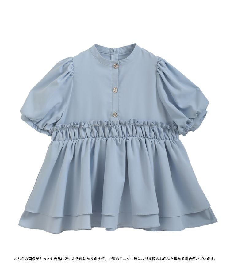 フラワーボタンペプラム半袖ブラウス【宅配便】