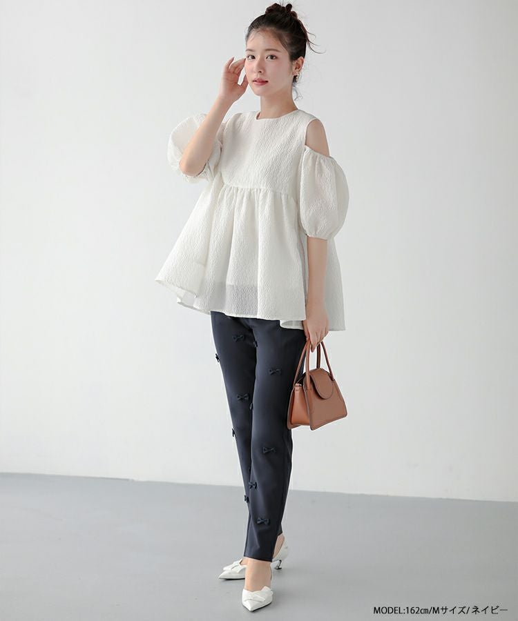 2024ss 夏新作 パンツ テーパードパンツ リボン スラックス