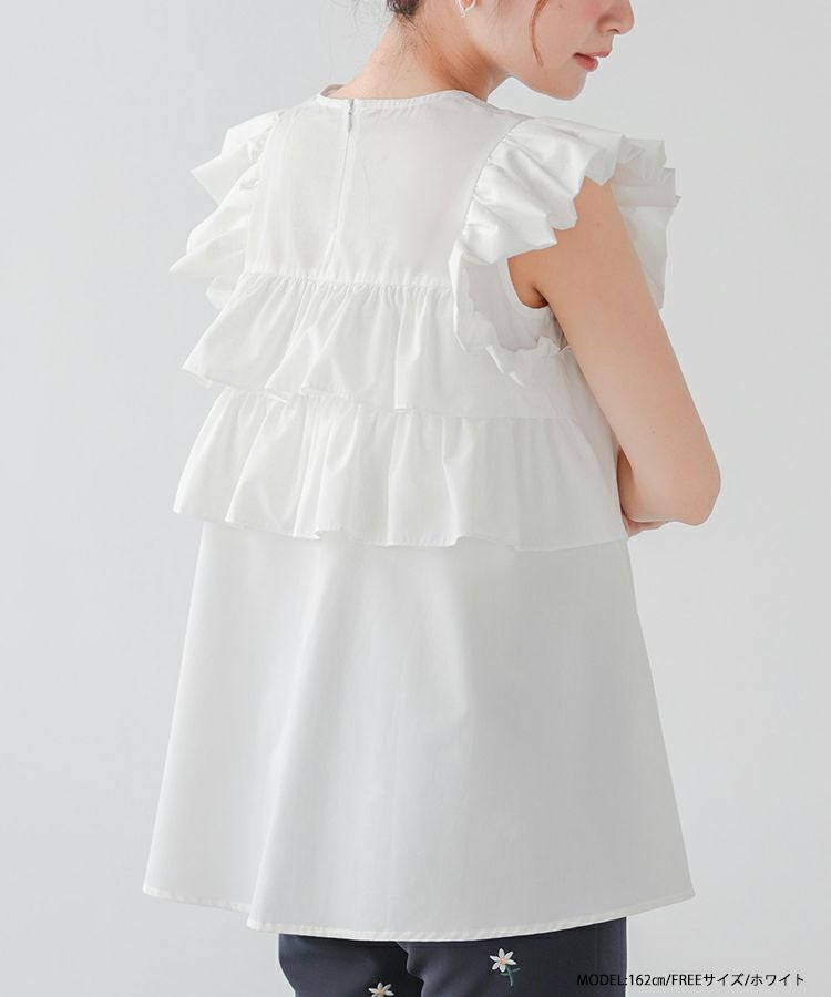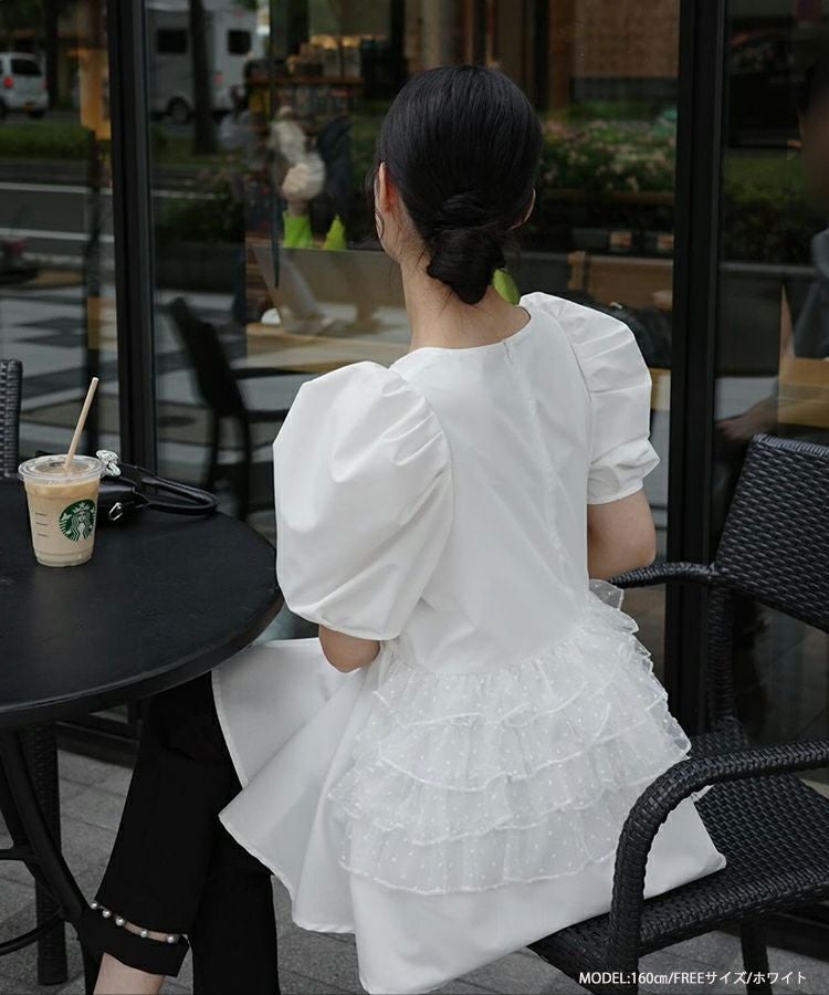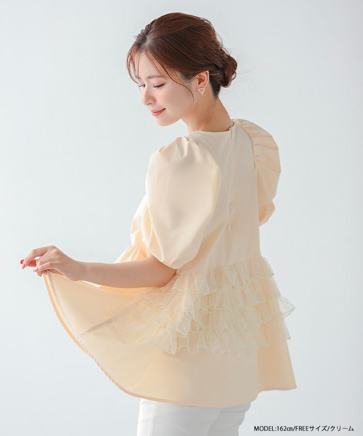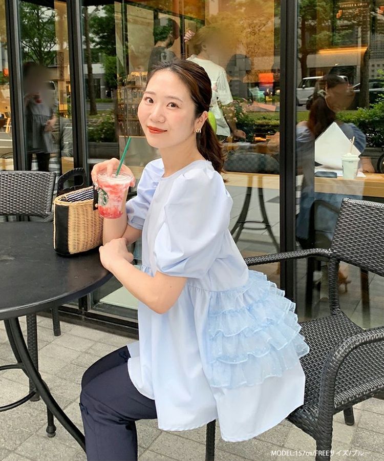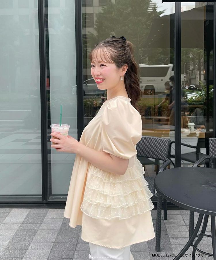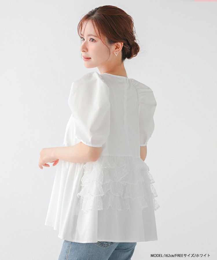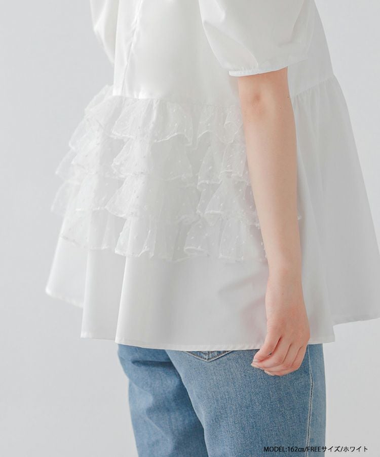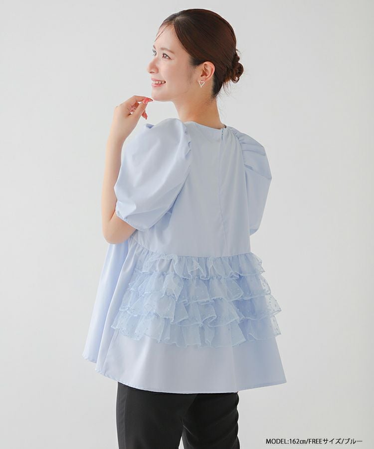 バックドットオーガンジーフリルブラウス【宅配便】