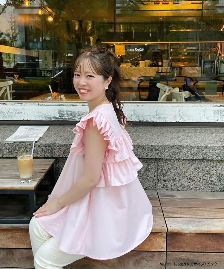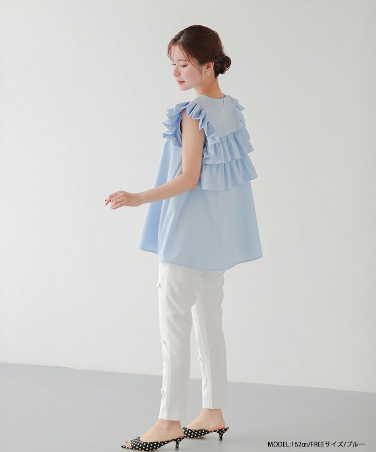 Vネックパールショルダーフリルブラウス【宅配便】