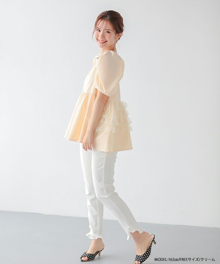 オーガンジーカラーペプラムブラウス【宅配便】