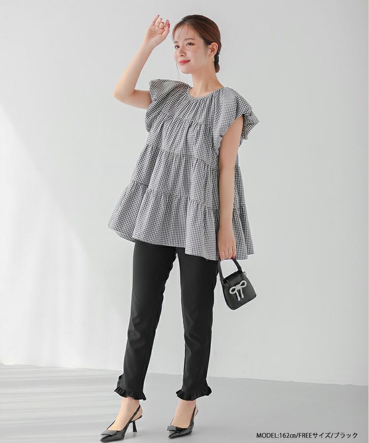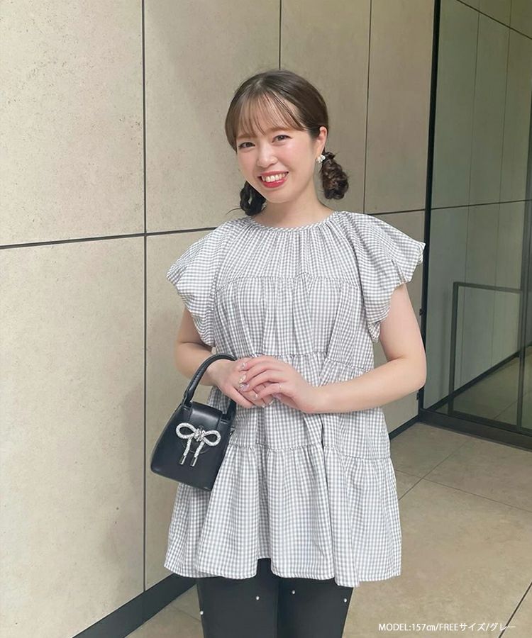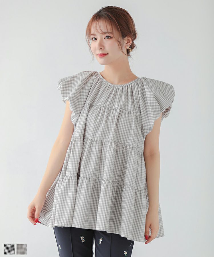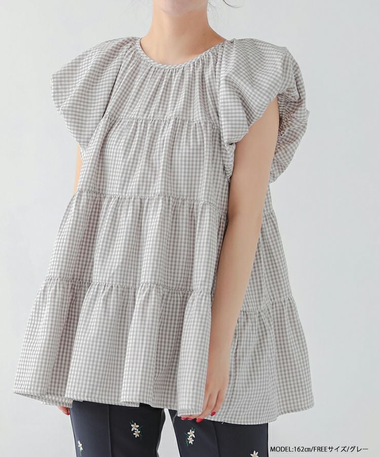 ギンガムティアードブラウス【宅配便】